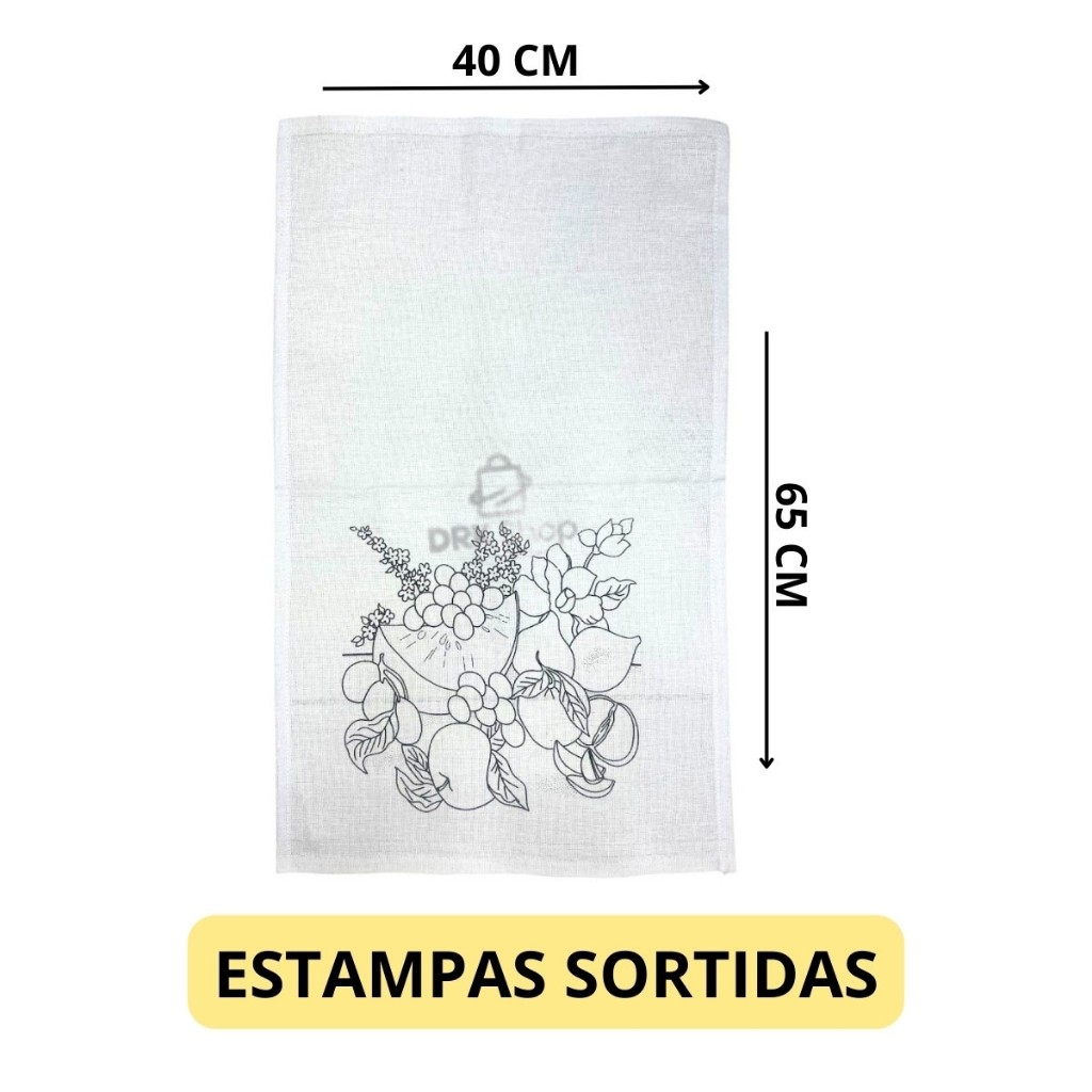 Kit 10 Panos de Prato Riscado para Pintura 68x40cm Algodão Branco Artesanato Pintura em Tecido