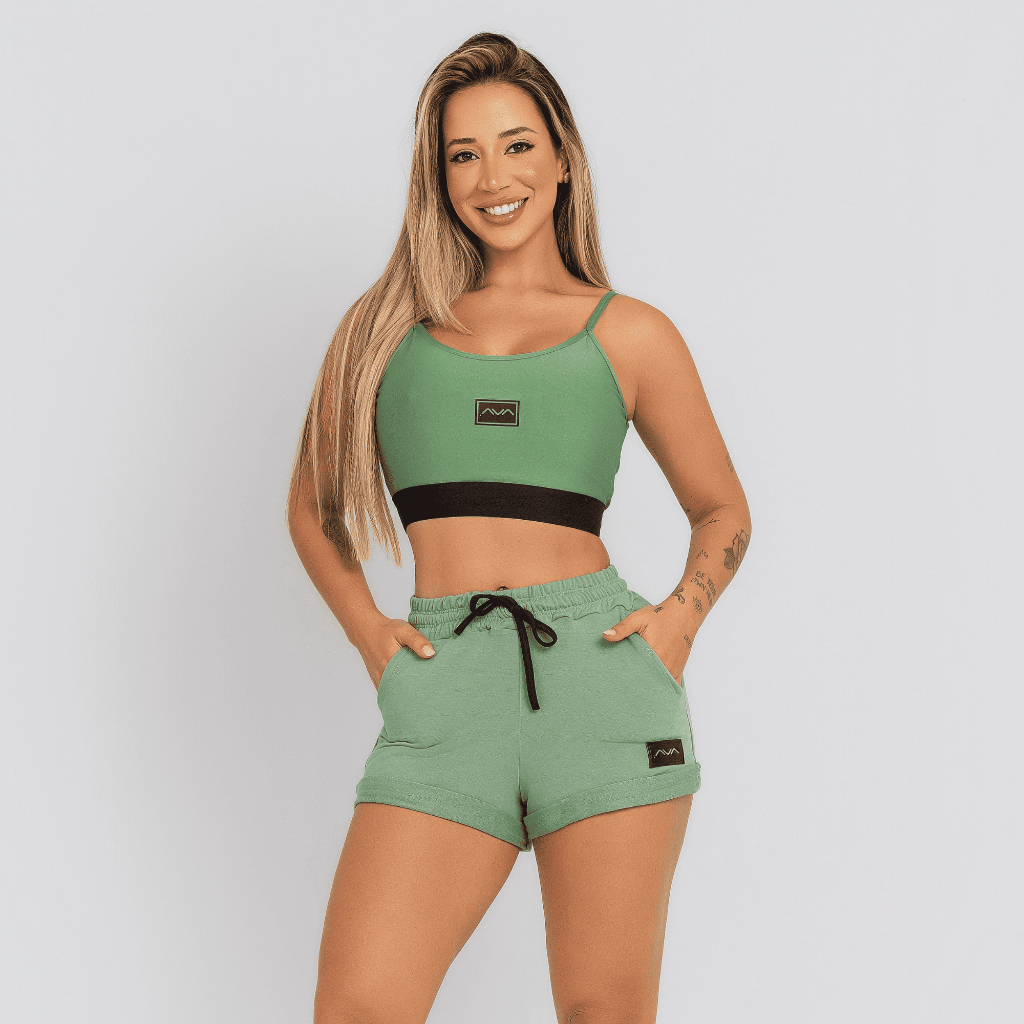 Conjunto Feminino Comfy Top Elástico e Short Moletinho AVA Fitness
