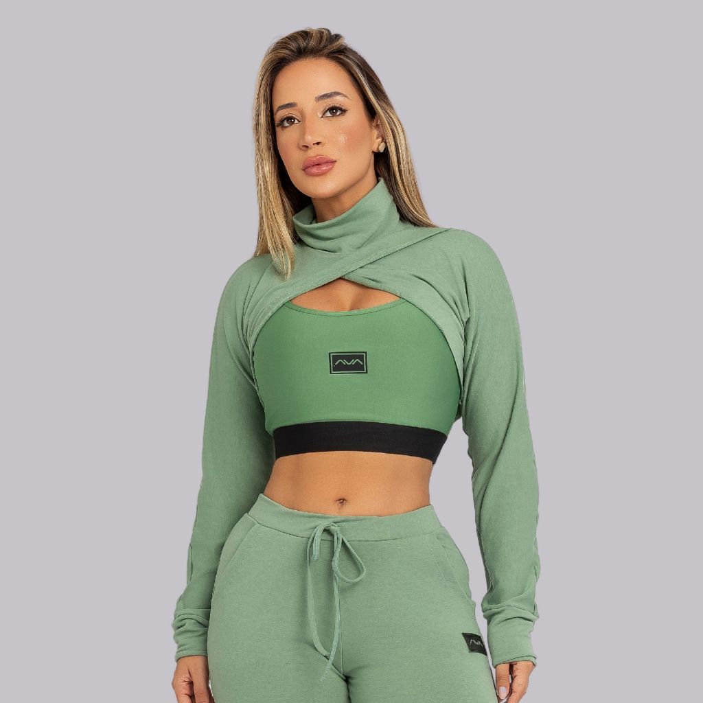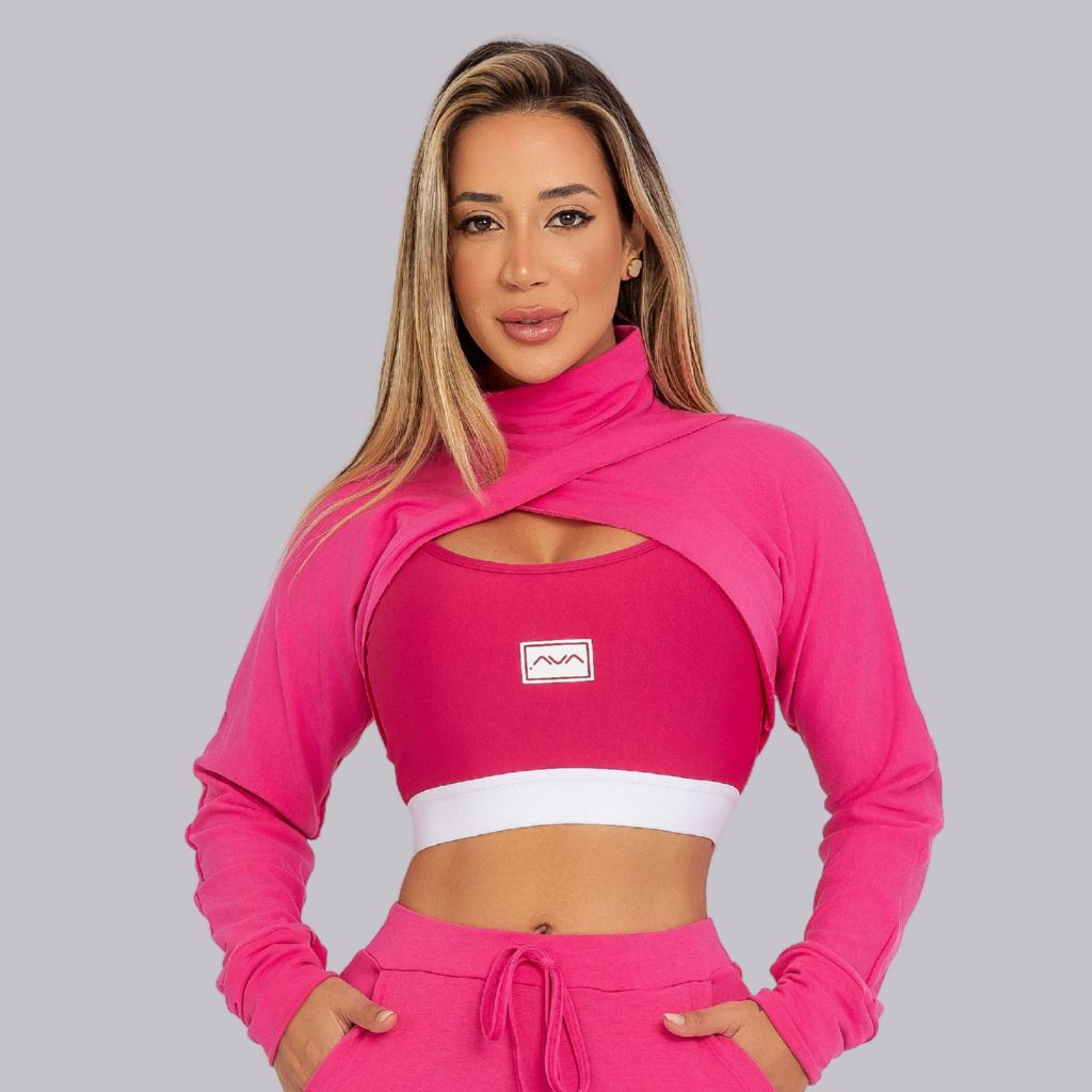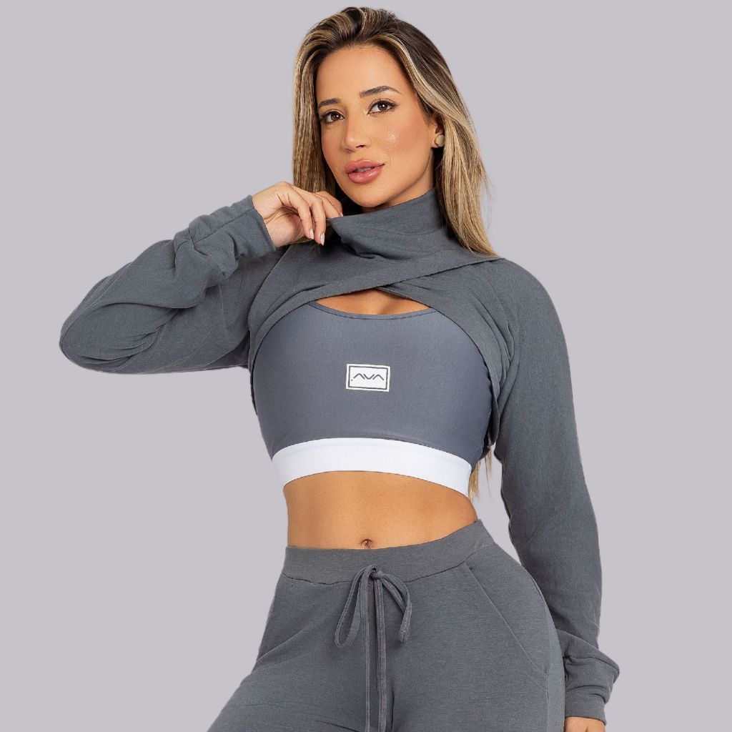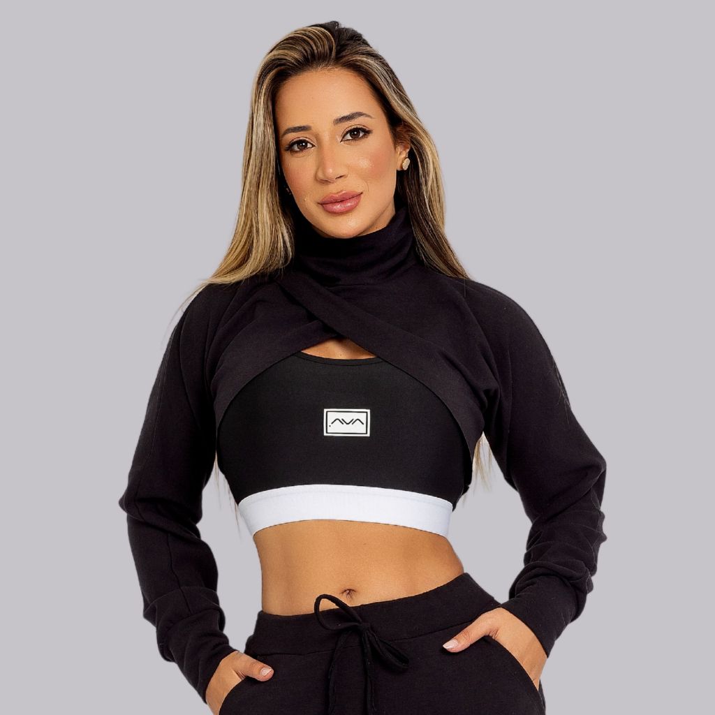 Cropped Moletinho Feminino Moletom Inverno Comfy Manga Longa AVA Fitness
