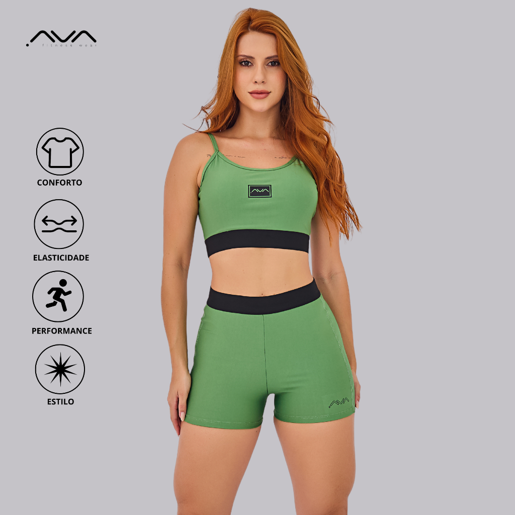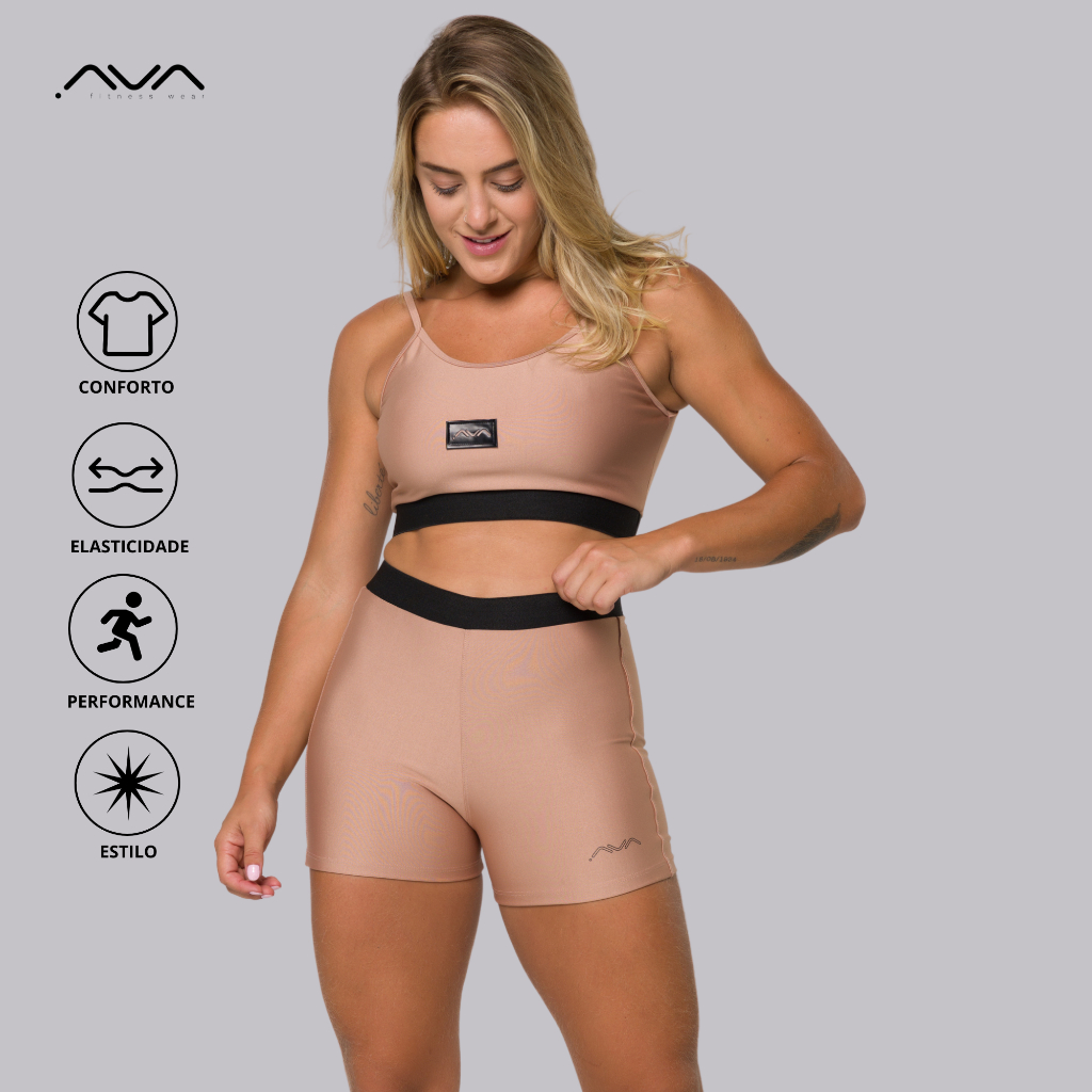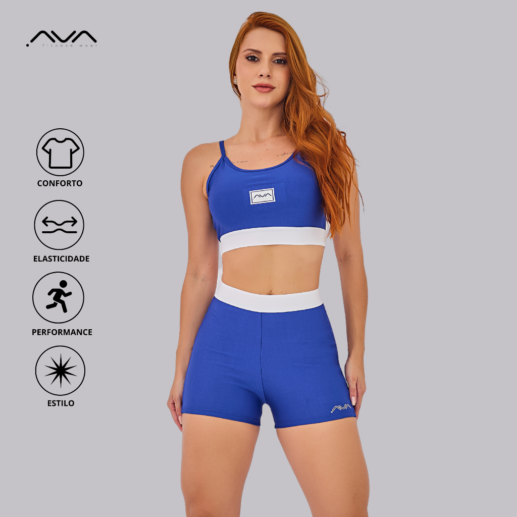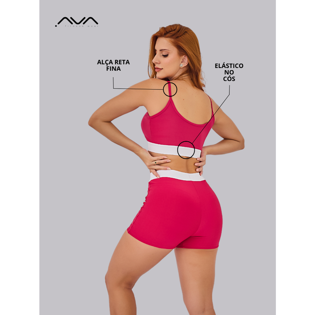 Conjunto Feminino Academia Suplex Poliamida Top e Short Com Elástico No Cós AVA Fitness