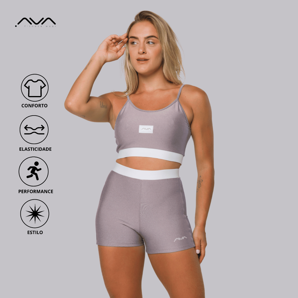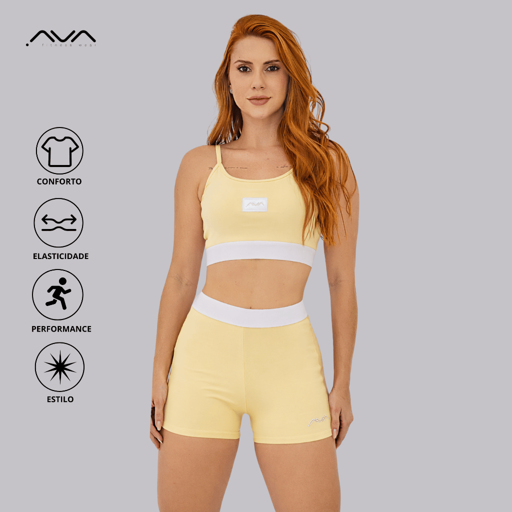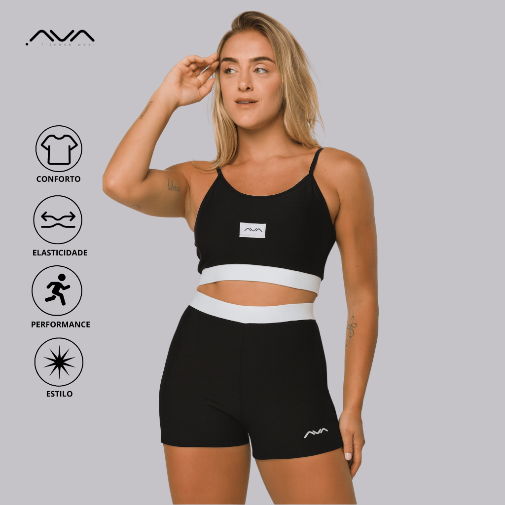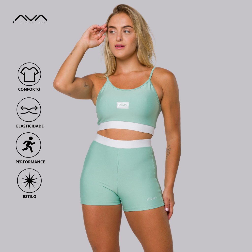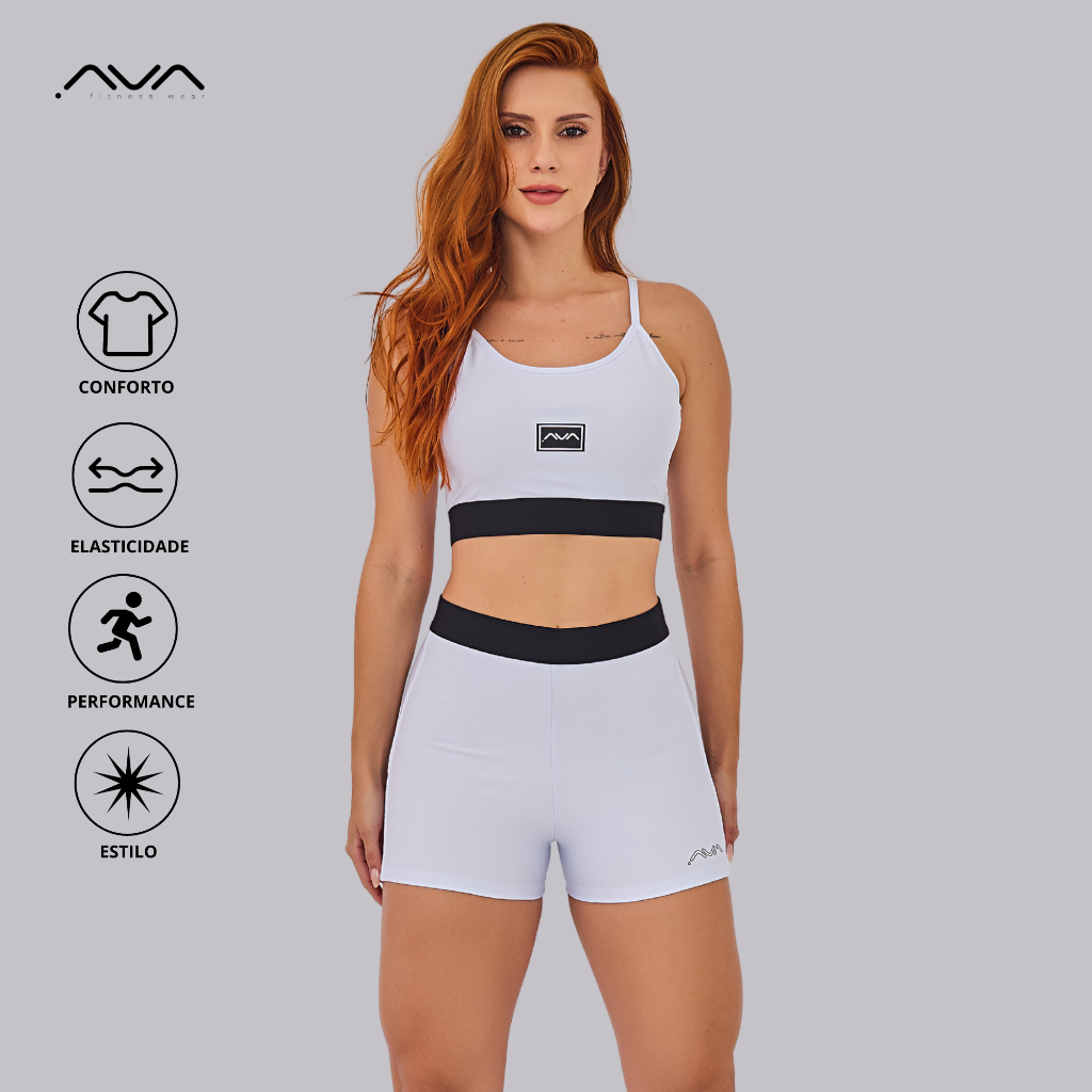 Conjunto Feminino Academia Suplex Poliamida Top e Short Com Elástico No Cós AVA Fitness