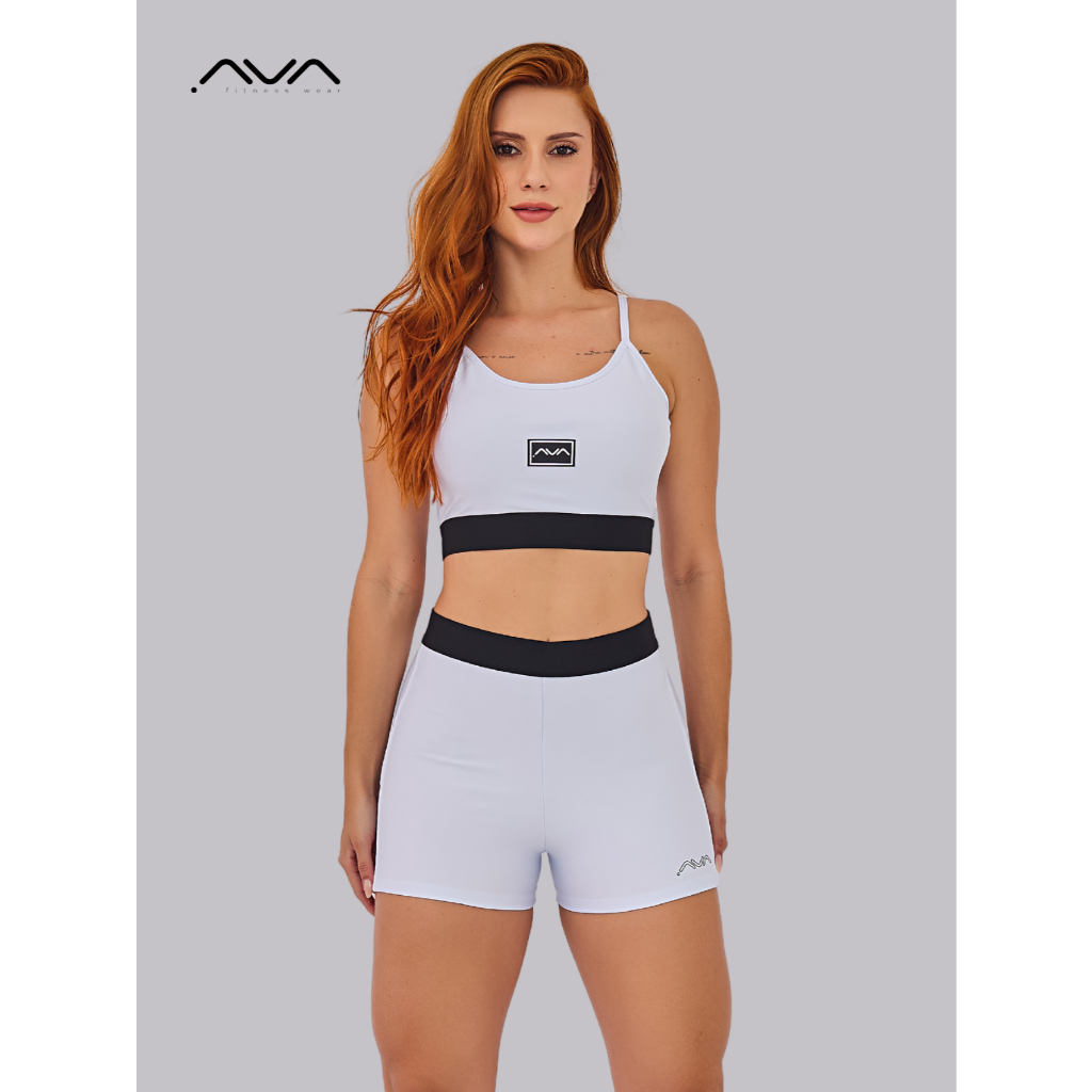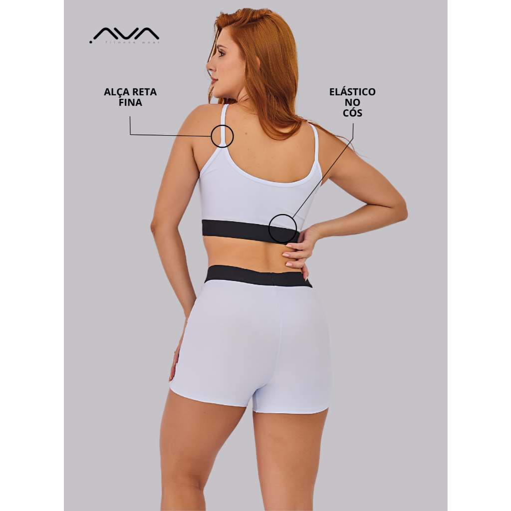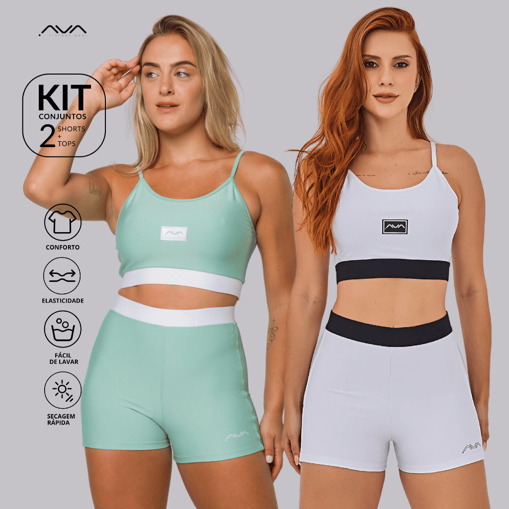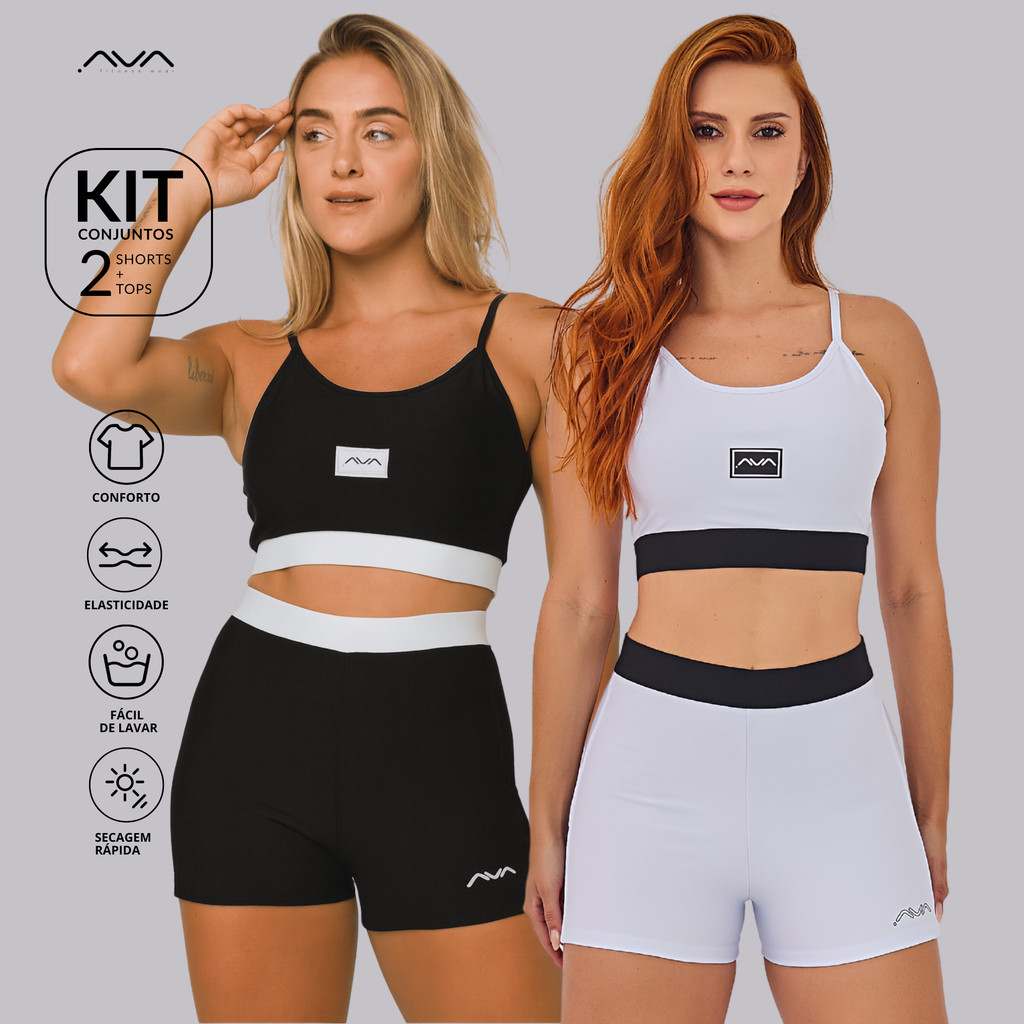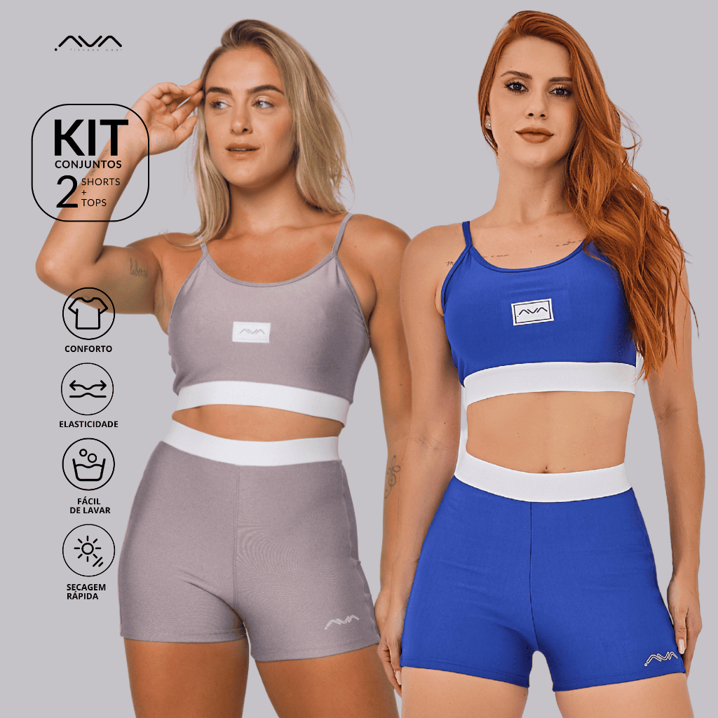 Kit 2 Conjuntos Feminino Academia Suplex Poliamida Top e Short Com Elástico No Cós AVA Fitness