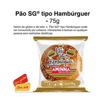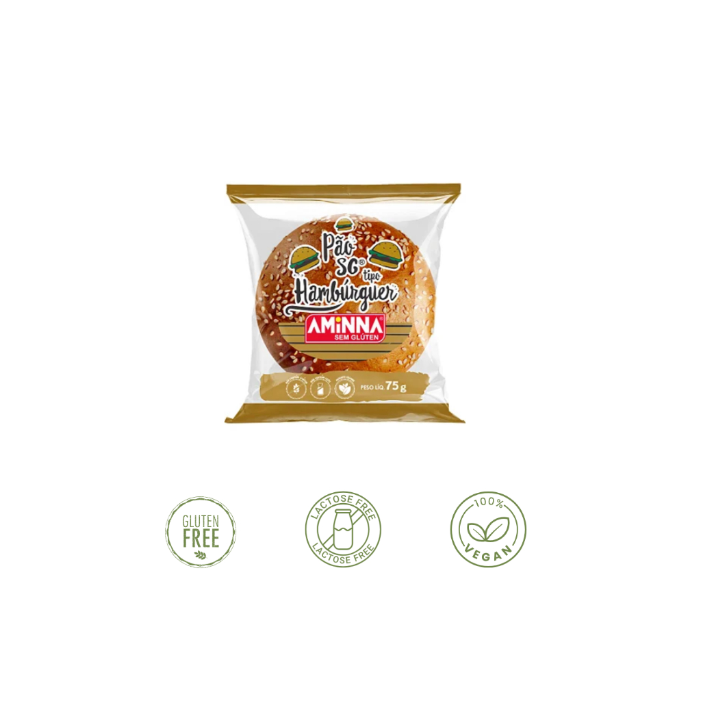 PÃO DE HAMBÚRGUER, SEM GLÚTEN, SEM LEITE 75G CADA - AMINNA