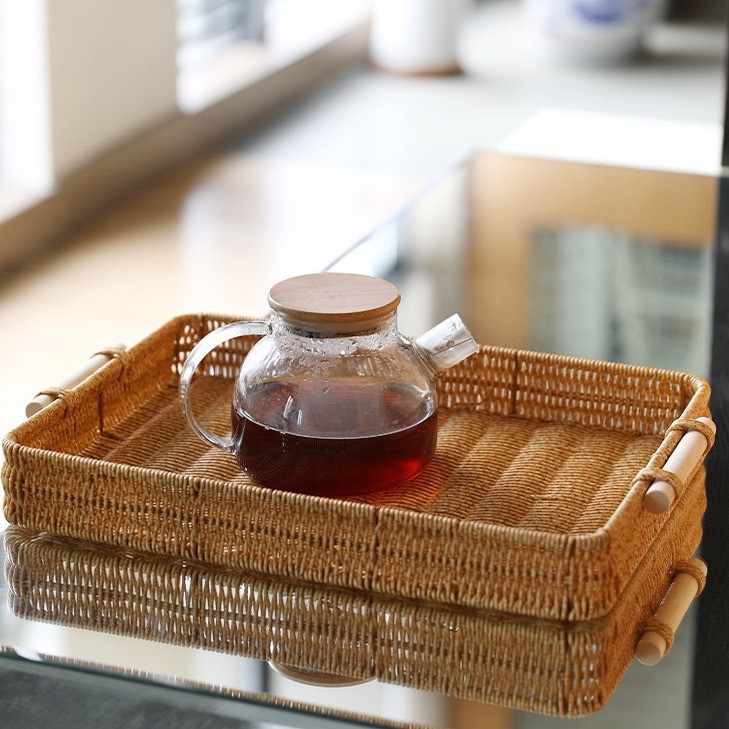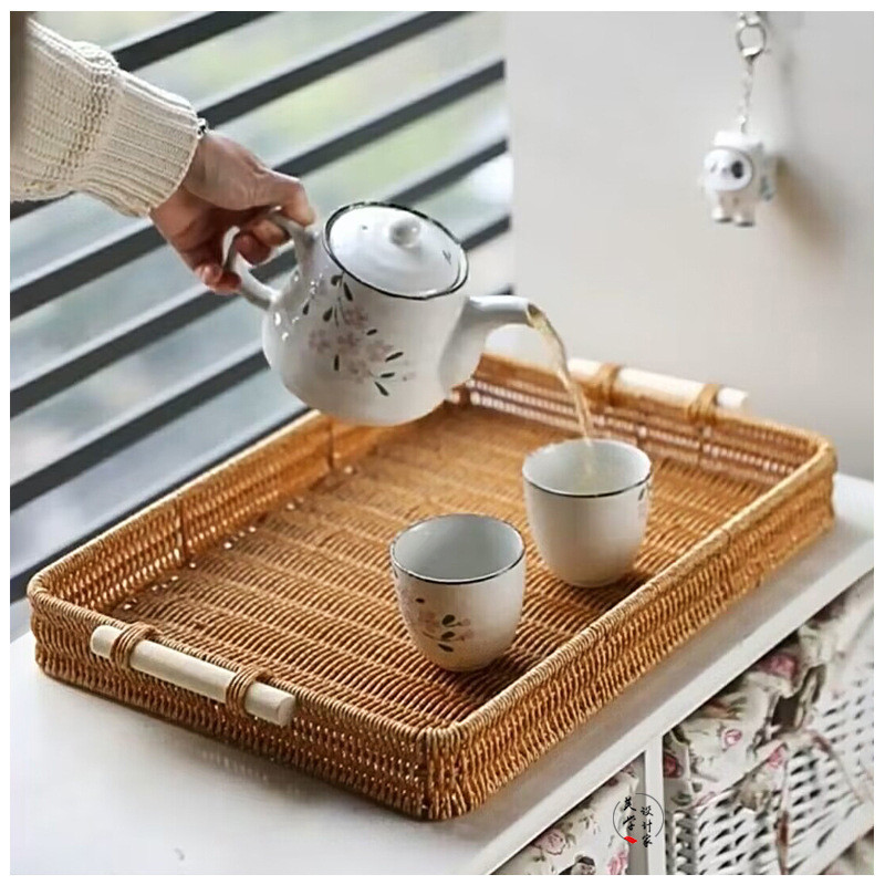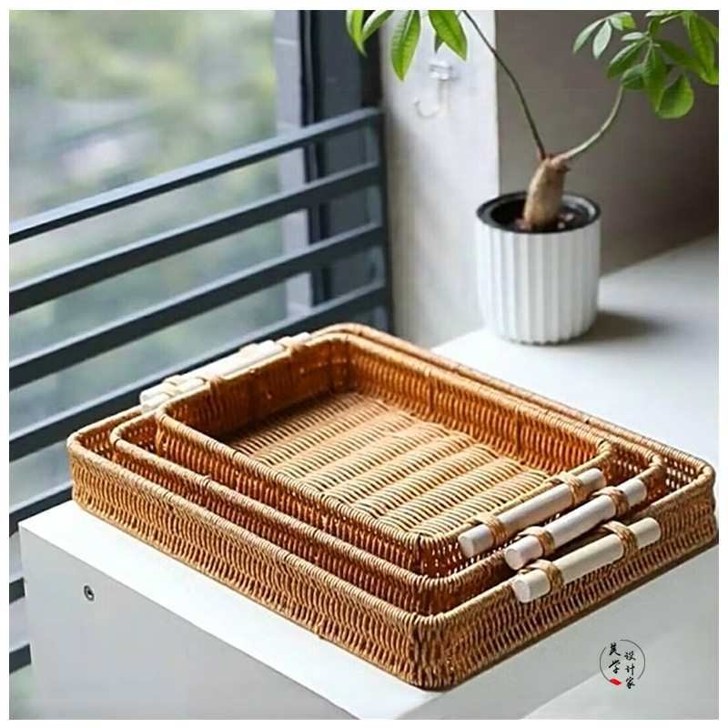 Bandeja imitação de vime para sala de estar Bandeja de chá para restaurante Bandeja de pão Cesta de armazenamento