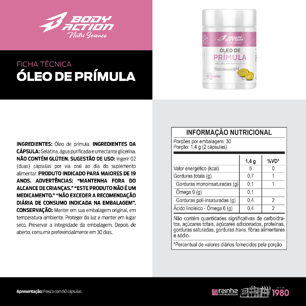 Óleo De Prímula 400mg 60 Cápsulas Bodyaction