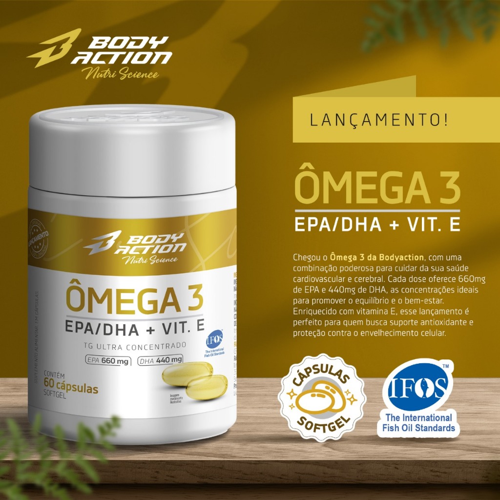 Ômega 3 Epa 660mg Dha 440mg + Vitamina E 60 Caps Bodyaction