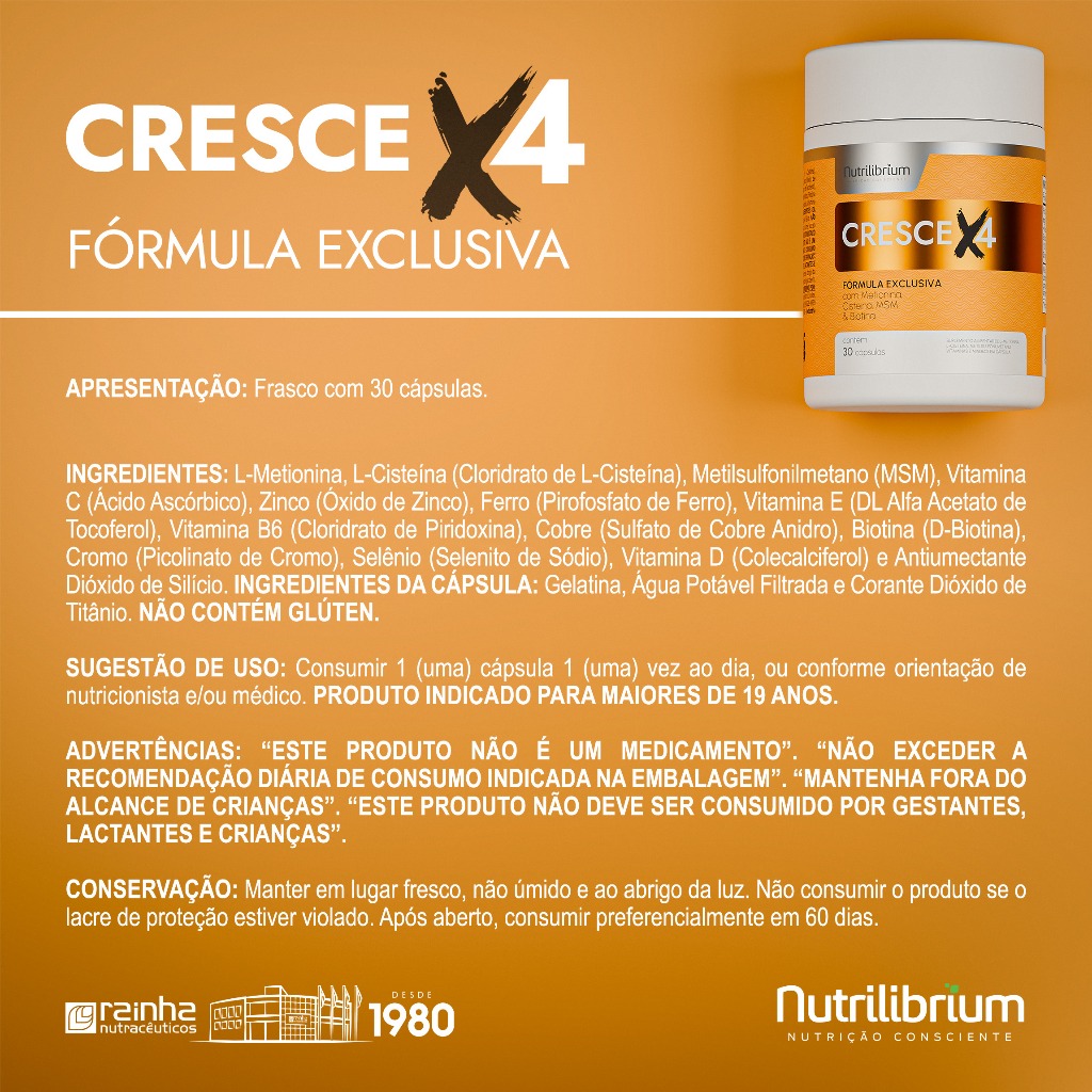 Kit 3x Cresce X4 Metionina Cisteína Biotina Cromo Zinco 90 Dias Nutrilibrium