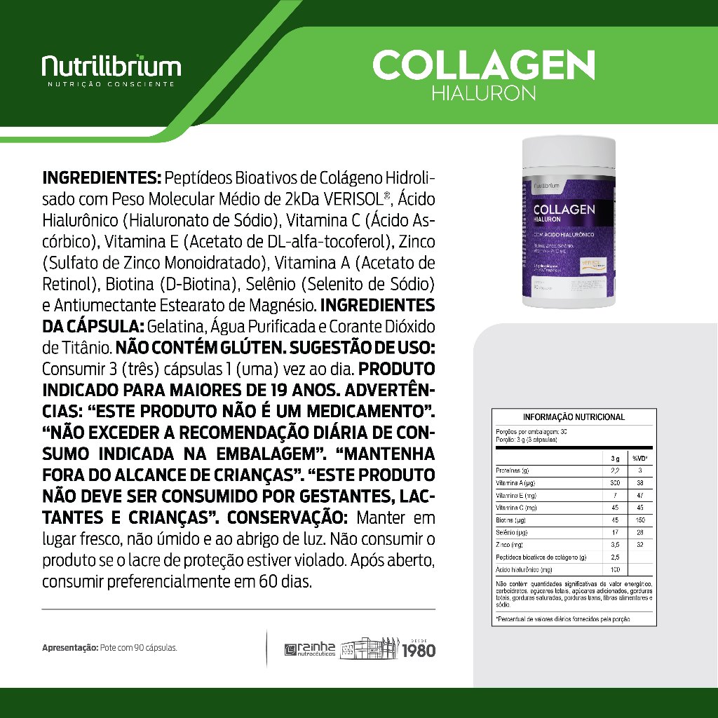 Colágeno Verisol Ácido Hialurônico 90 Caps + Celluoff Celulite 30 Caps Nutrilibrium