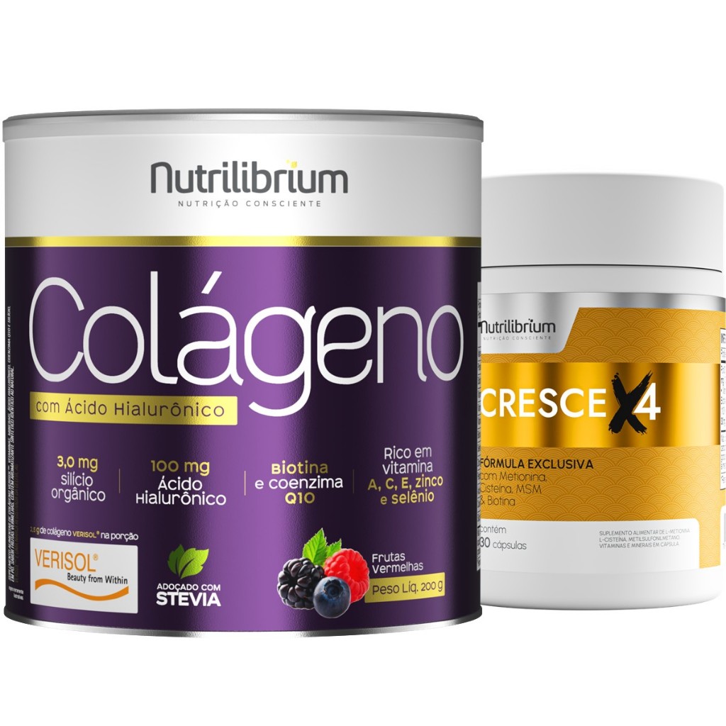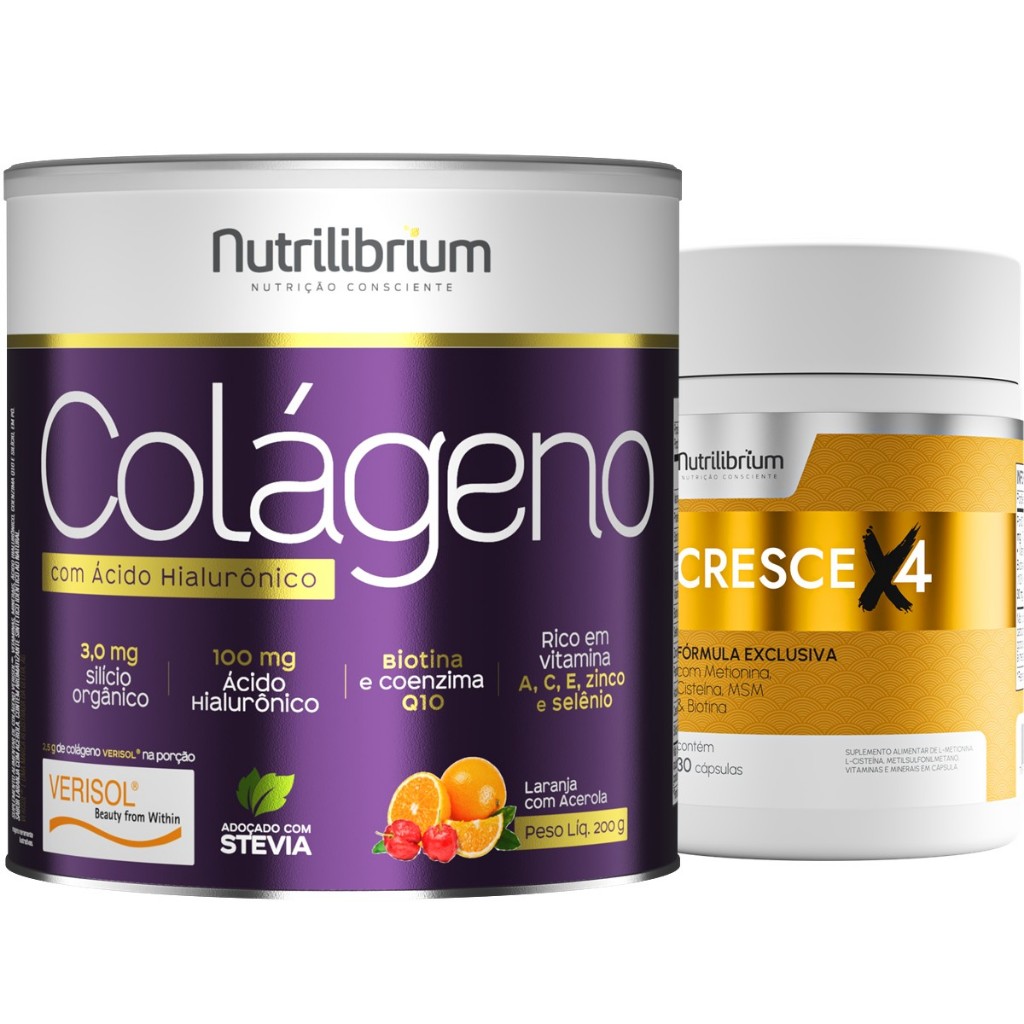 Colágeno Verisol Ácido Hialurônico 200g + Cresce X4 30 Caps Nutrilibrium