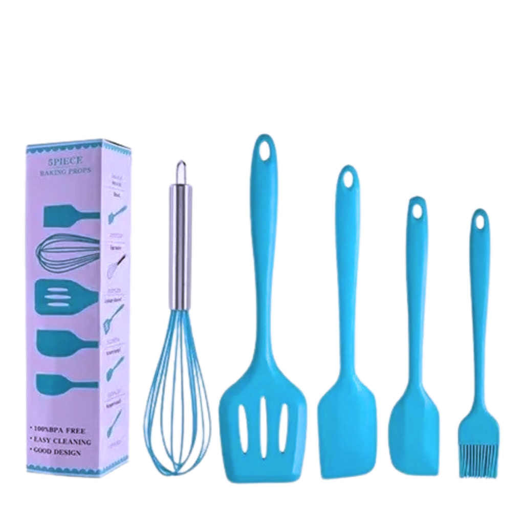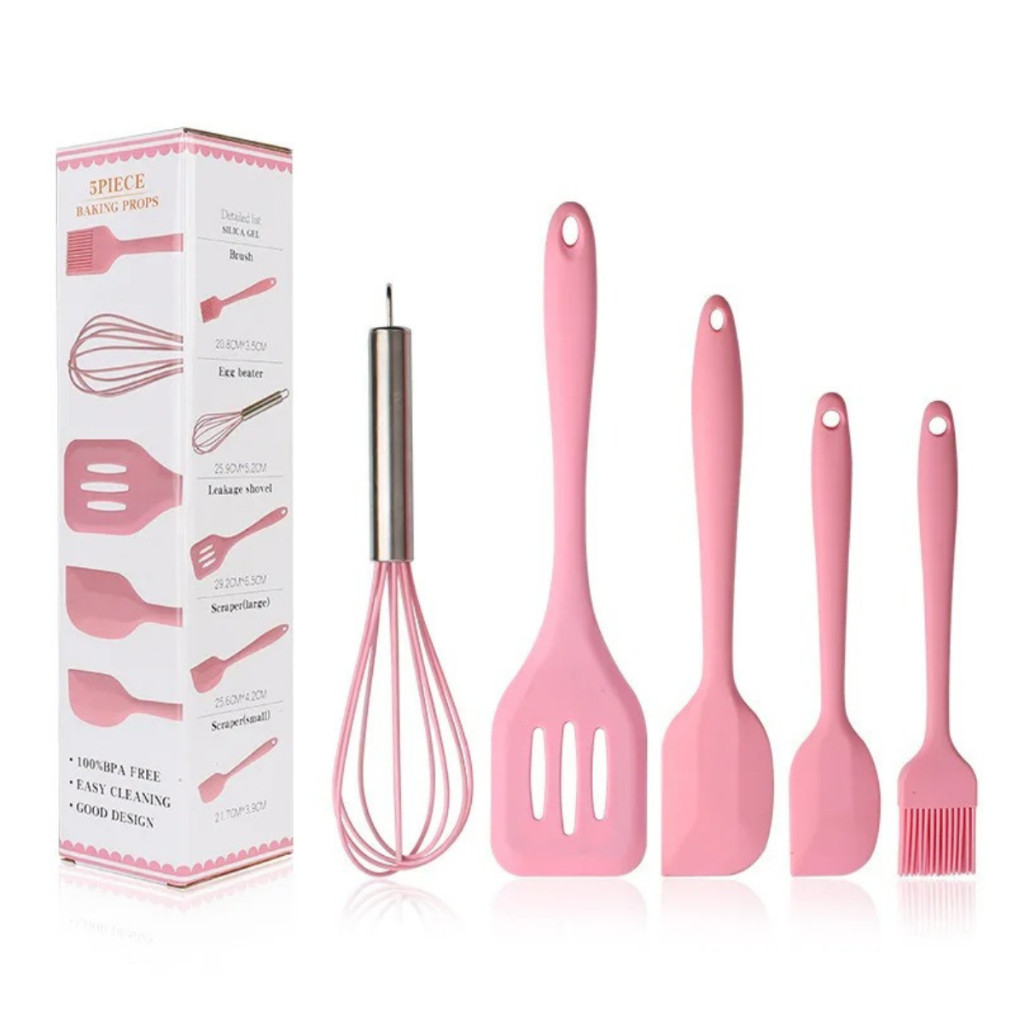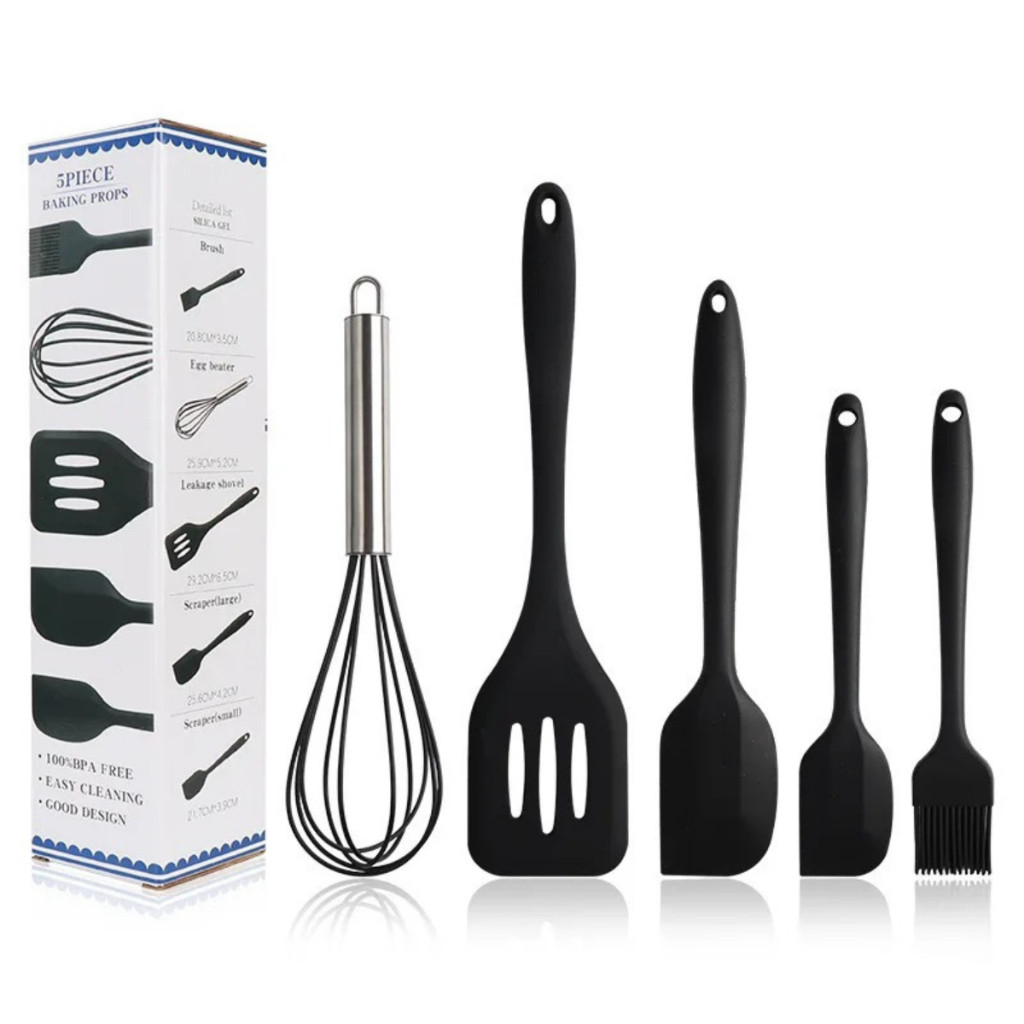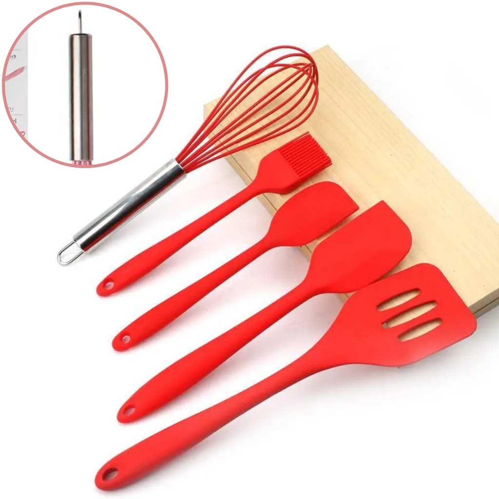 Kit com 5 Utensílios de Cozinha em Silicone – Colher Espátula, Espátula Pequena, Pincel, Resistentes