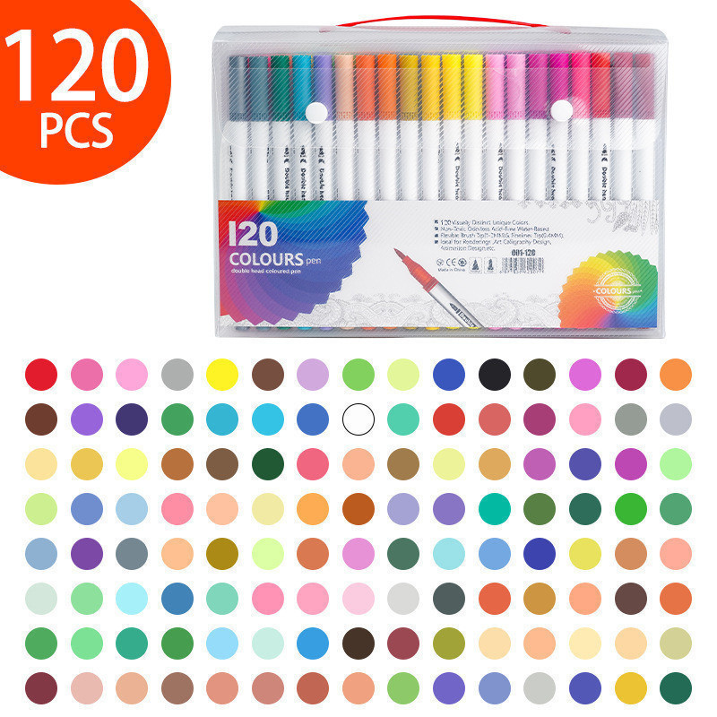 Kit 24/36/48/60/80/100/120 Cores Caneta 2 em 1 Brush Lettering e Ponta Fina Dual Pen Canetinha Colorir Desenho