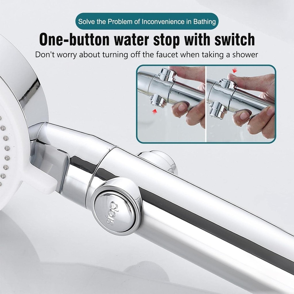 Chuveiro De Mão 5 Modos De Alta Pressão Com Botão Interruptor E Mangueira E Suporte