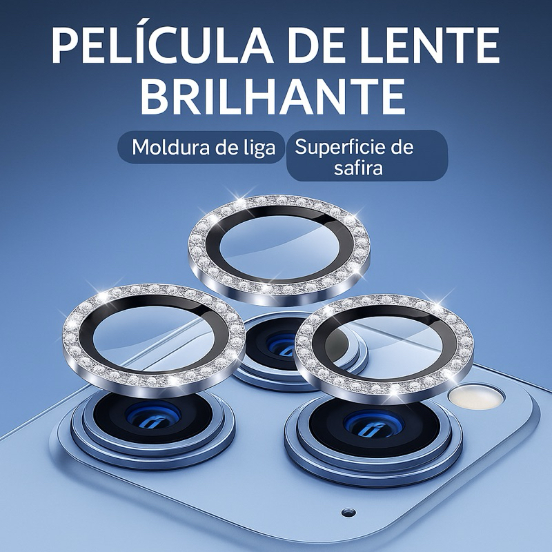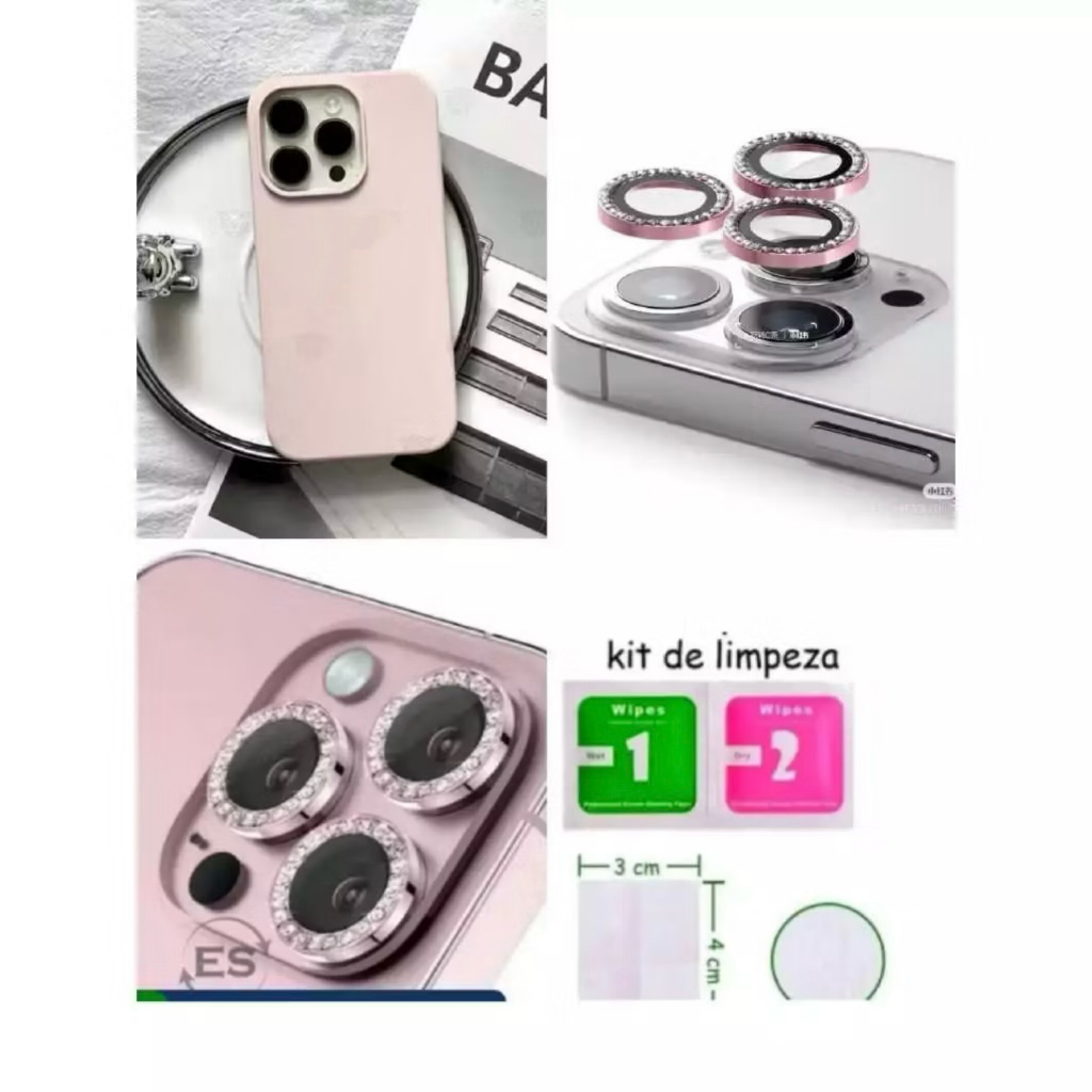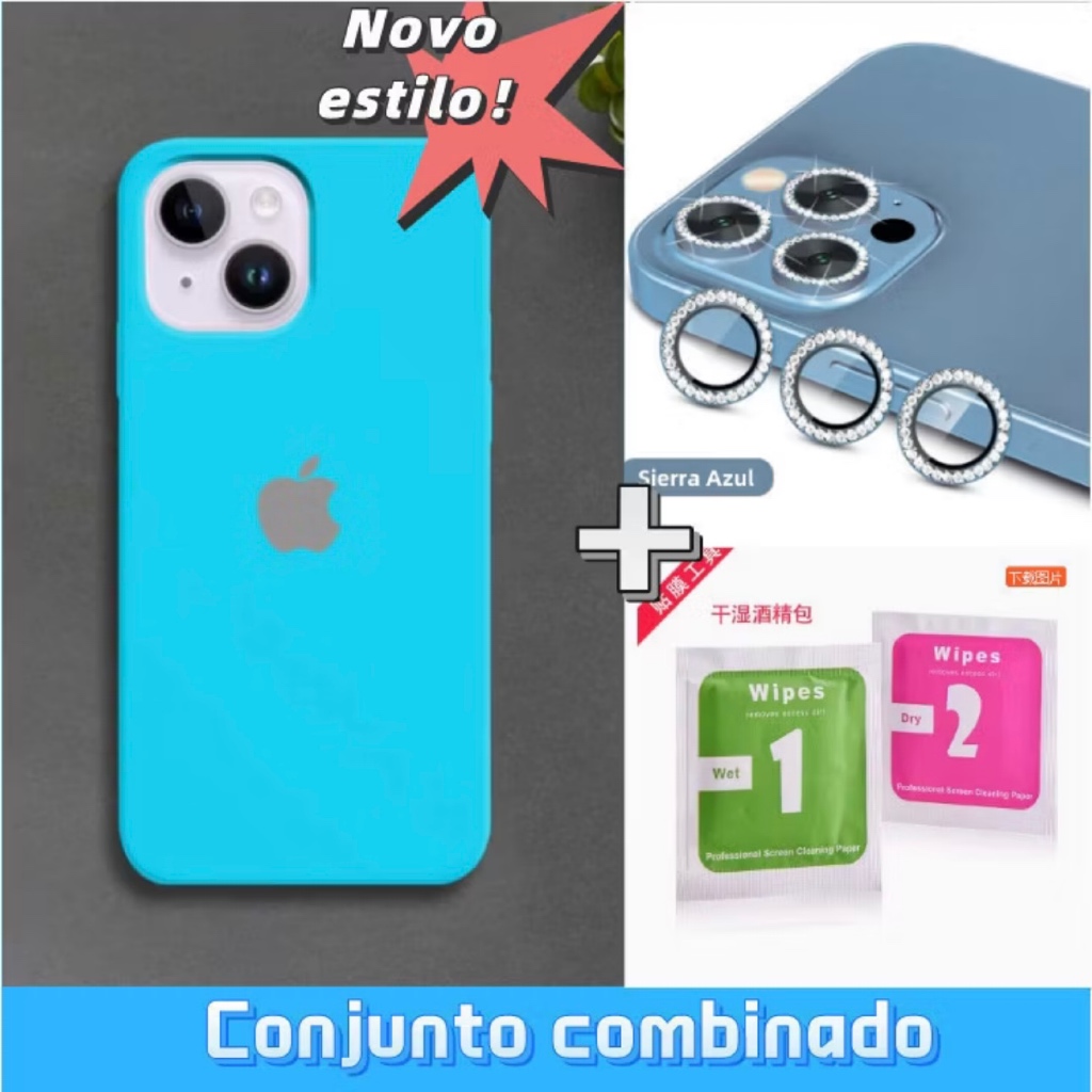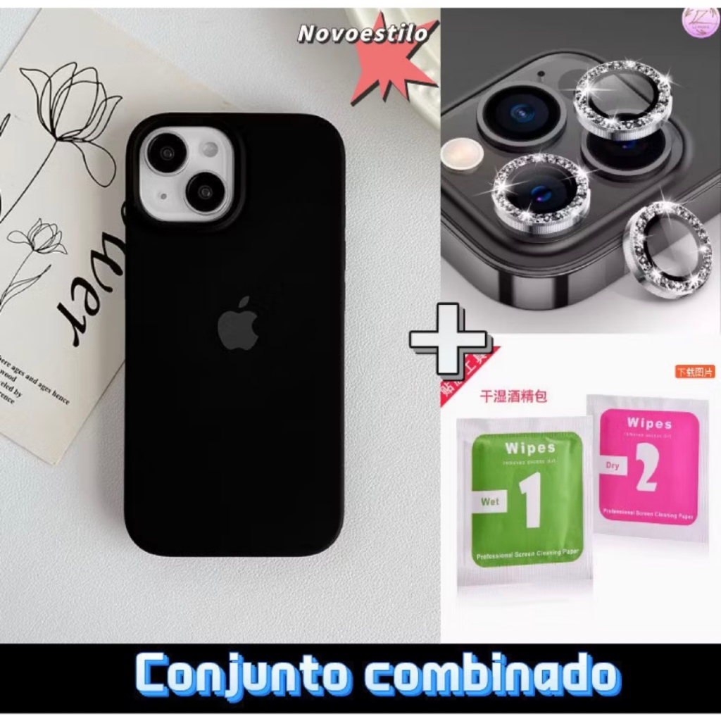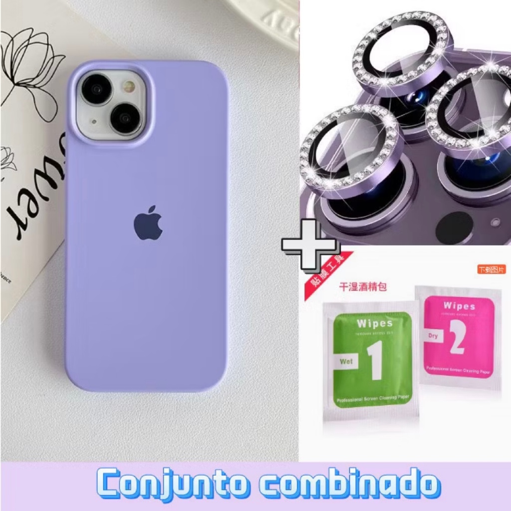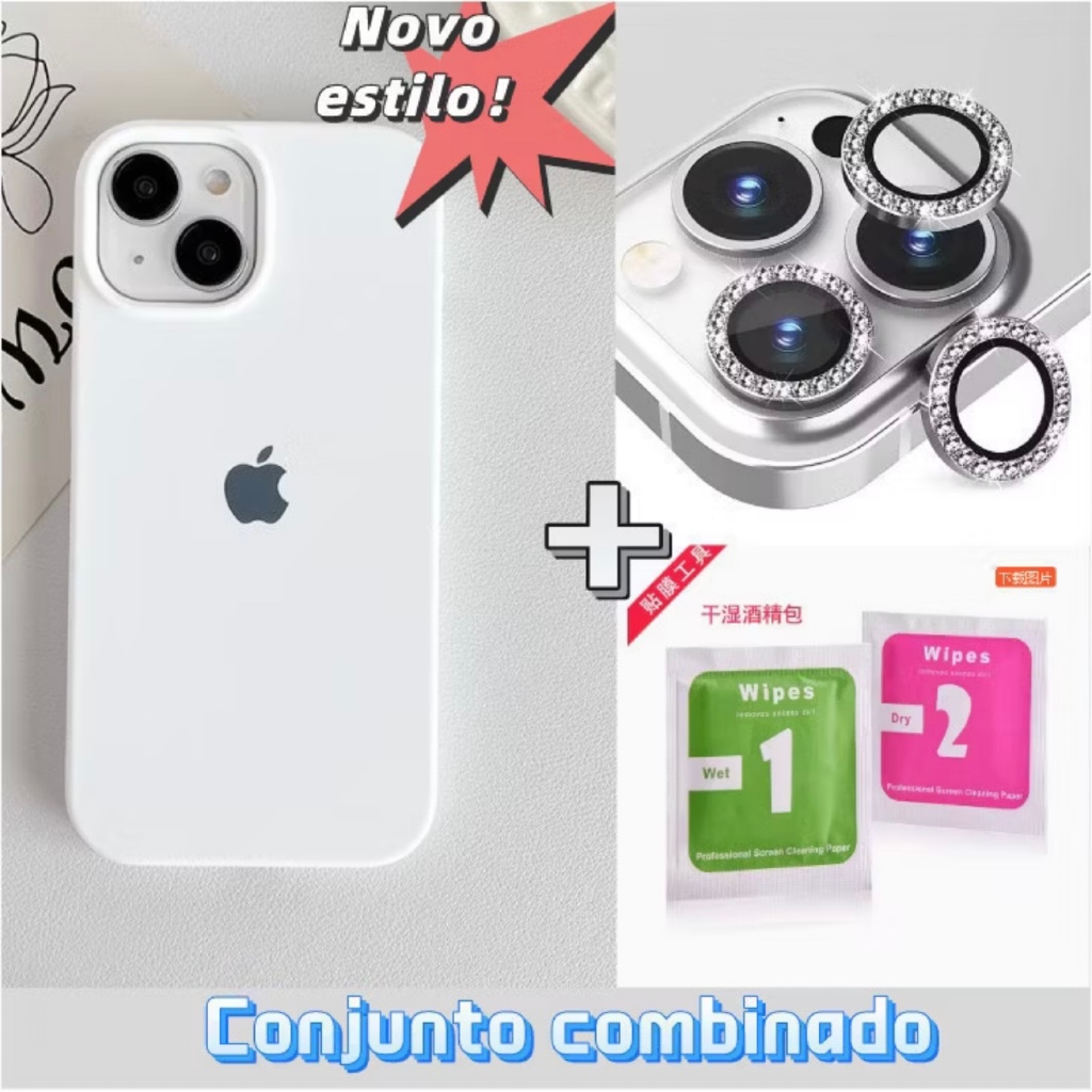 Capinha Silicone + Kit Lente Película De Câmera Diamante Para iphone11 12 13 14 15 16 17 pro max