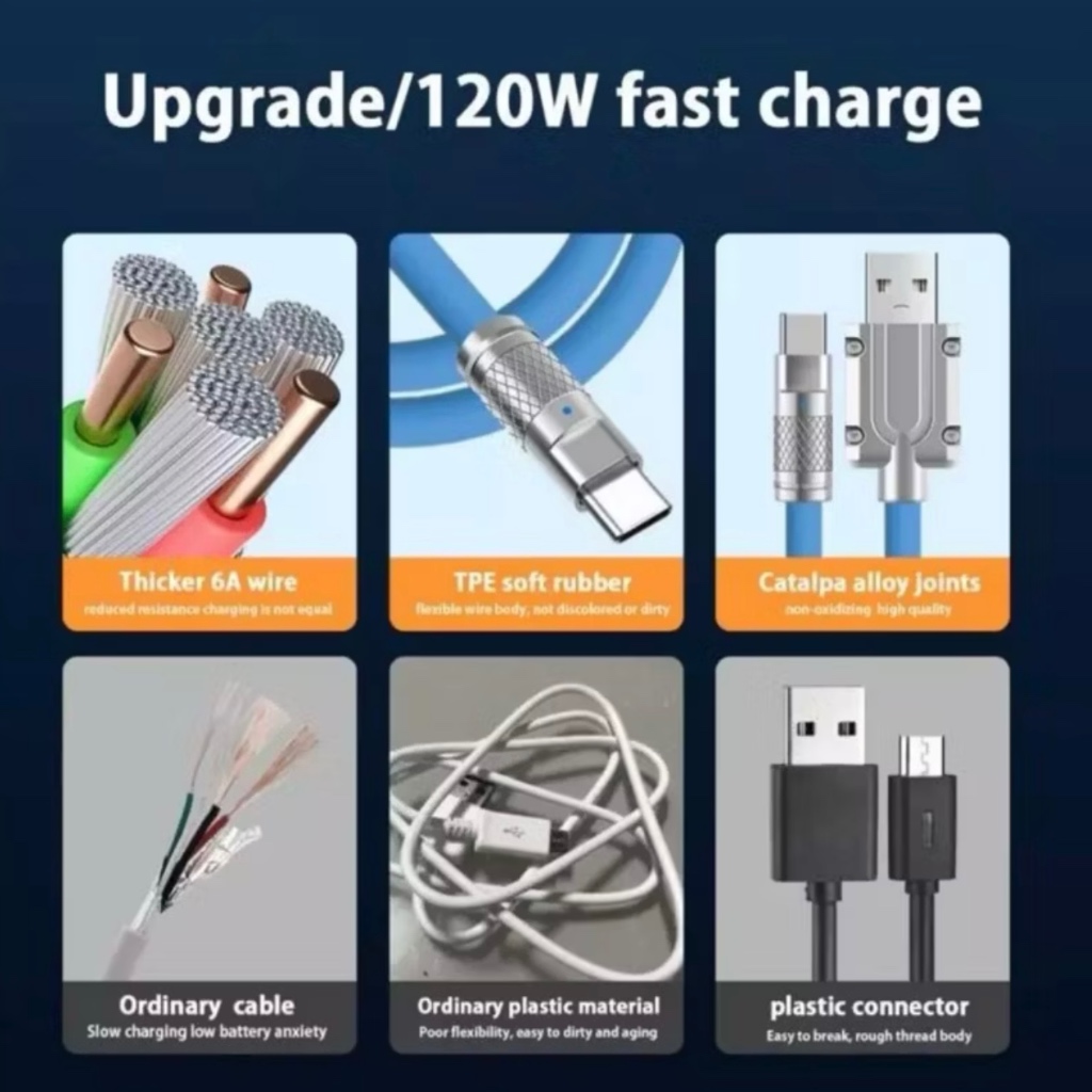 Cabo USB De Carga Rápida De Silicone Líquido Tipo C V8 Lightning 120W Para Pixel Linha De Dados Bold