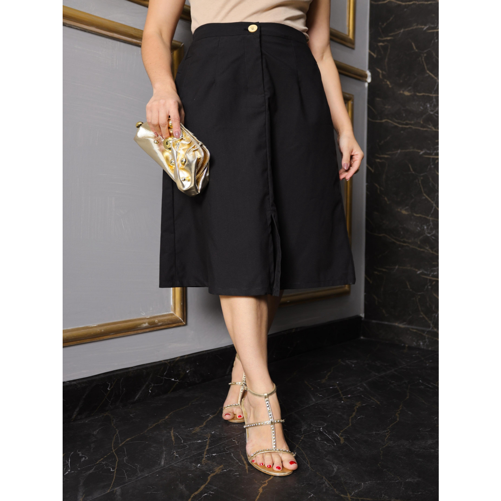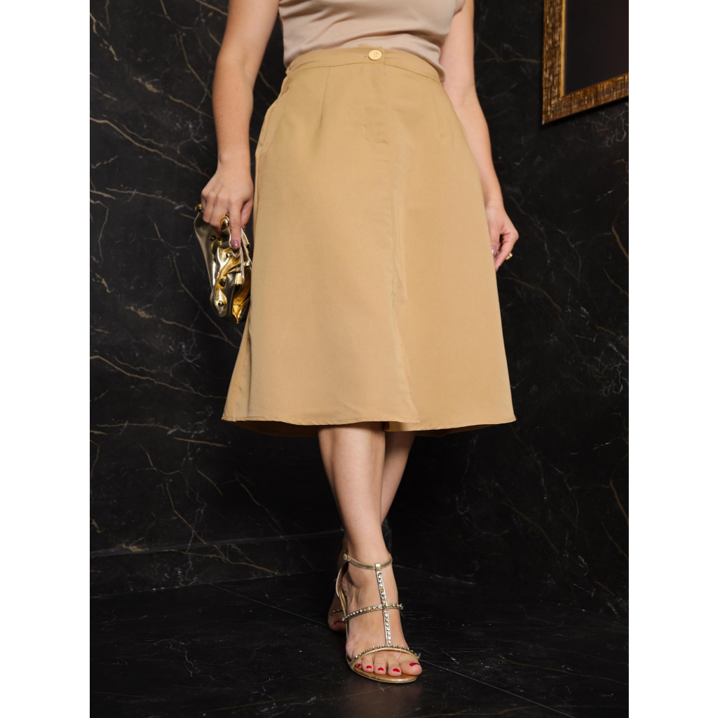 L.L.MODAS FEMININA saia midi feminina com bolso tecido sarja
