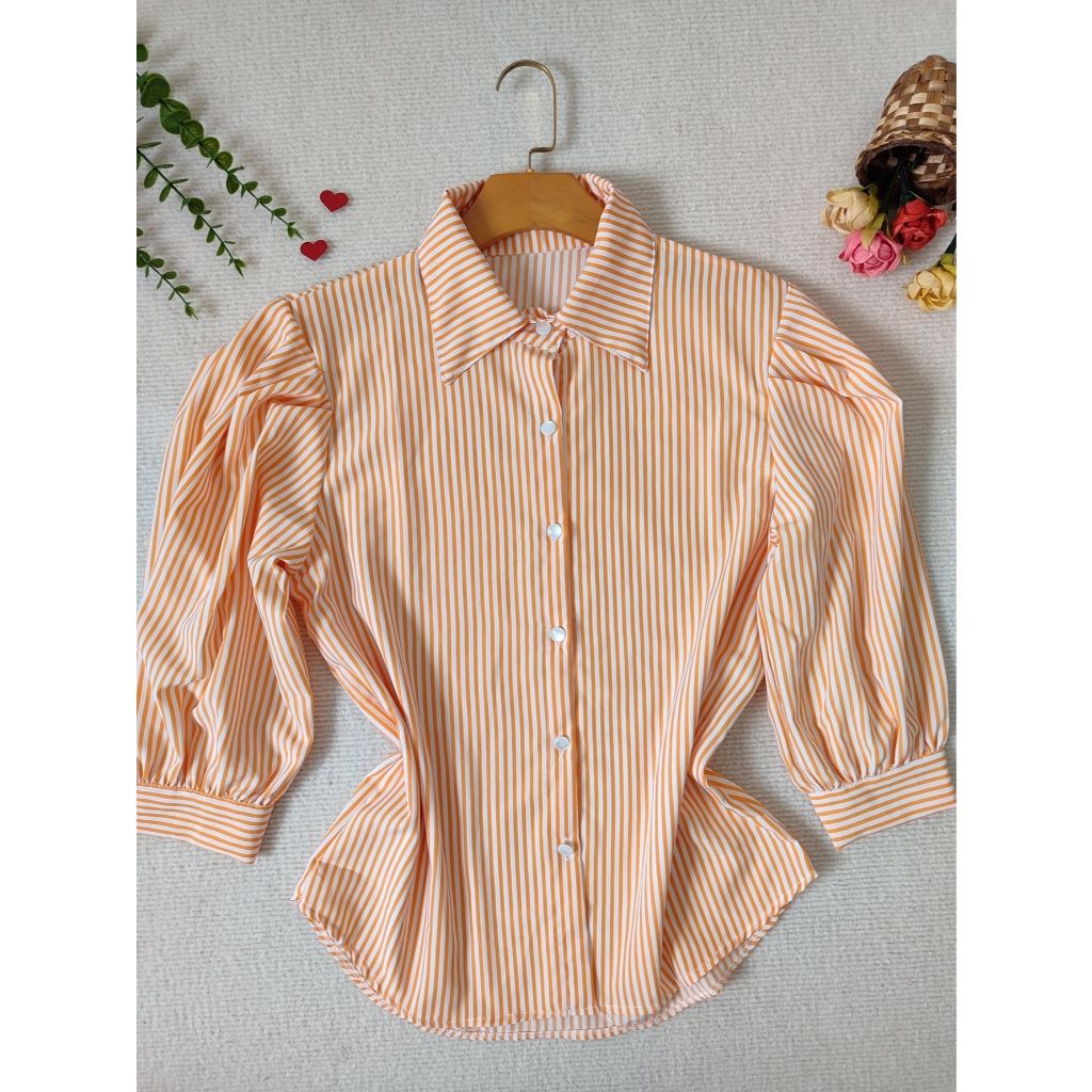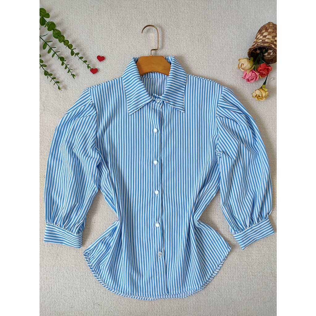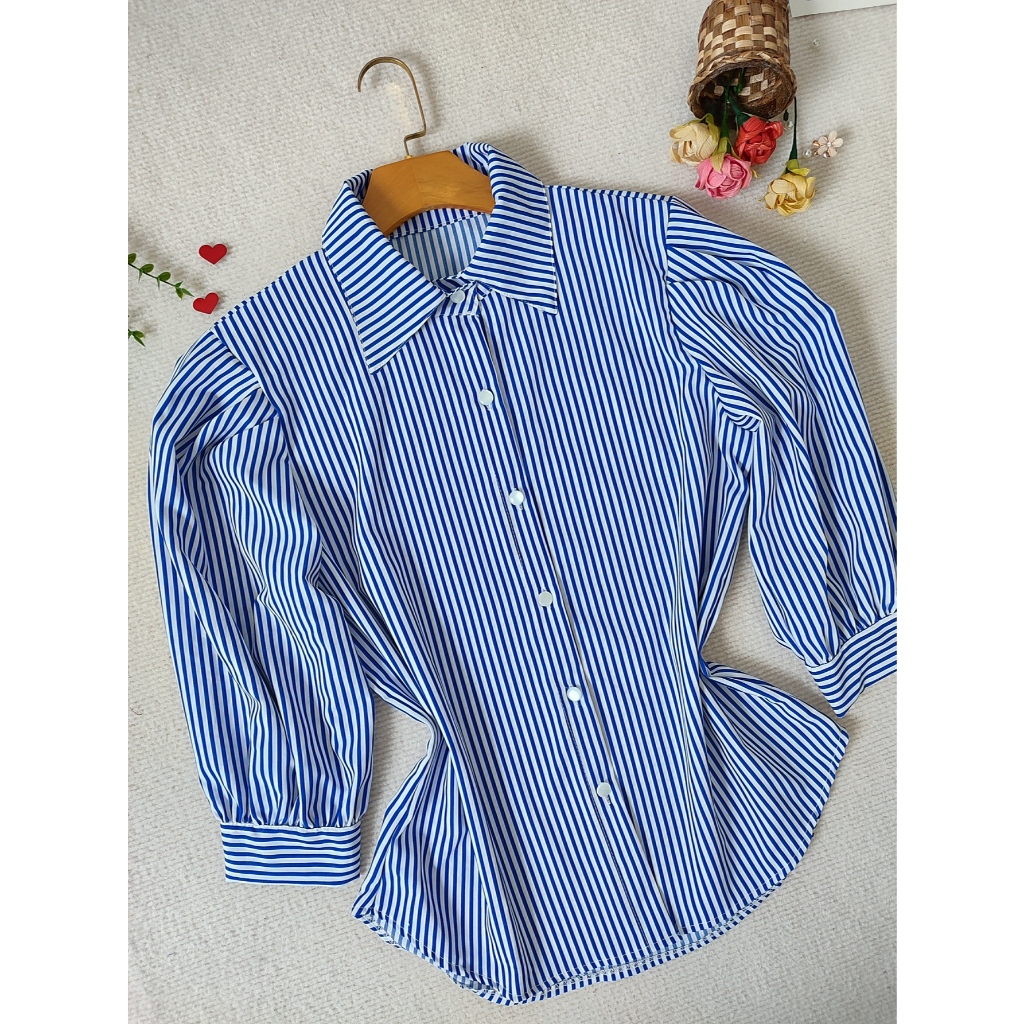 L.L.MODAS FEMININA camisa listrada feminina manga 3/4 tecido crepinho