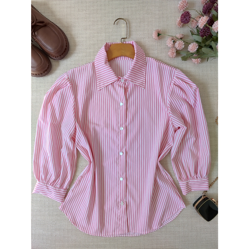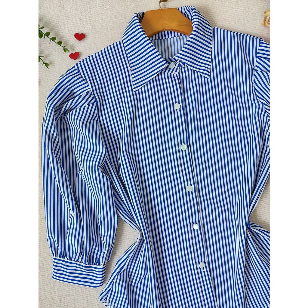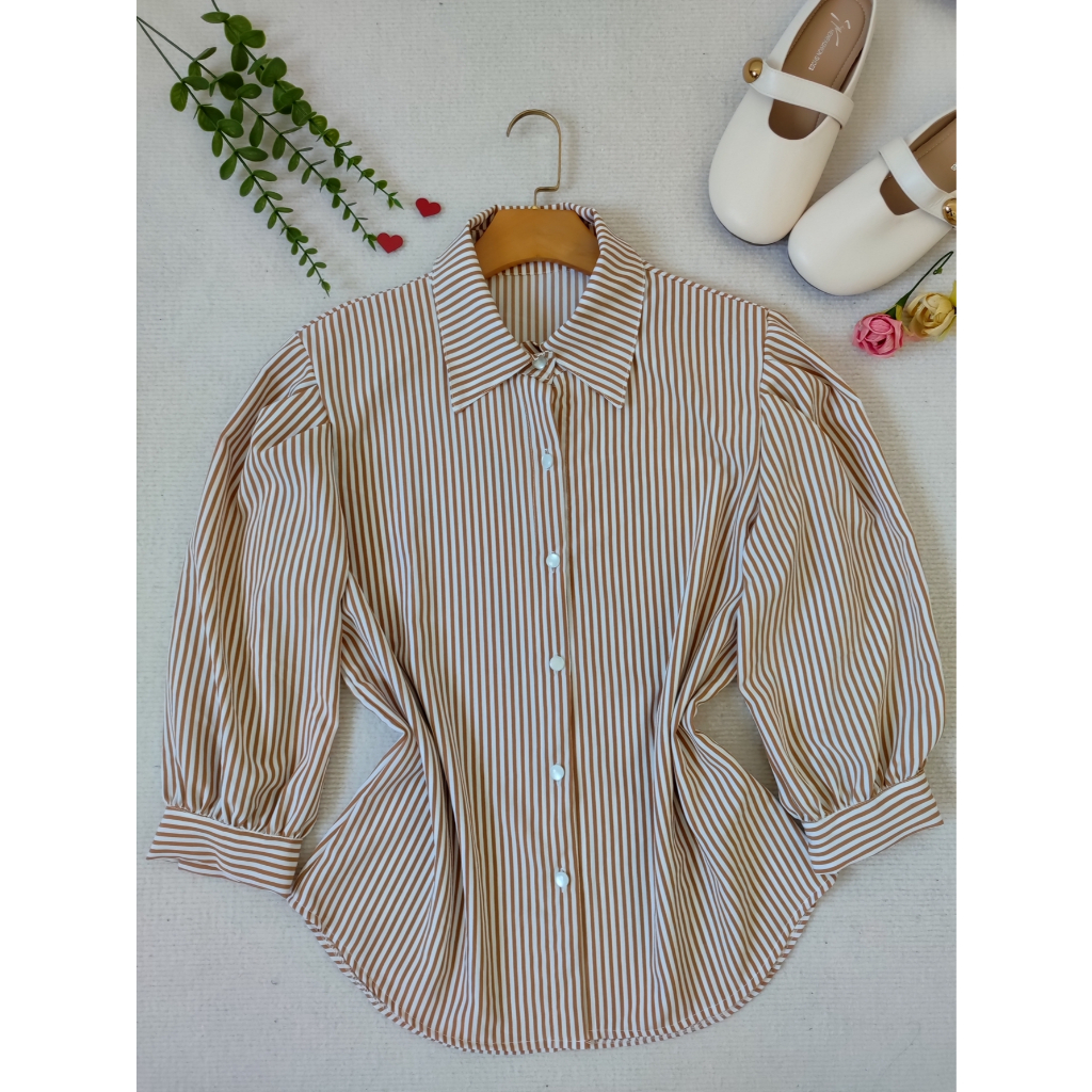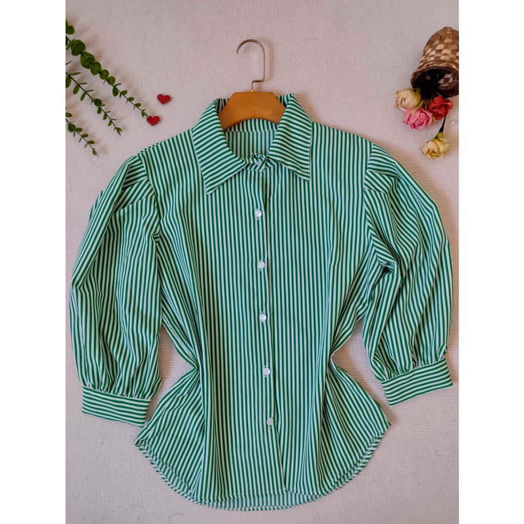 L.L.MODAS FEMININA camisa listrada feminina manga 3/4 tecido crepinho