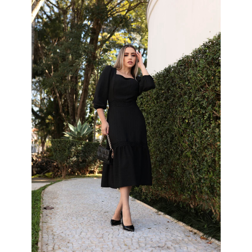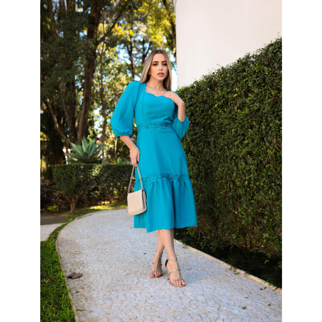 L.L.MODAS FEMININA vestido feminina social midi com detalhes gripir /manga3/4/moda evangelica