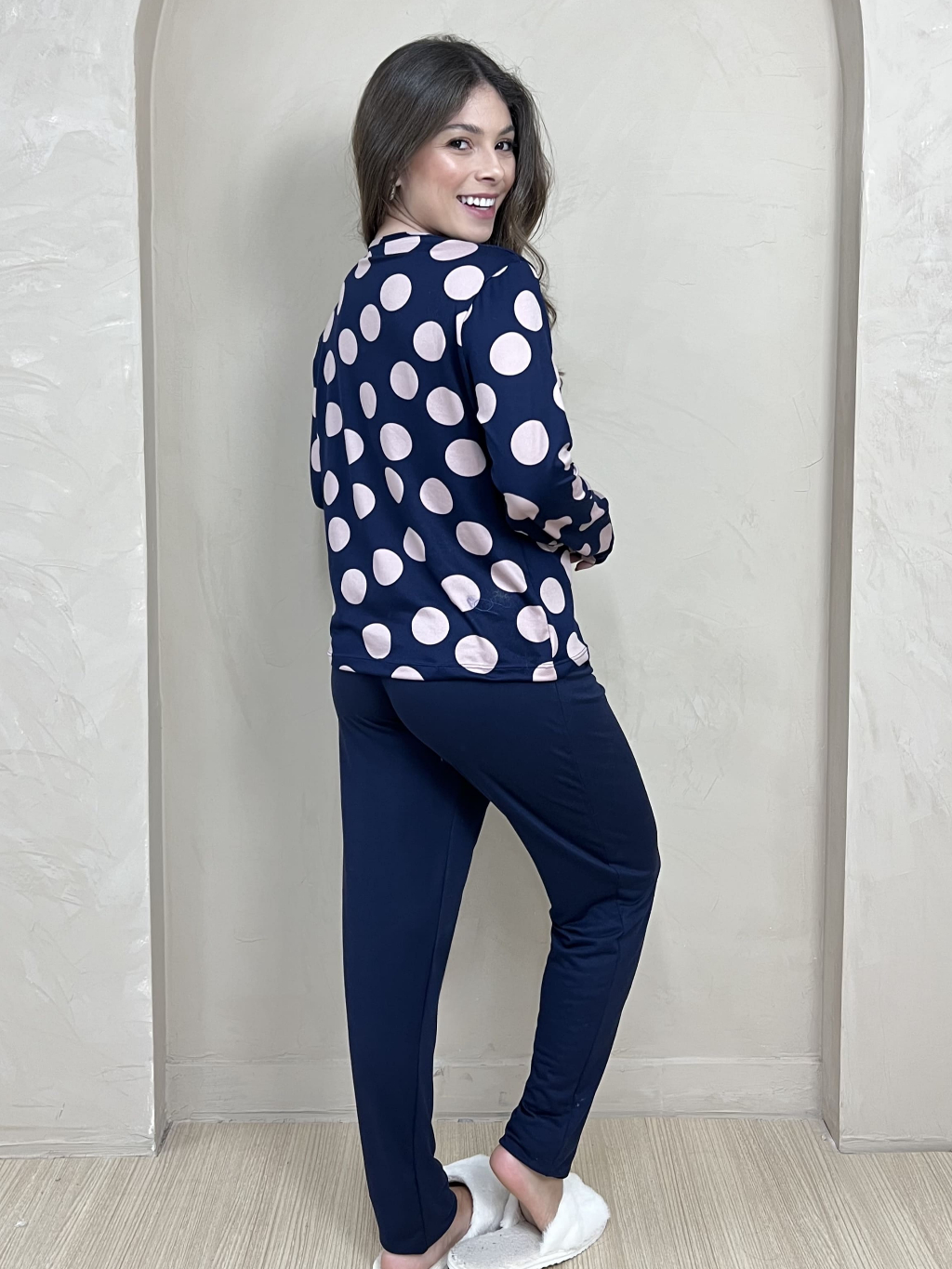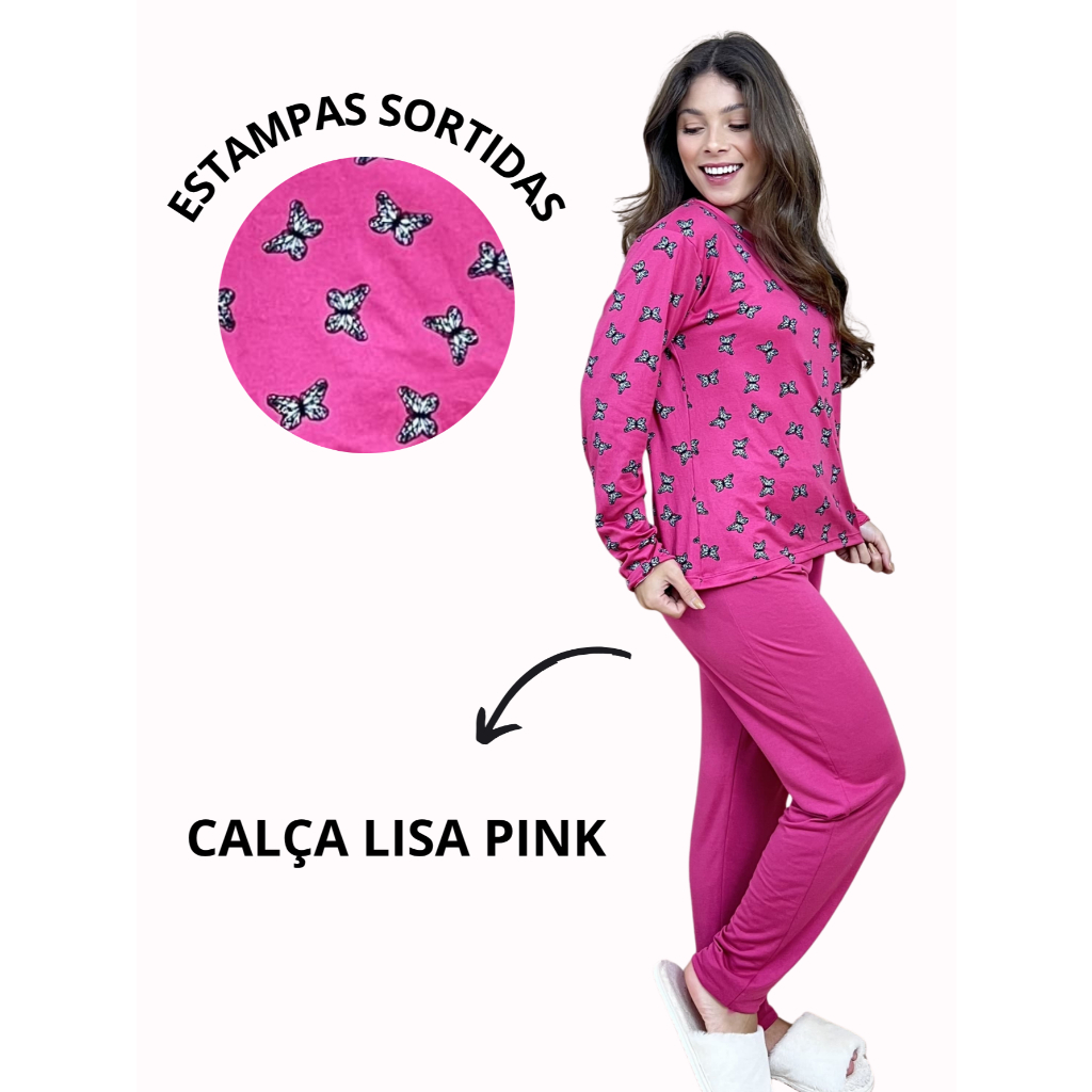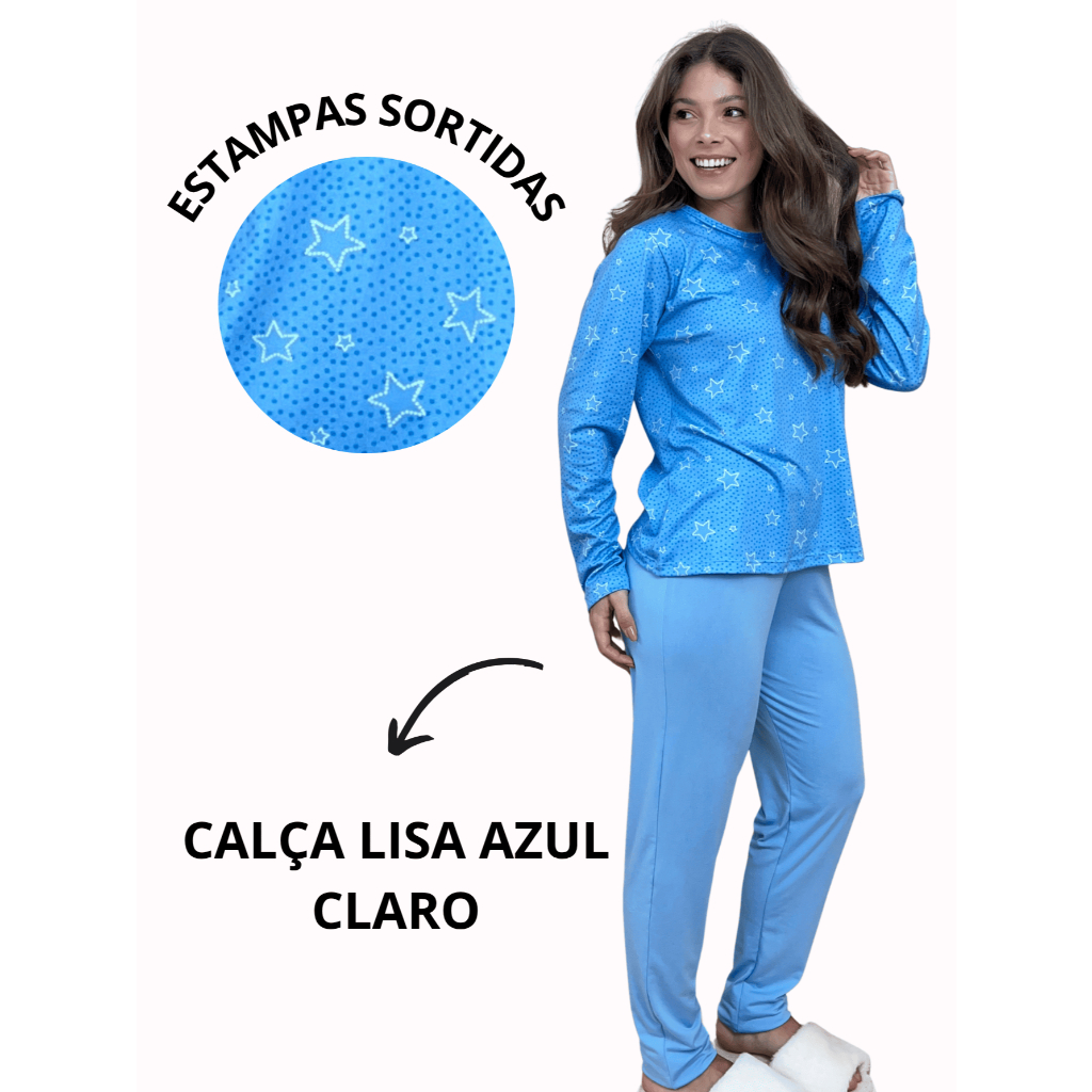 Pijama Longo Feminino Adulto Estampado Confortável Conjunto de Dormir Frio Manga Comprida Inverno