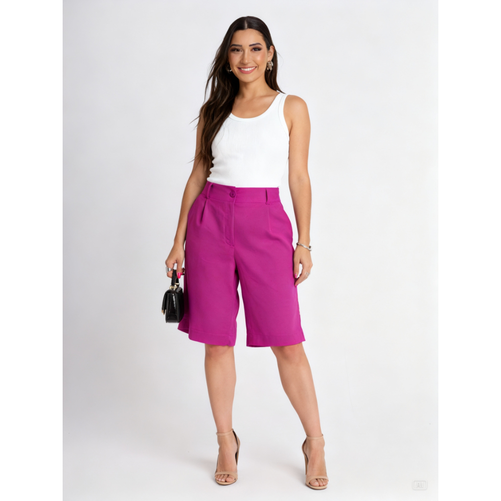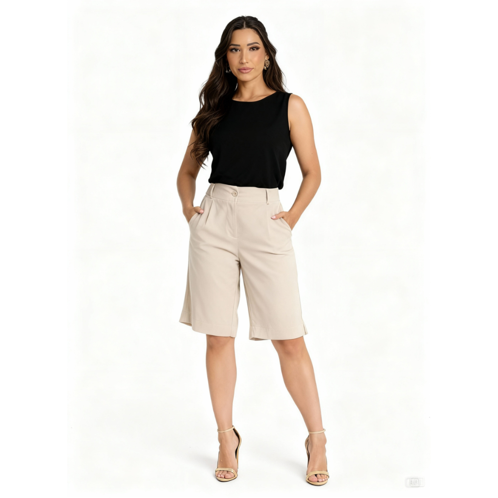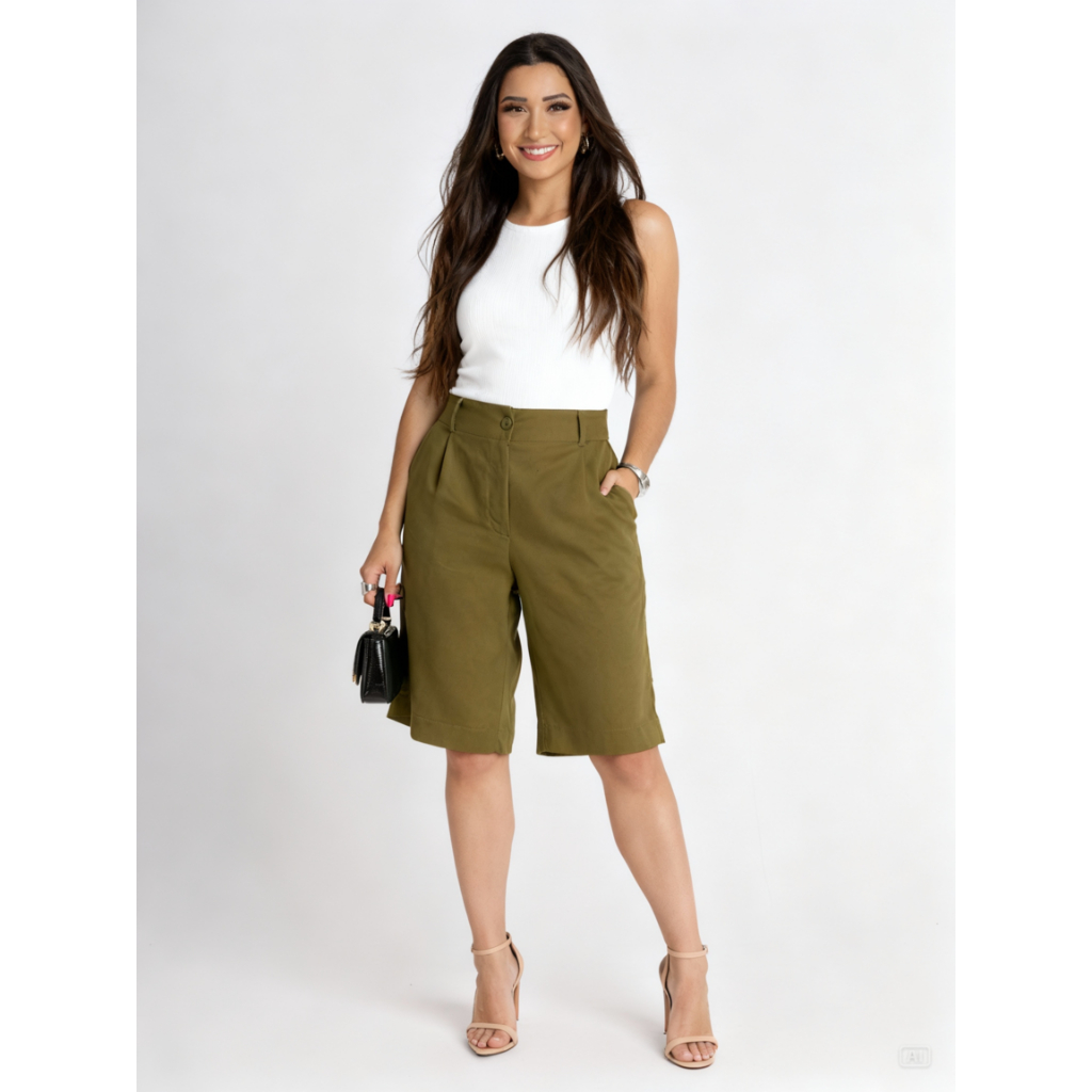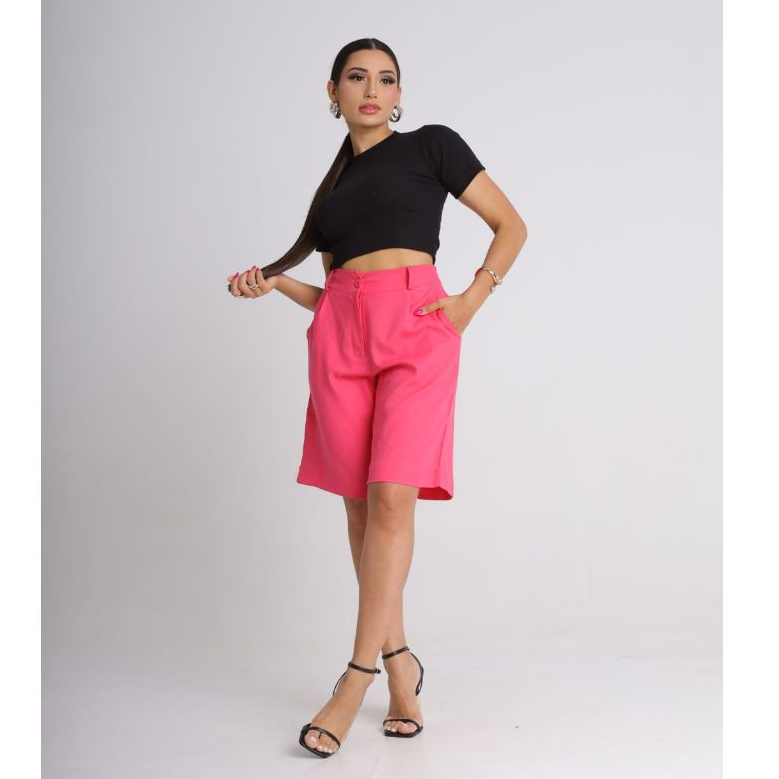 BERMUDA FEMININA LINHO COM BOLSOS ELEGANCIA E TEDÊNCIA