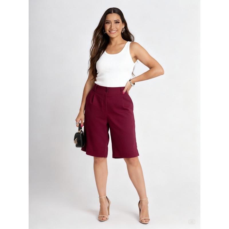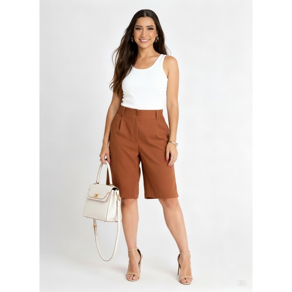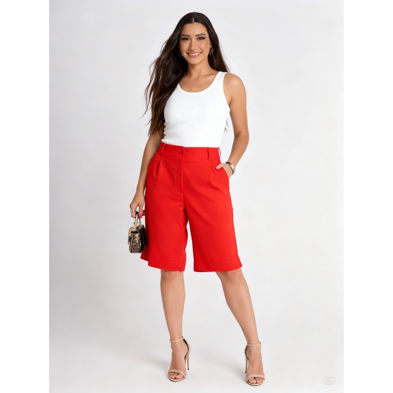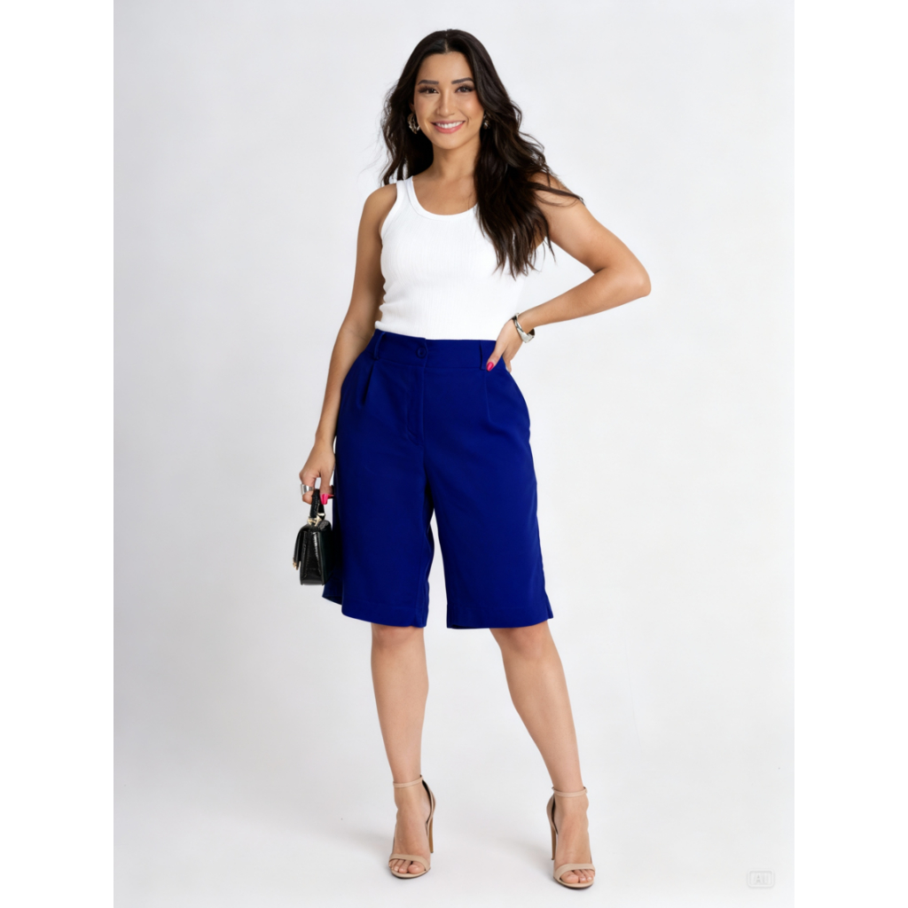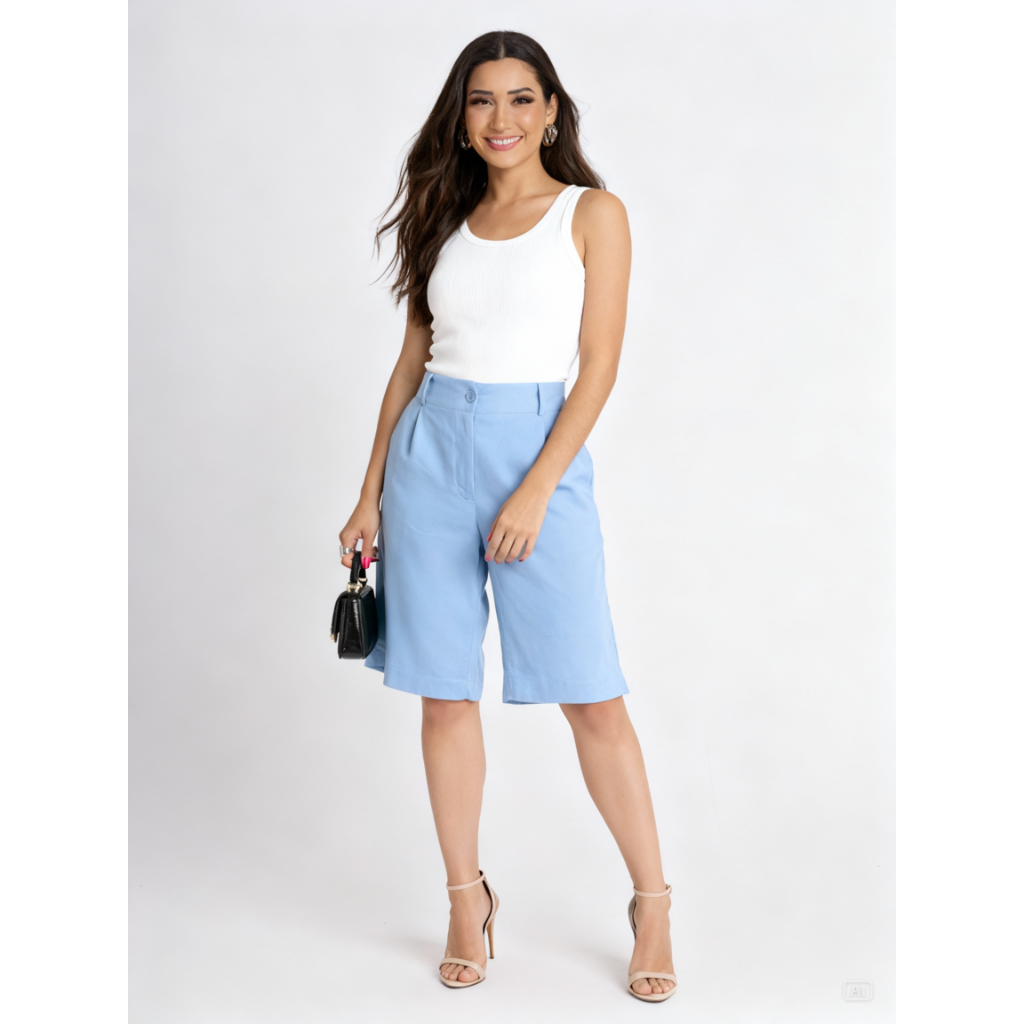 BERMUDA FEMININA LINHO COM BOLSOS ELEGANCIA E TEDÊNCIA