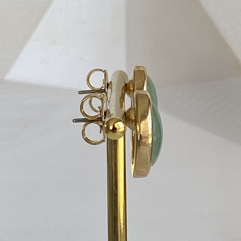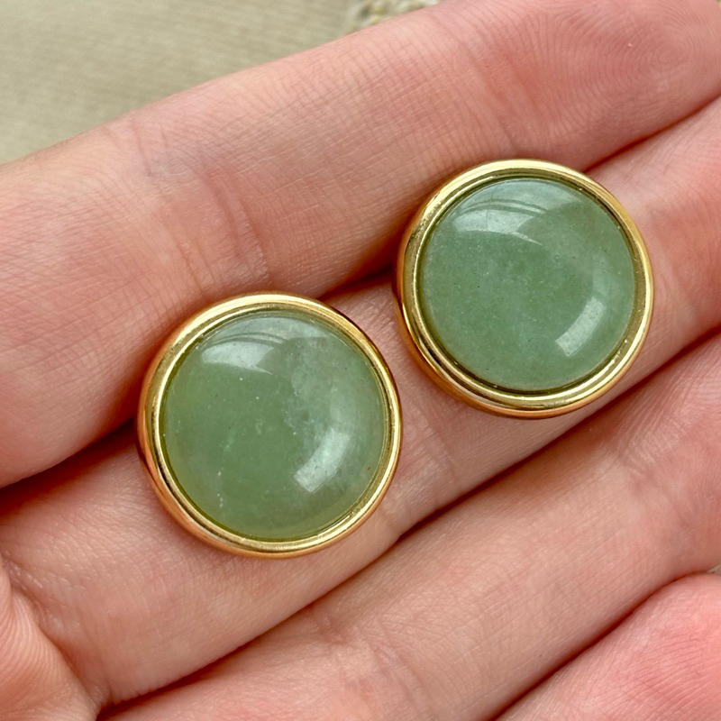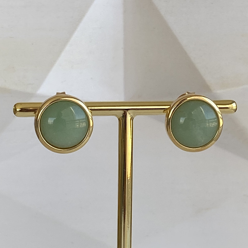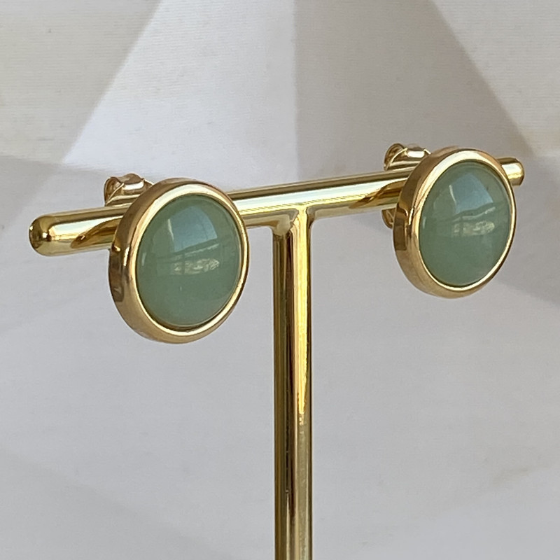 Brinco Botão com Pedra Natural Quartzo Verde Banhado a Ouro e com Pino em Aço 18K