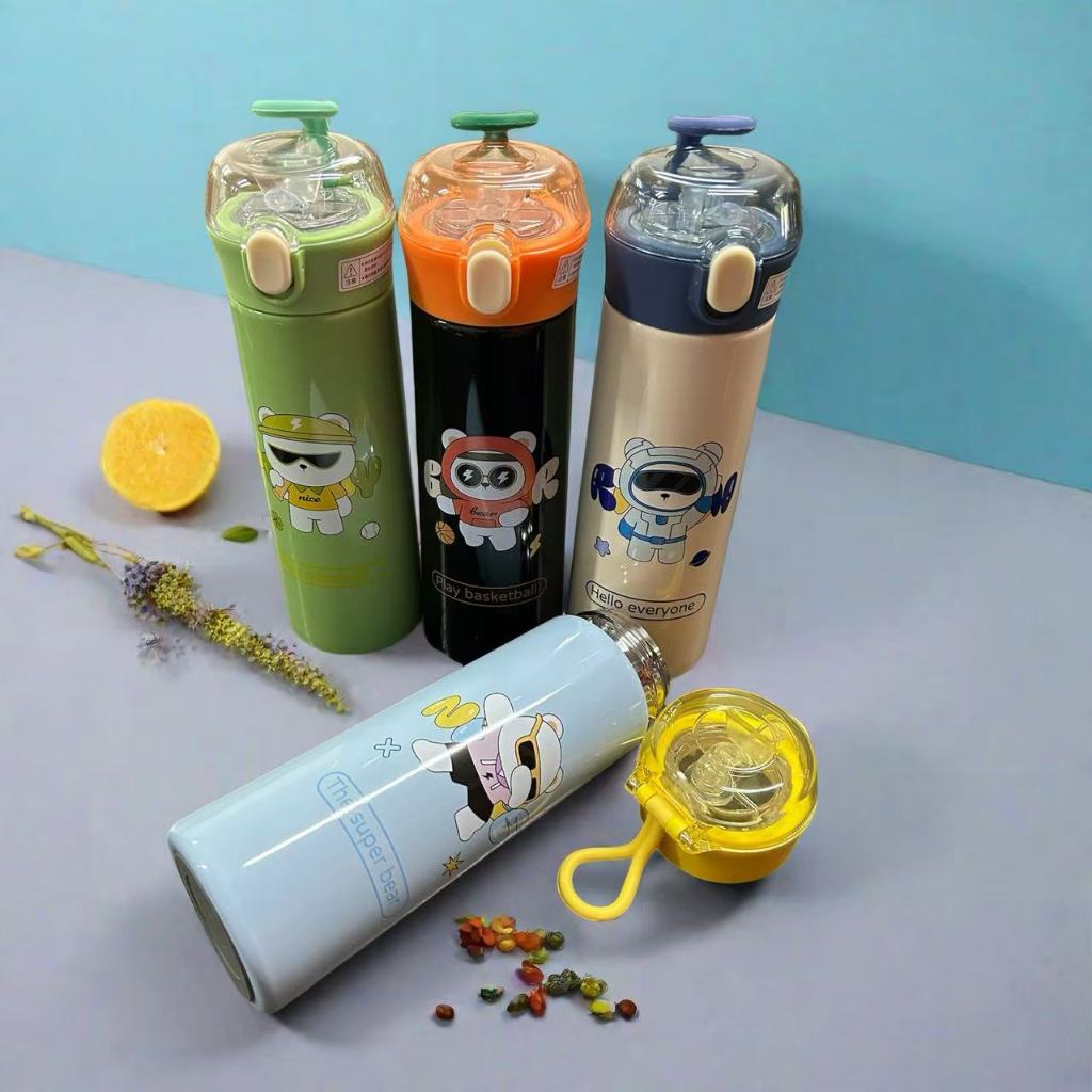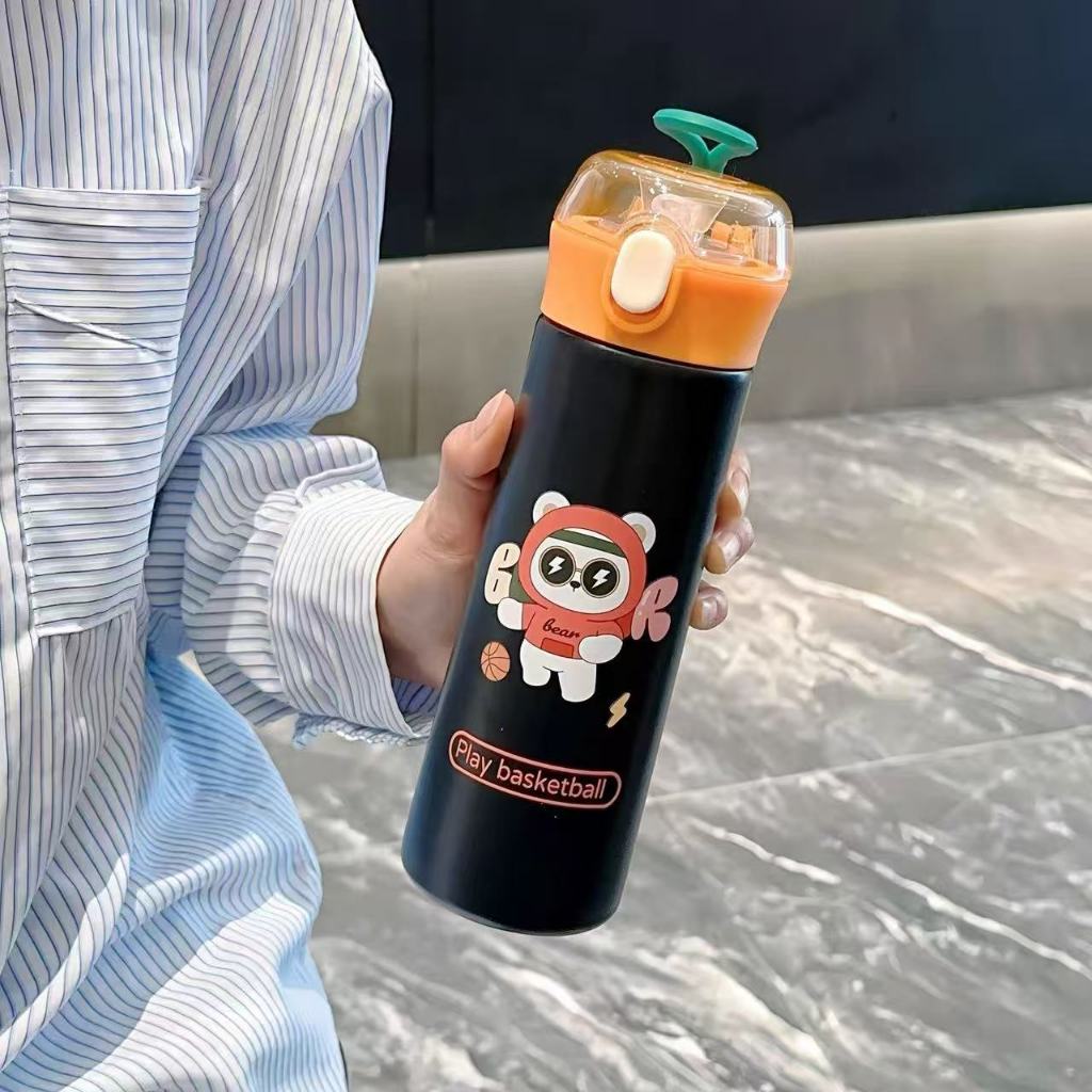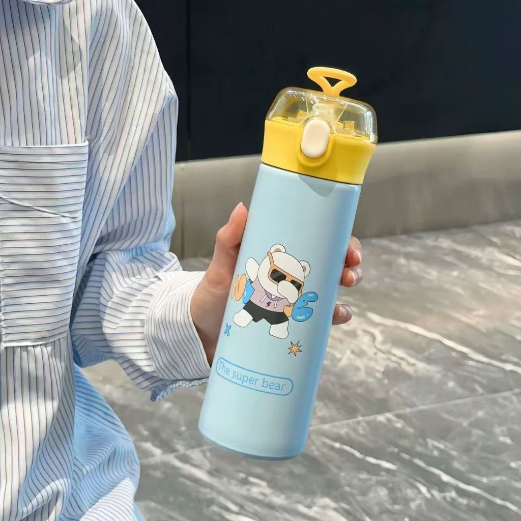 Garrafa Térmica Infantil escolar em Inox e trava 500ml urso com alça 1366
