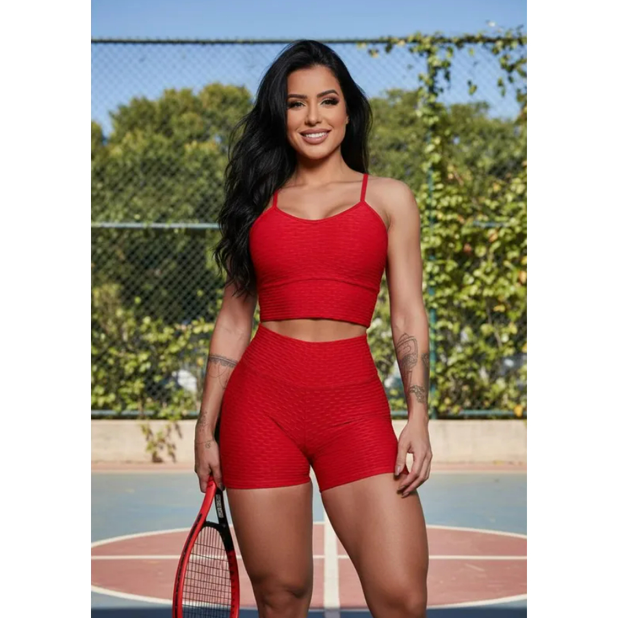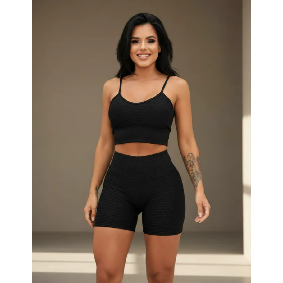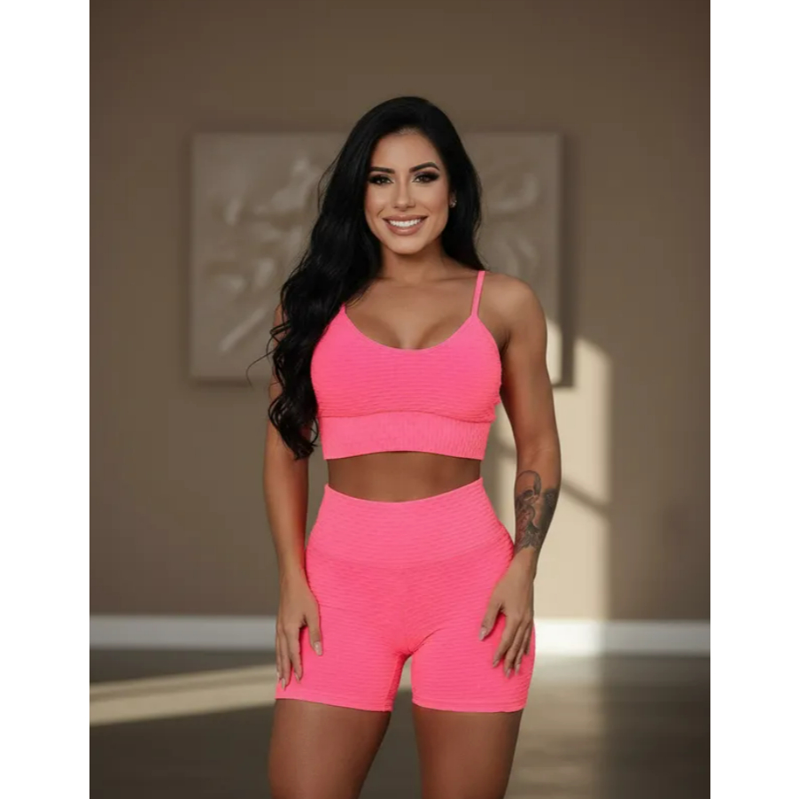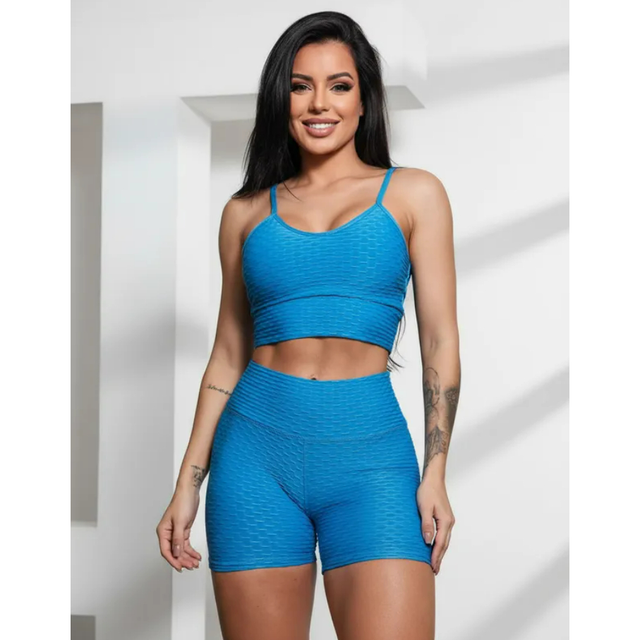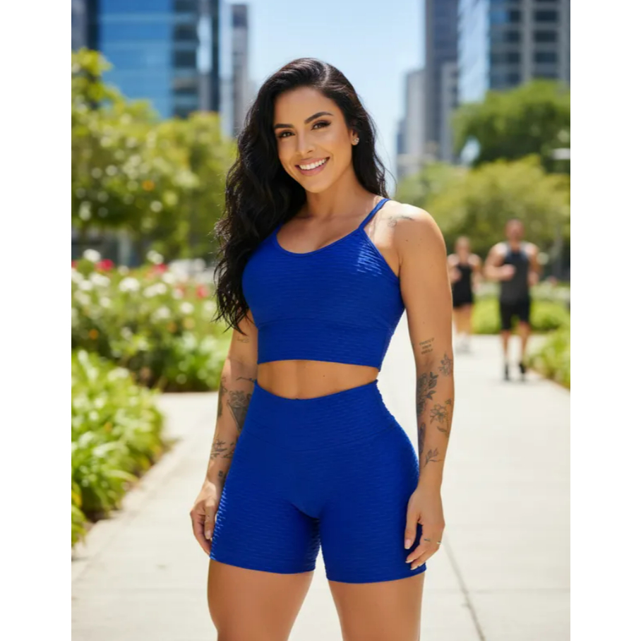 Kit 3 Conjunto Fitness Tecido Bolha Academia Top C/bojo Removível E Short