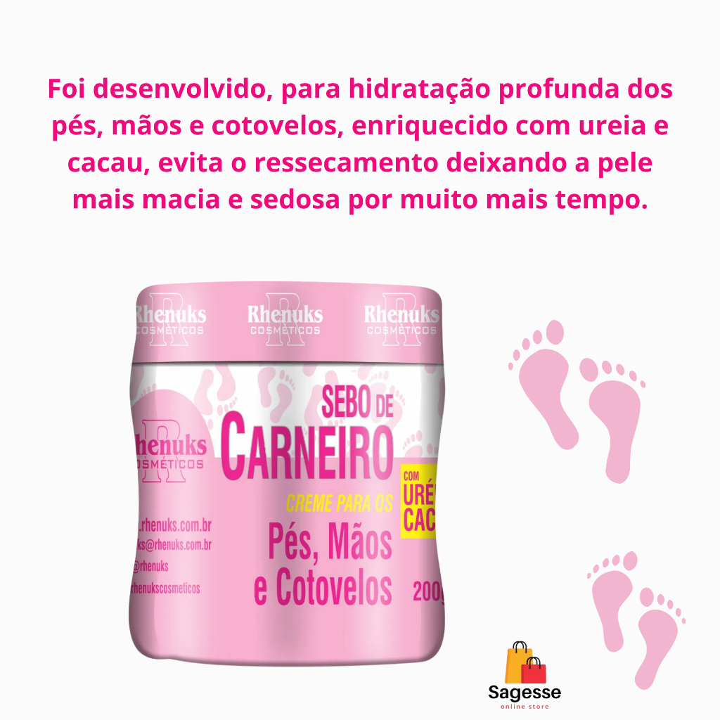 Kit com Sebo de Carneiro + Creme para Massagem Pimenta Negra + Firmador Bum Bum - Rhenuks