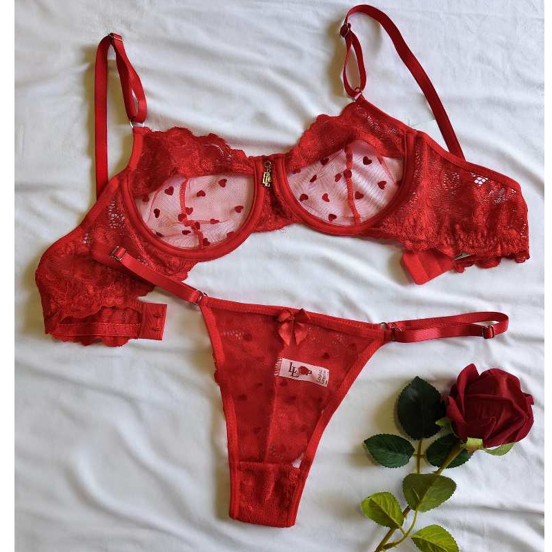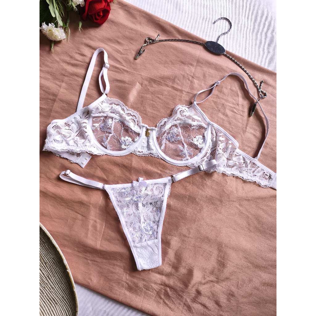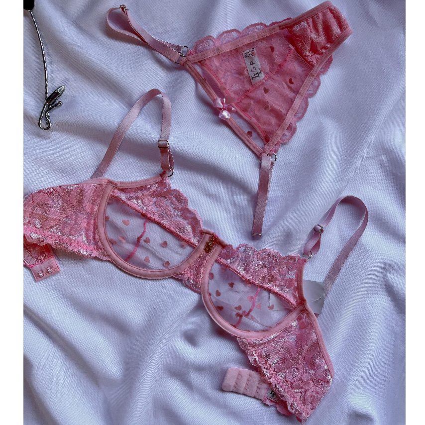 Conjunto Afrodite - Tule transparente com detalhes floral, Tule e Renda