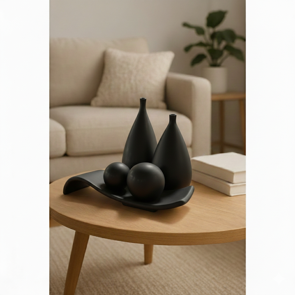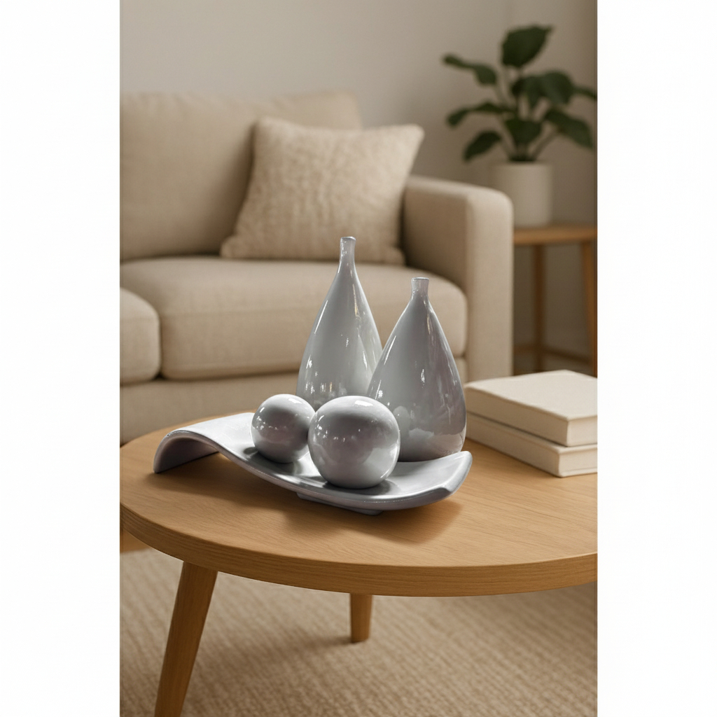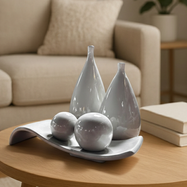Kit Dupla Vaso Pino Mais Rampa com Esferas Decoração Casa Sala Centro de Mesa