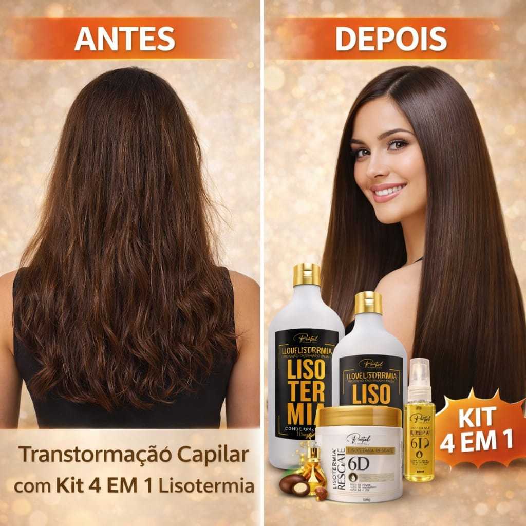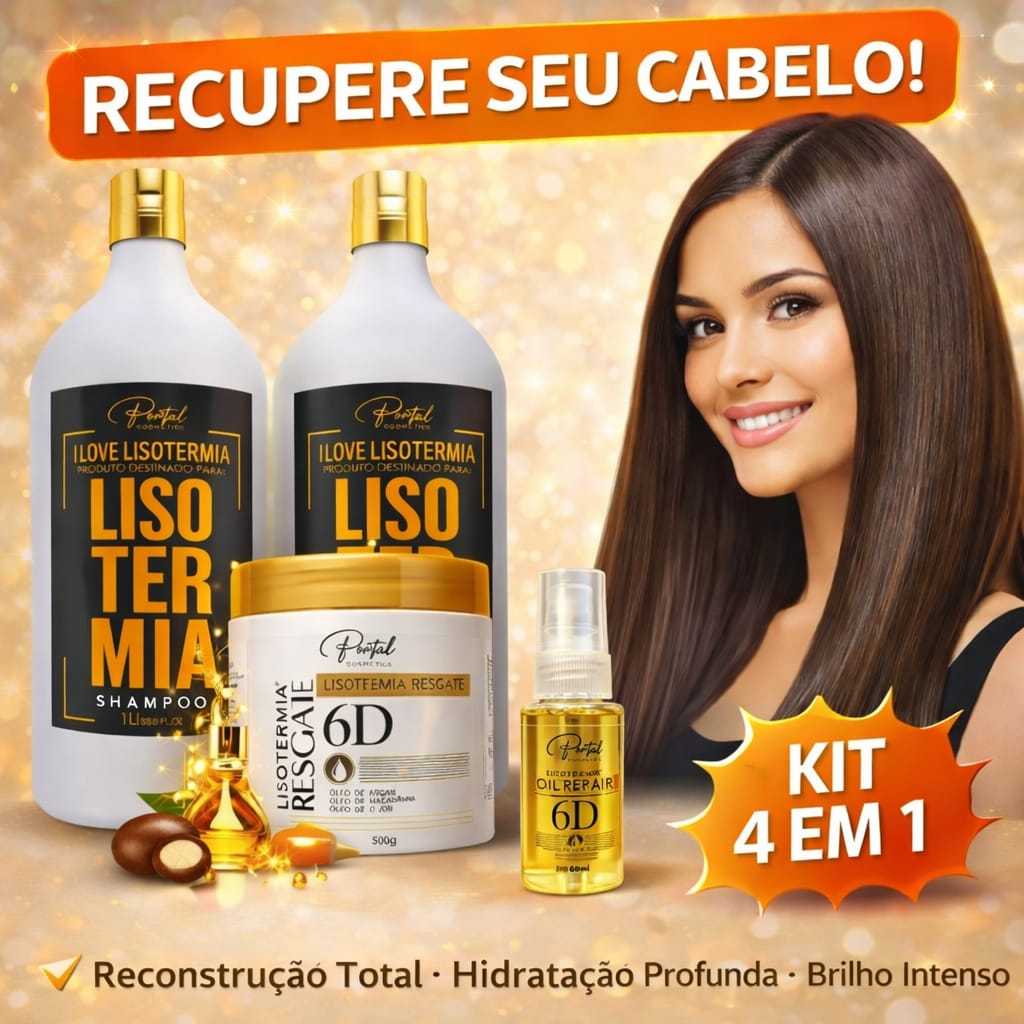 Kit Lisotermia 4 em 1 Portal Cosmetics Shampoo 1L + Condicionador 1L + Máscara Resgate 6D + Óleo Reparador 6D Hidratação