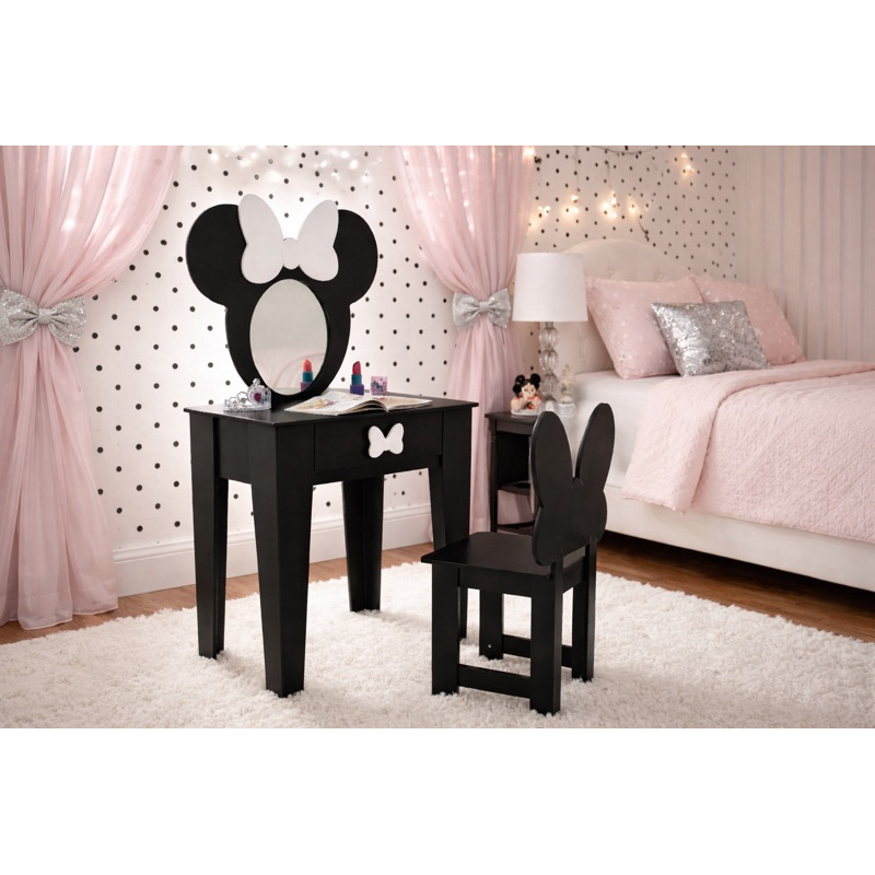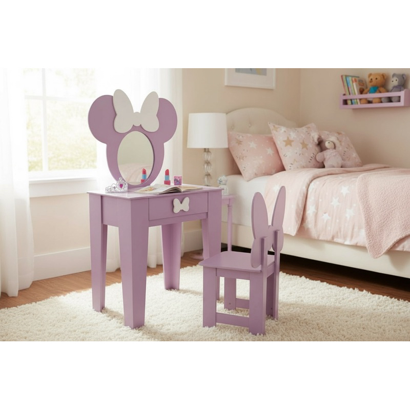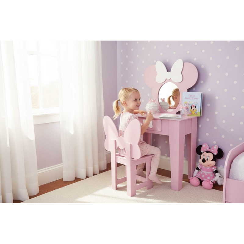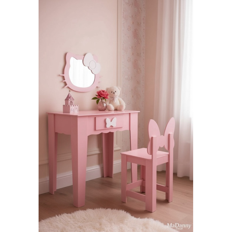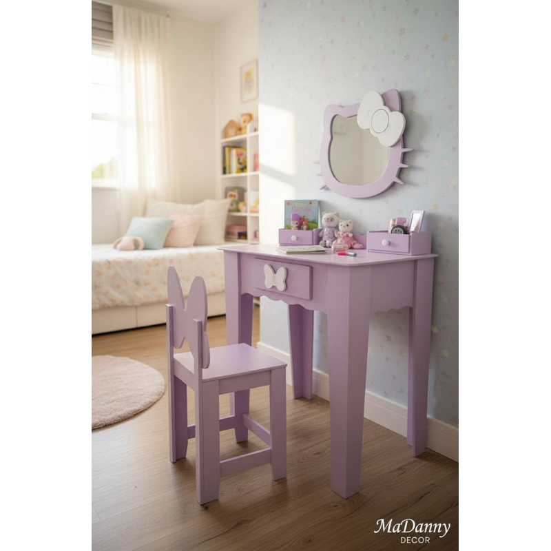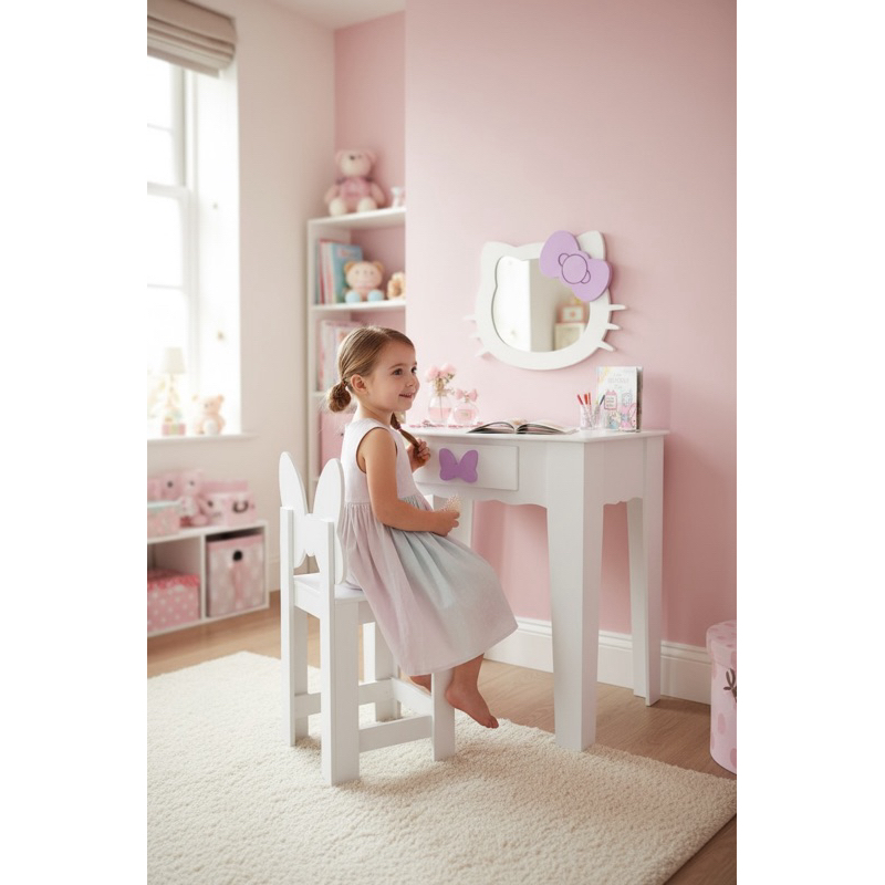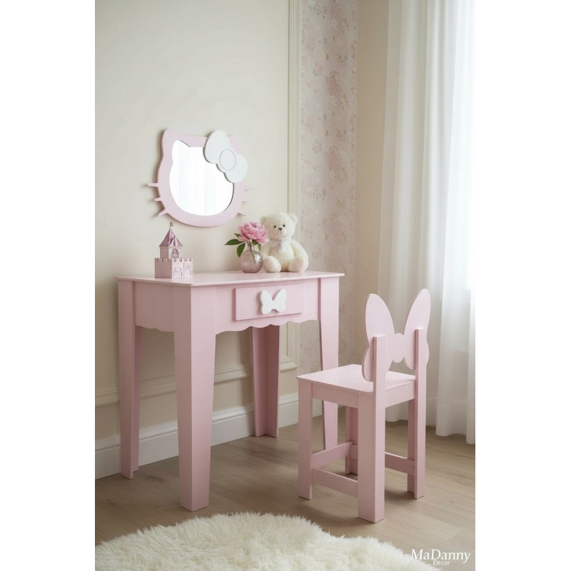 Penteadeira infantil escrivaninha com banqueta e moldura com espelho em MDF