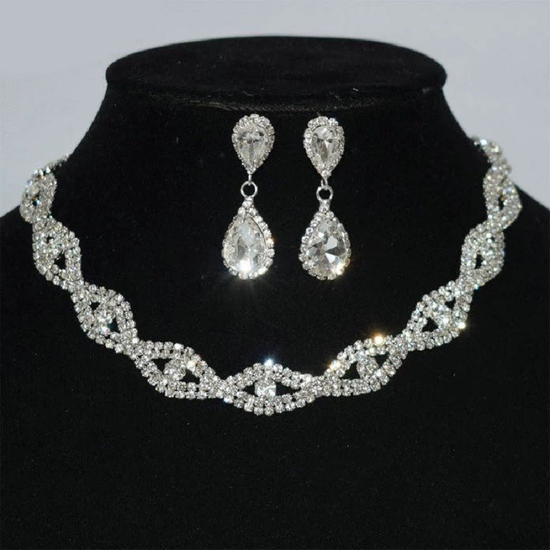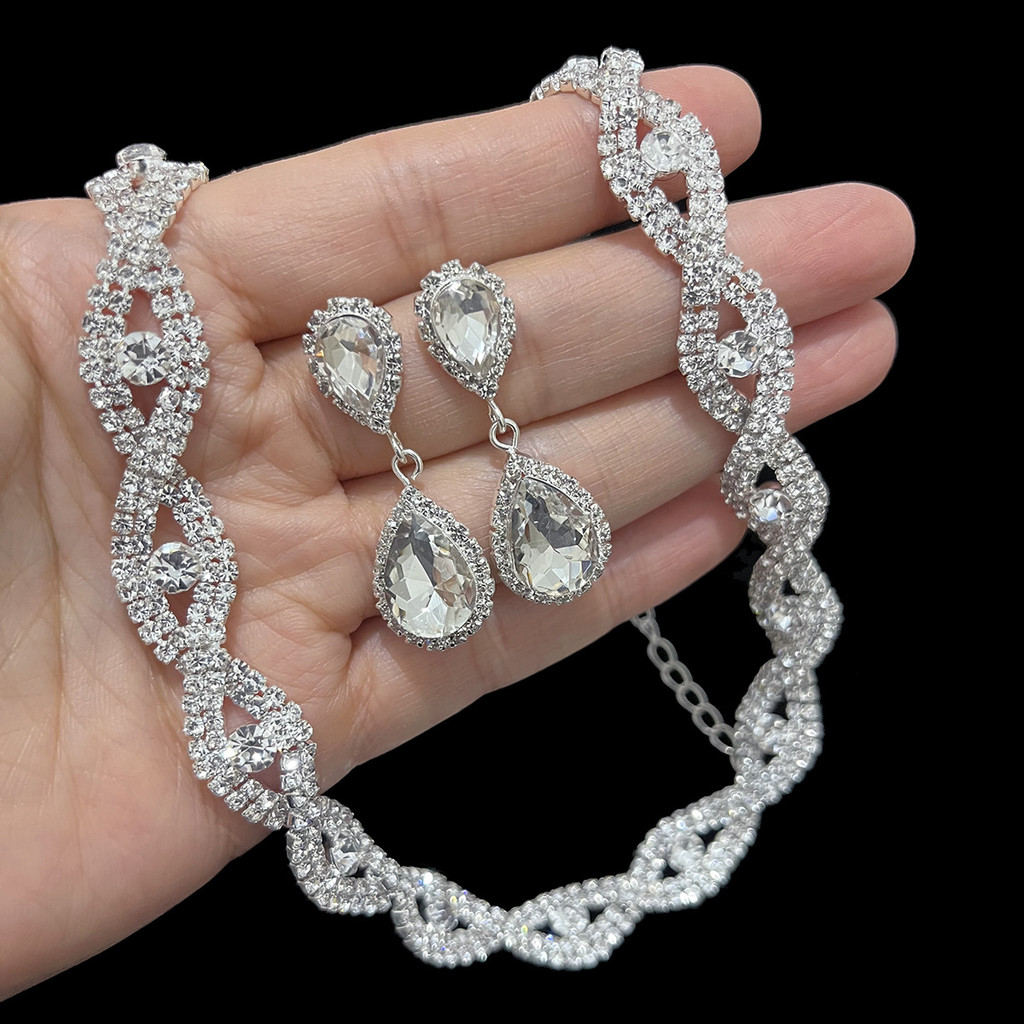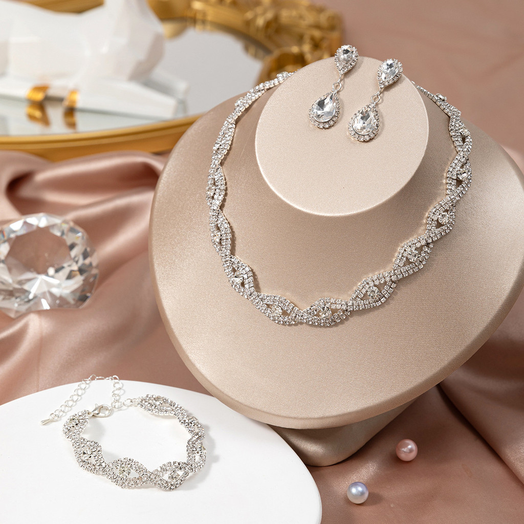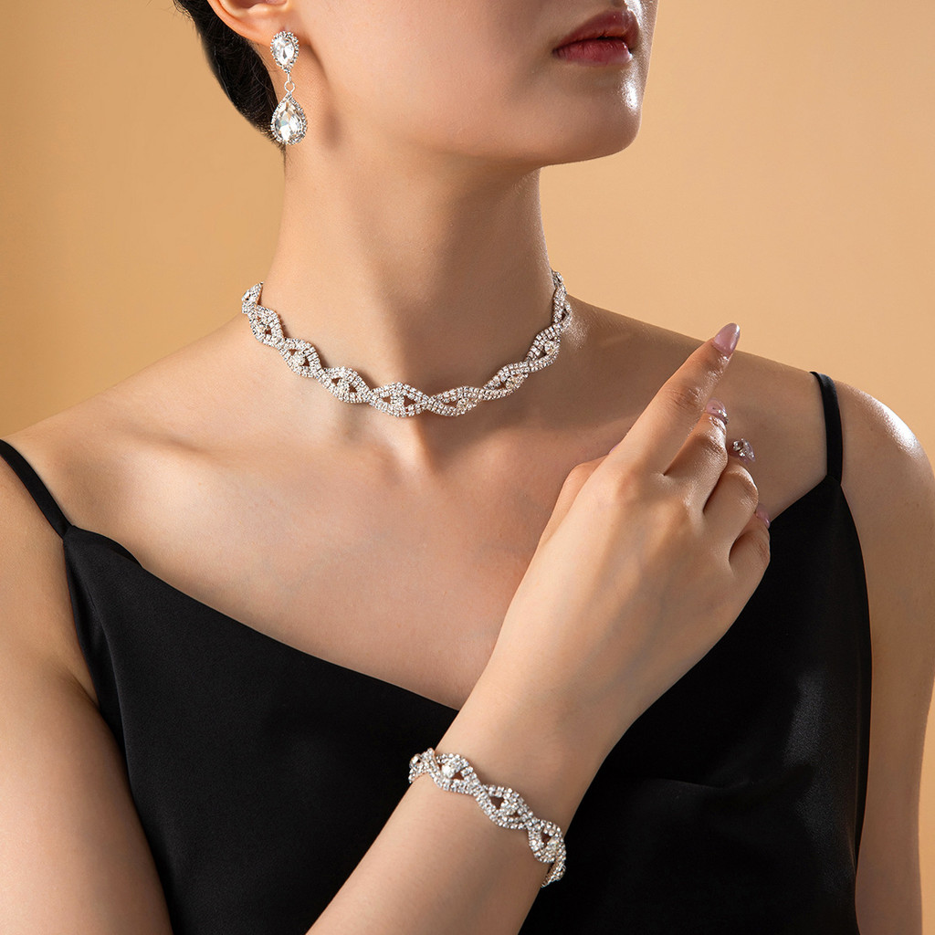 Conjunto de Colar e Pulseira e Brincos de Zircônio em Trança: Acessórios para Noiva, Joias para Festa de Casa