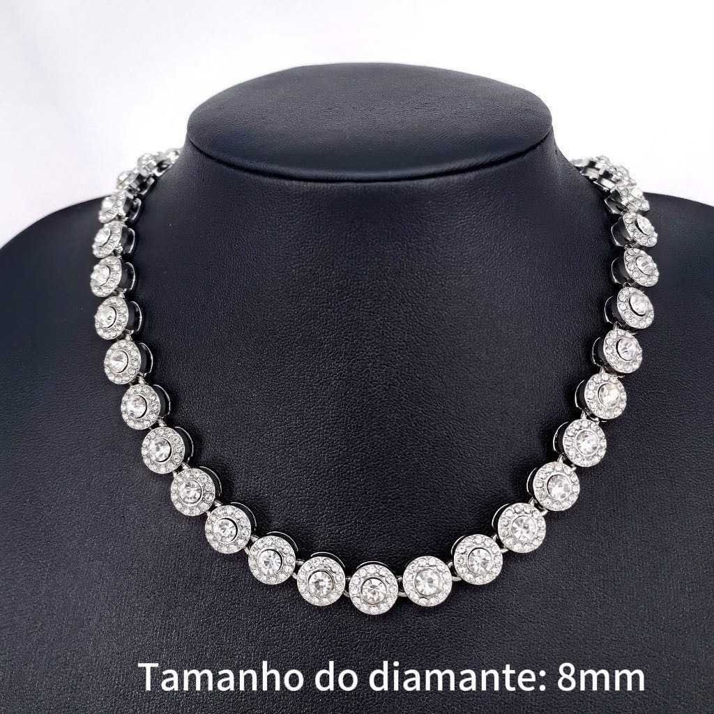 Colar de diamantes redondos cubanos de luxo superbrilhantes de alta qualidade com 8 mm, presente para festa