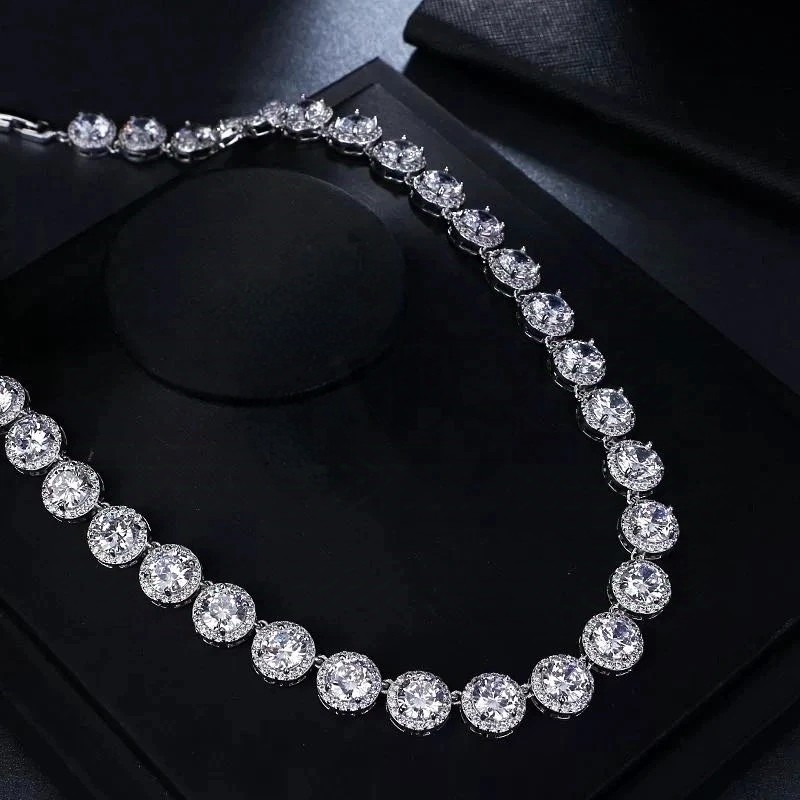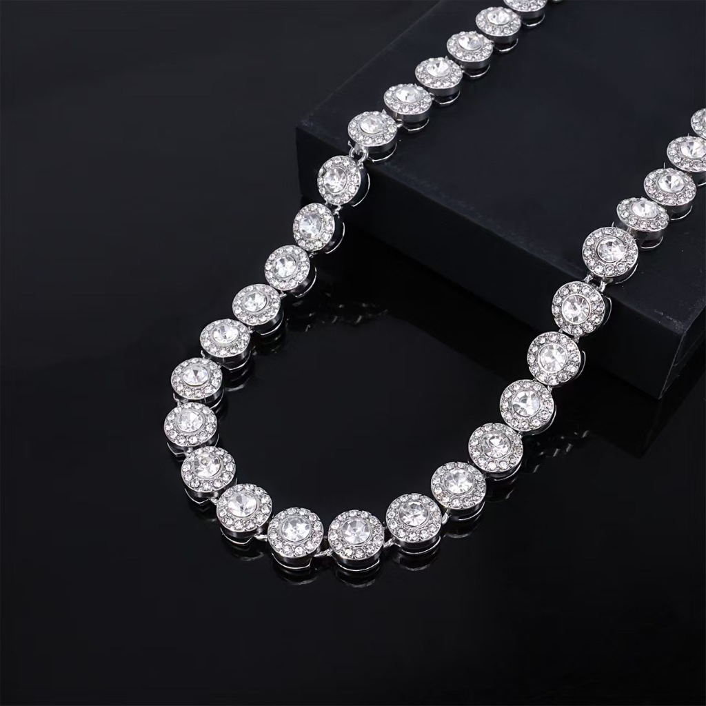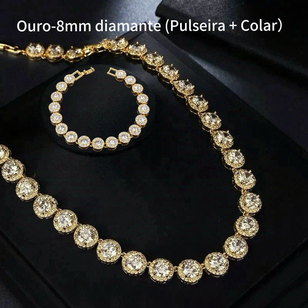 Conjunto de joias super flash, elegante e luxuoso, cubano de alta qualidade, redondo, com colar e pulseira de diamantes