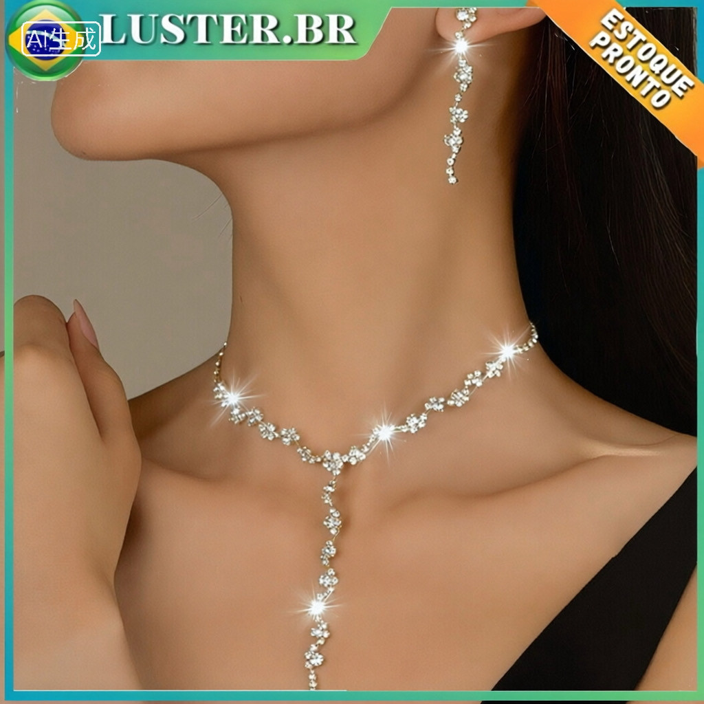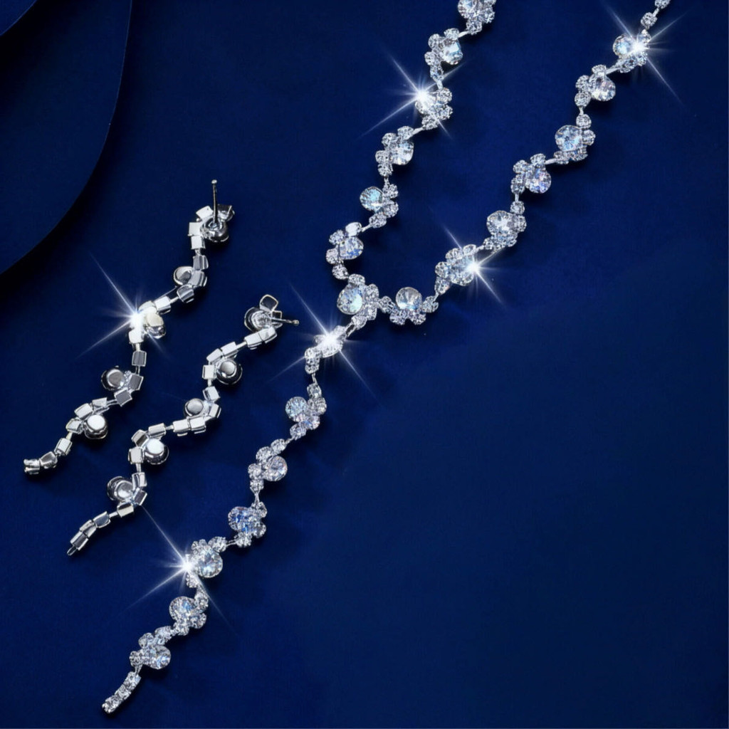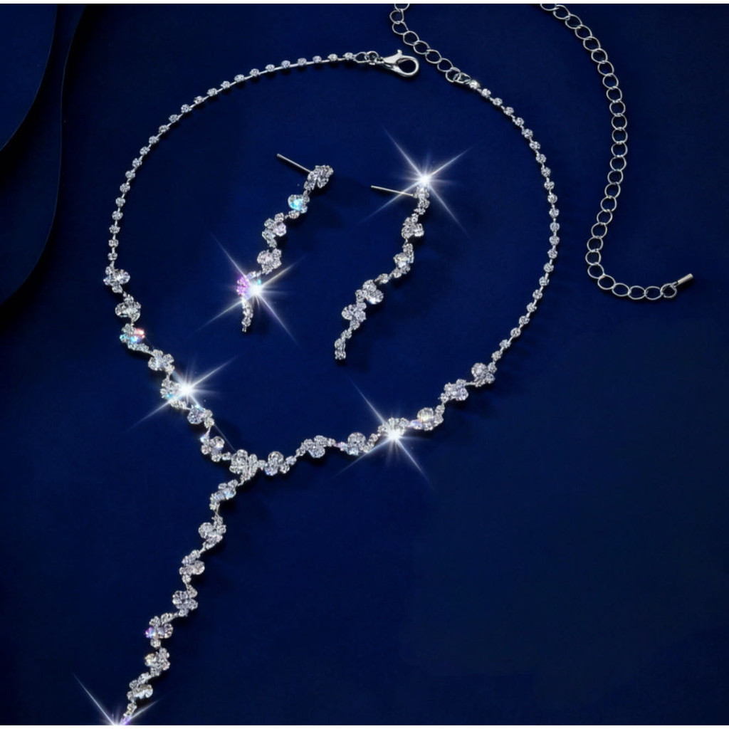 Conjunto de 2 joias para noivas, incluindo: colar com pingente de cristal ondulado e brincos. Adequado para festas, etc.