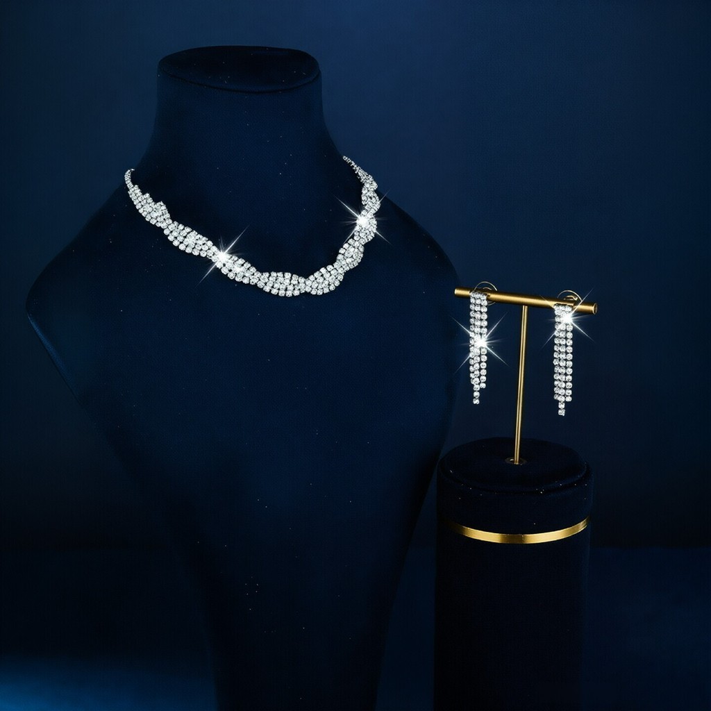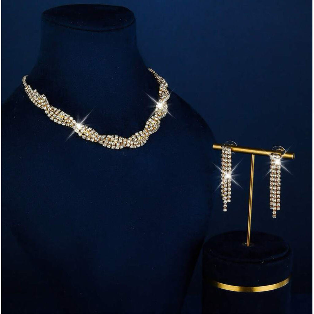 Conjunto de Joias Femininas Luxo Strass Colar Brincos Pulseira Elegante Festa Casamento
