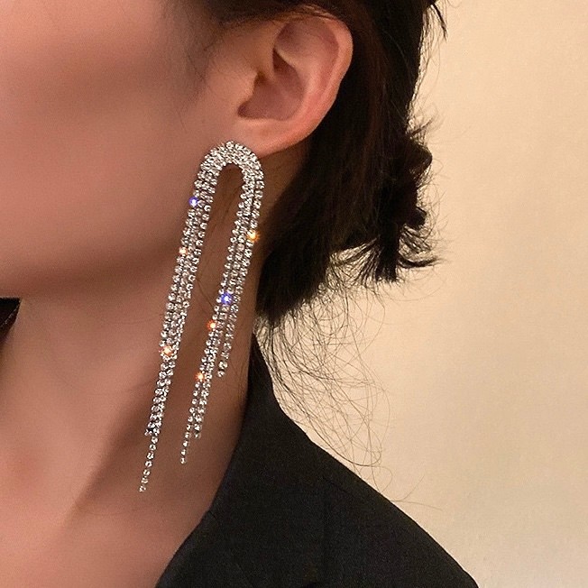 Brincos exagerados de borla de diamante completo para mulheres brincos longos temperamento brincos de alta qualidade