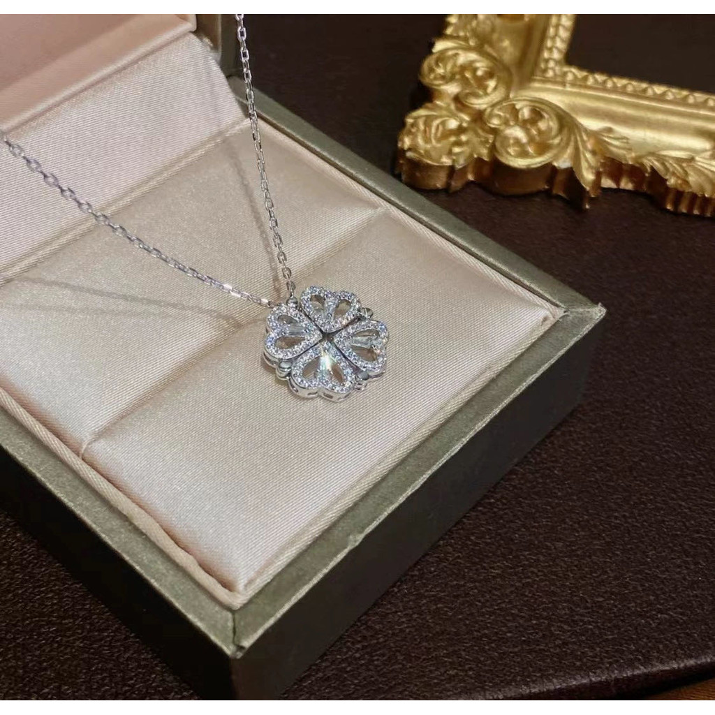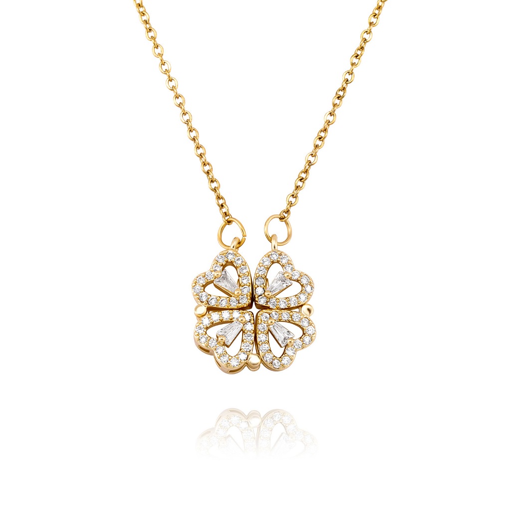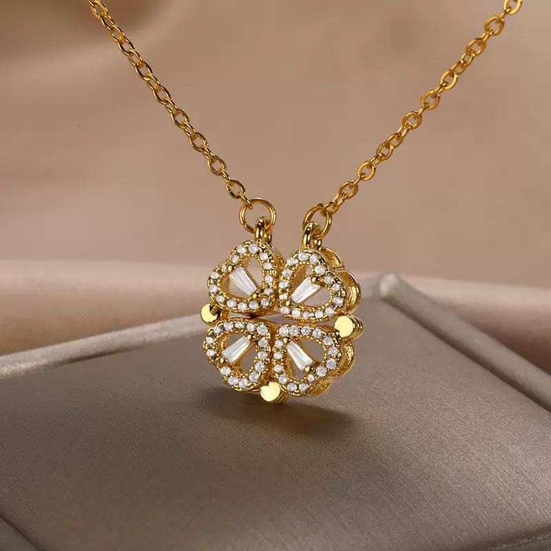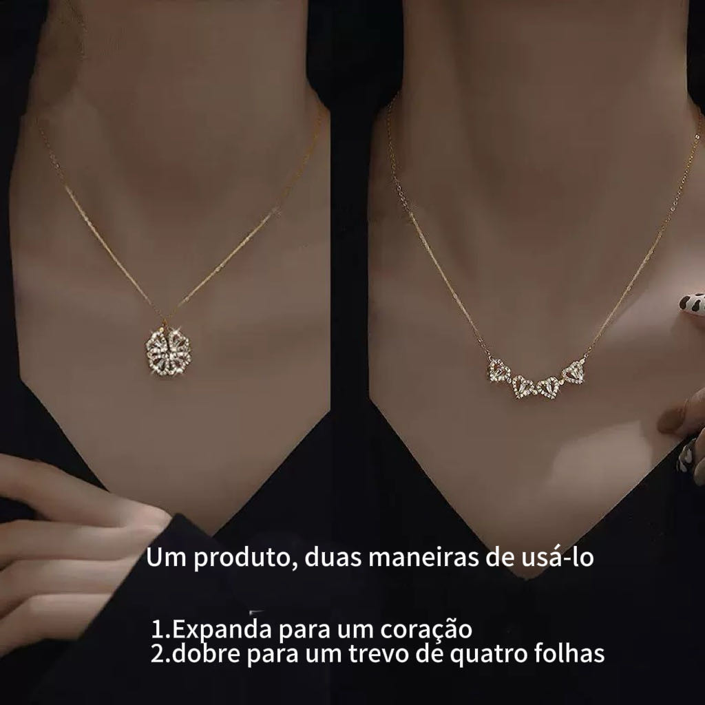 Colar de trevo de aço inoxidável, formato de trevo e formato de coração dois em um, hipoalergênico e antidesbotamento