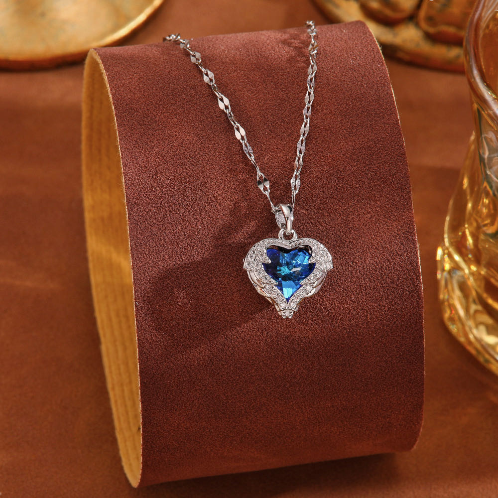 Colar Coração Azul "Coração do Mar" - Pedra Azul com Zircônias, Presente Romântico