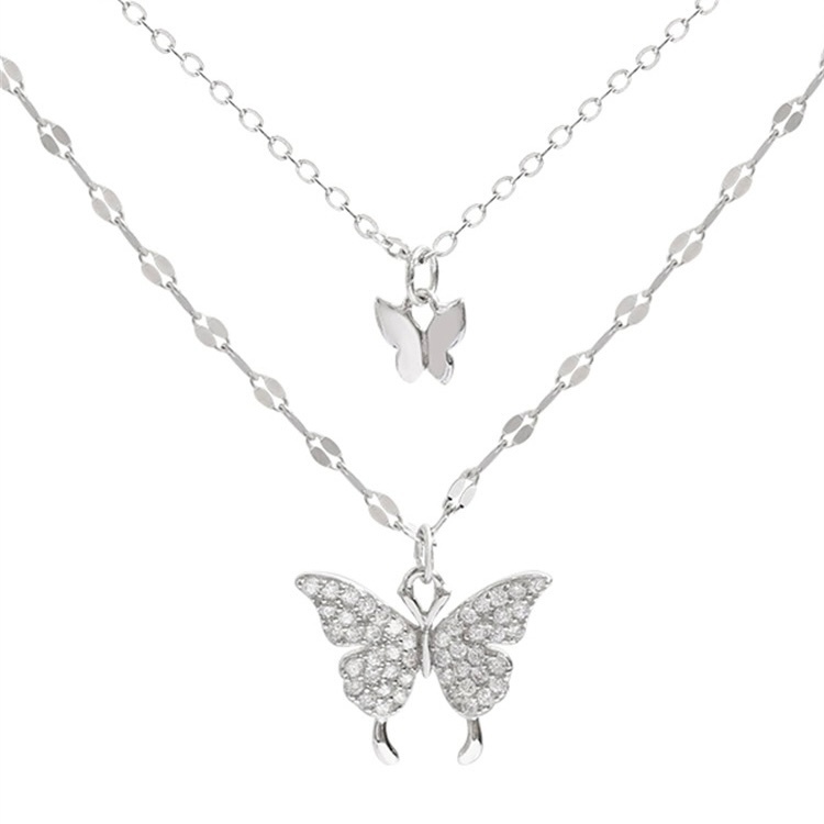 925 Prata Banhado A Dupla Camada Borboleta Colar Moda Personalidade Punk Link Corrente Colar Para Mulher Colar Feminino