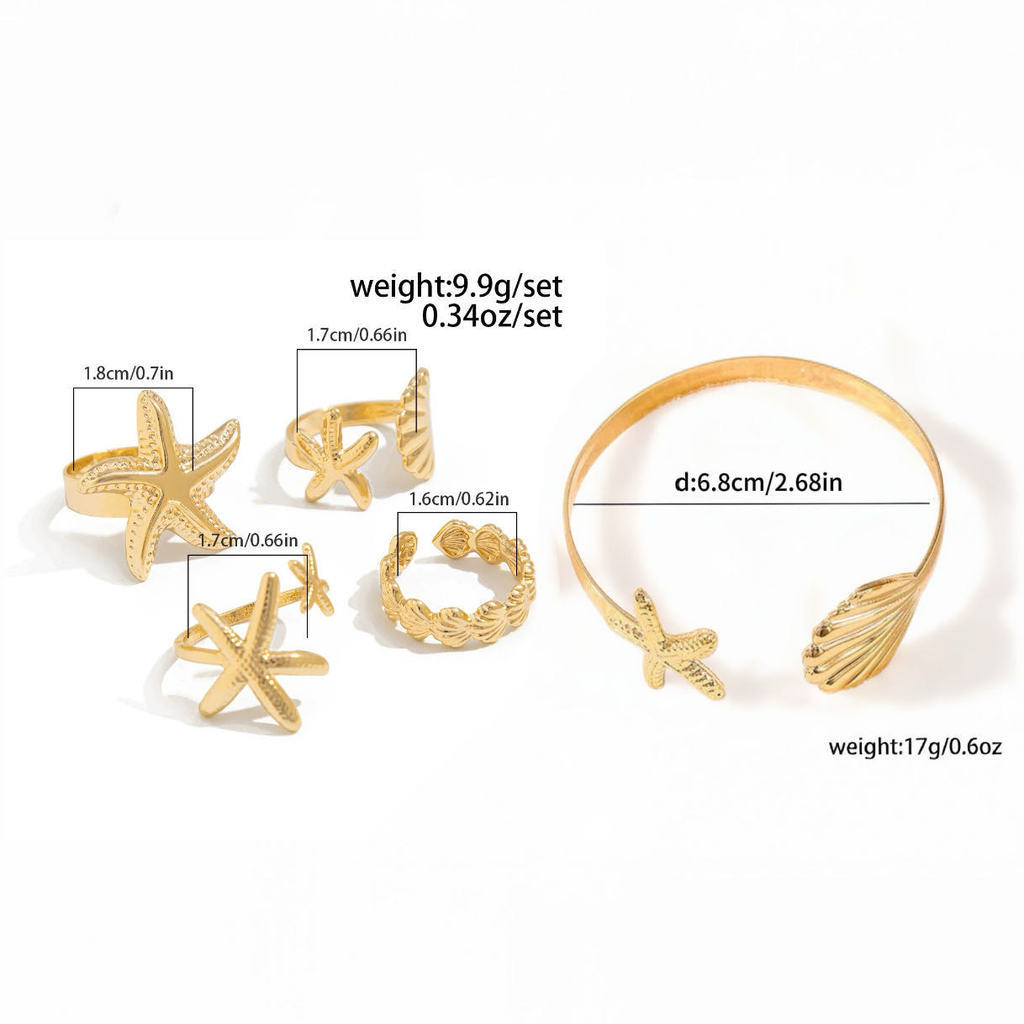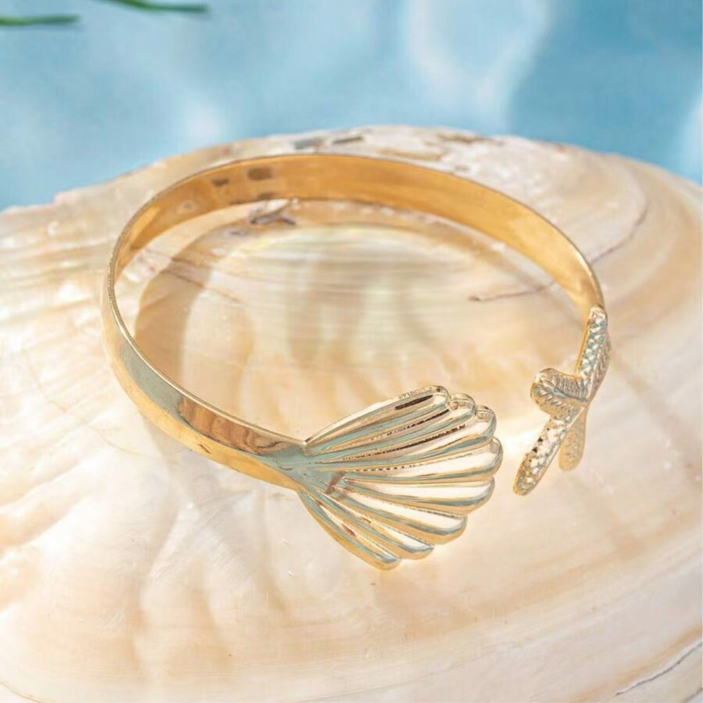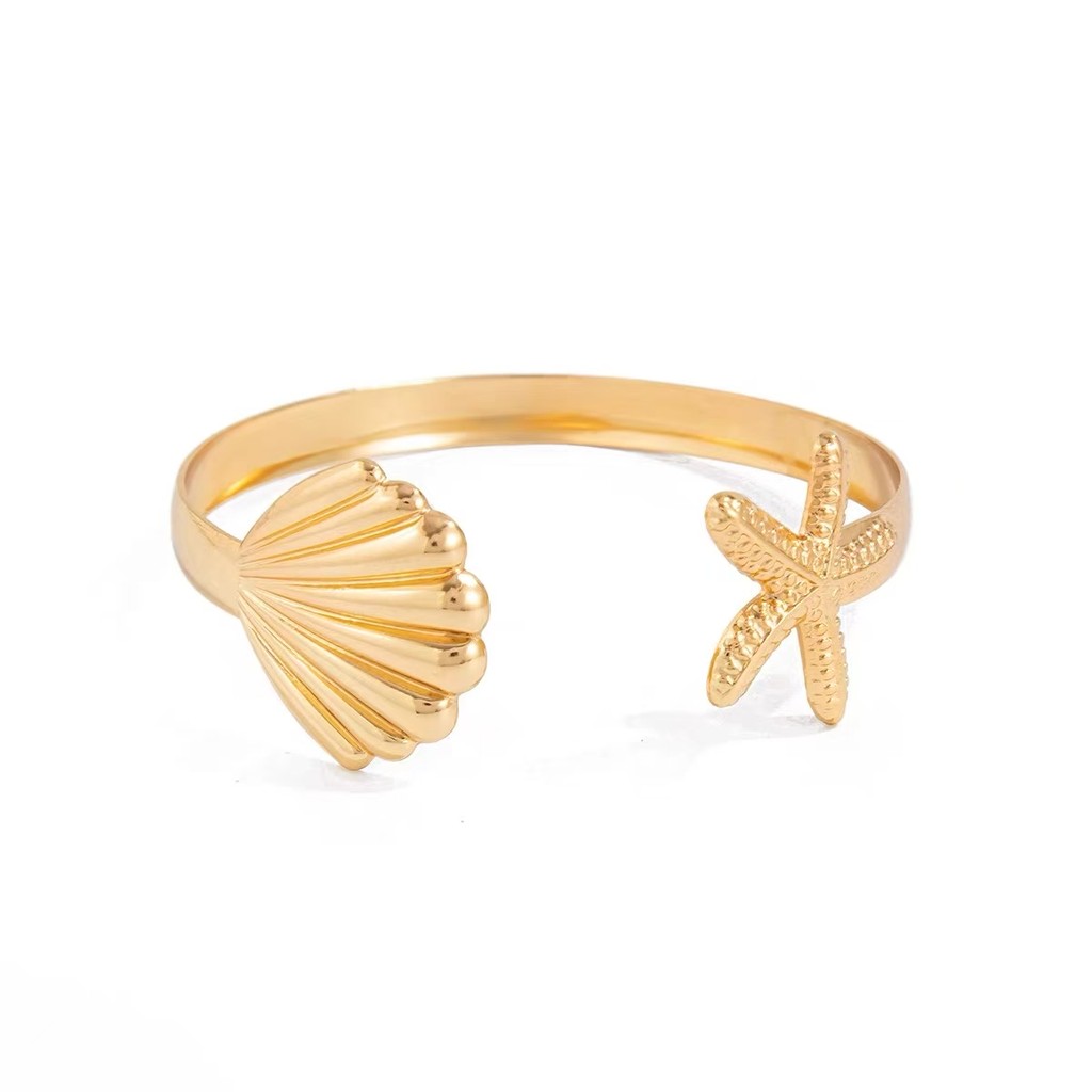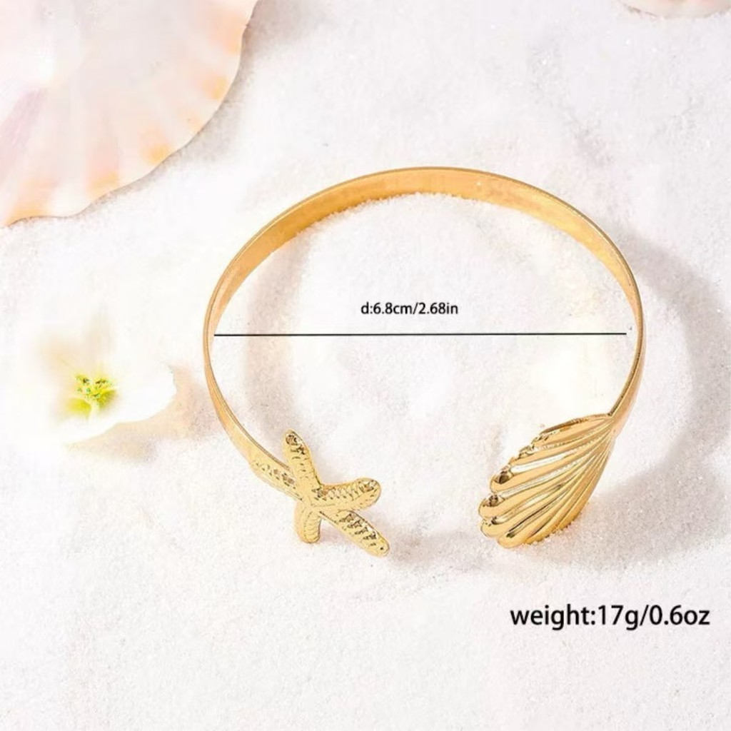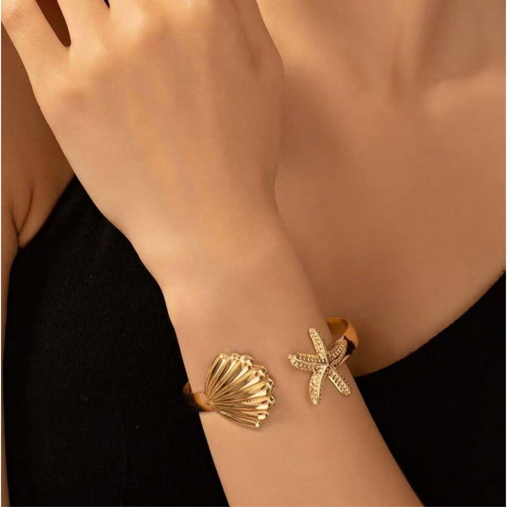 Pulseira Femininas Individual Assimétrica | Concha + Estrela do Mar | Estilo Praia e Férias