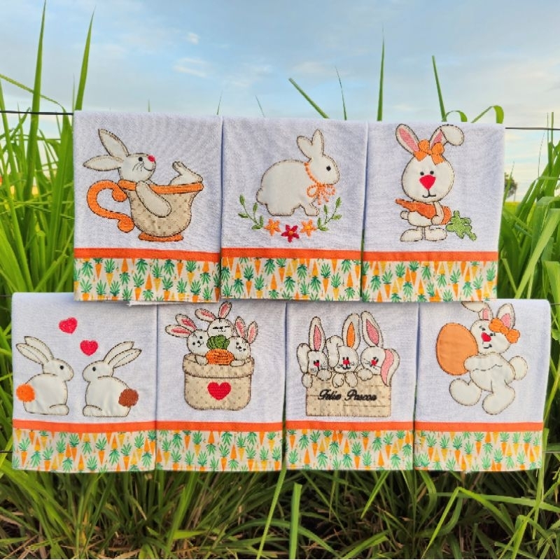 Pano de Prato Coelho com 7 peças - Guardanapo - Semaninha - 100% algodão - Barra de tricoline