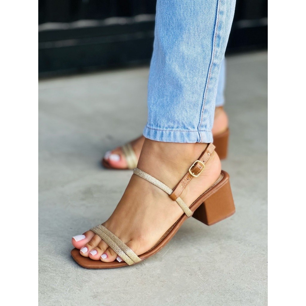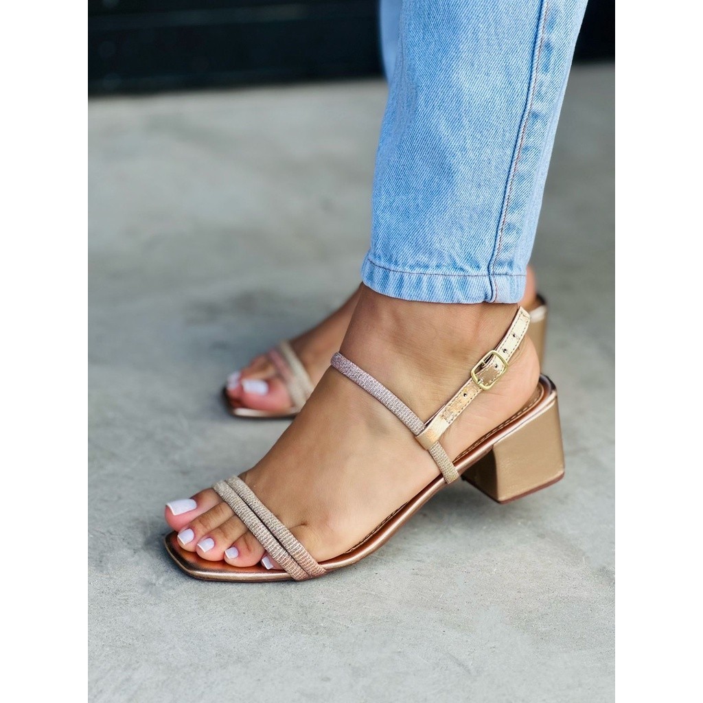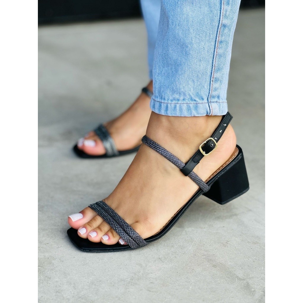 Sandalia Feminina Bloco Alto Tiras Brilhantes
