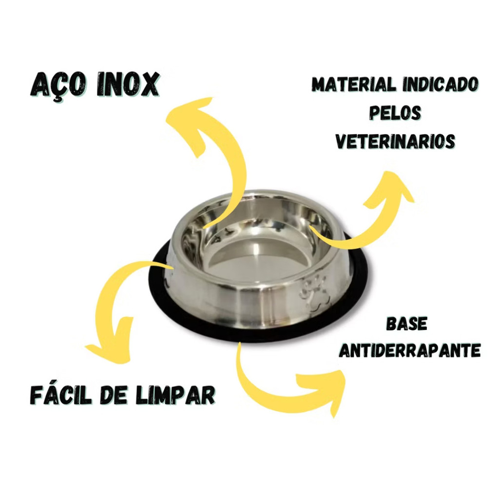 Comedouro Pote Comida Ração Água Pet Cães Gatos Vasilha Inox Antiderrapante