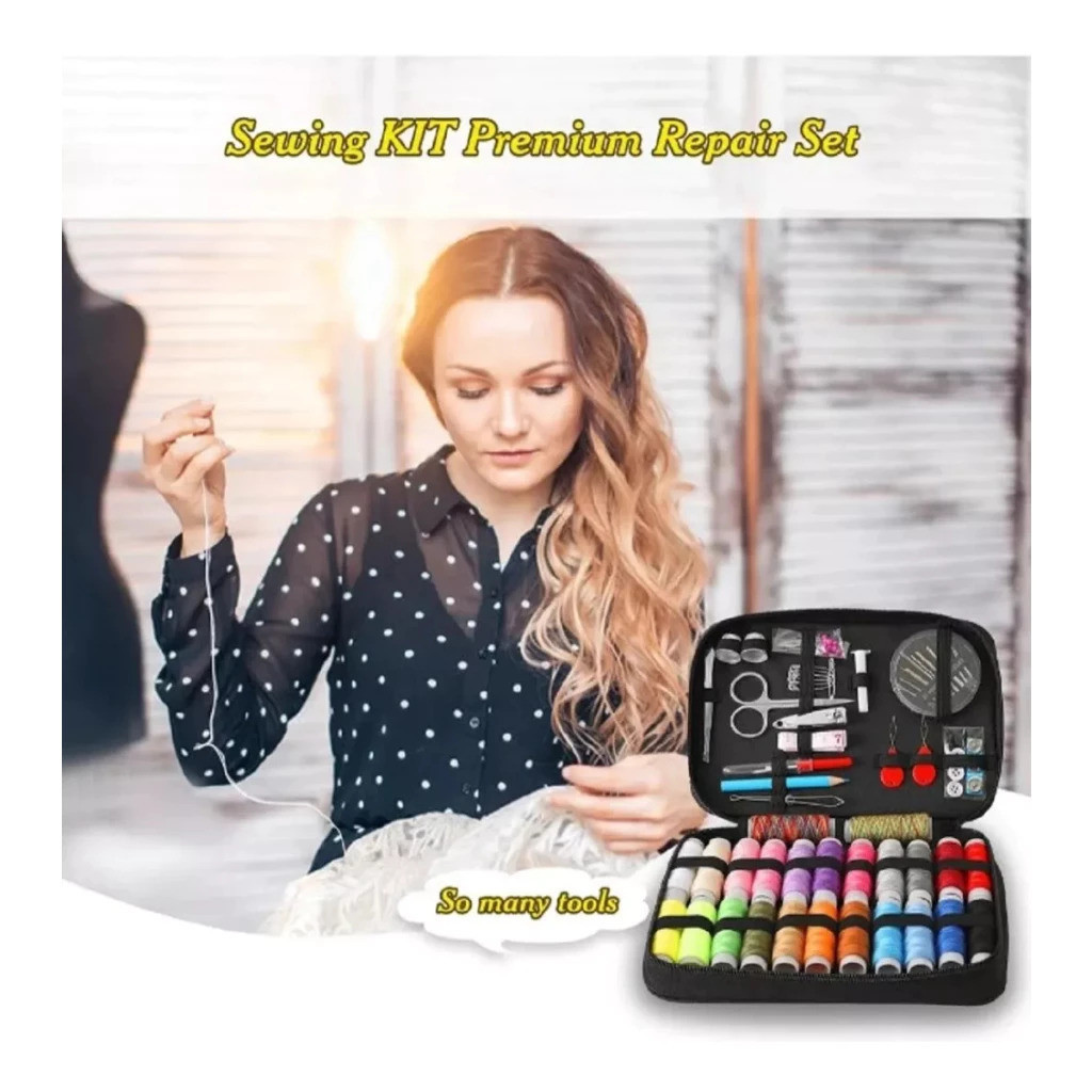 Kit De Costura E Linhas C/90 Pecas Completo Com Estojo