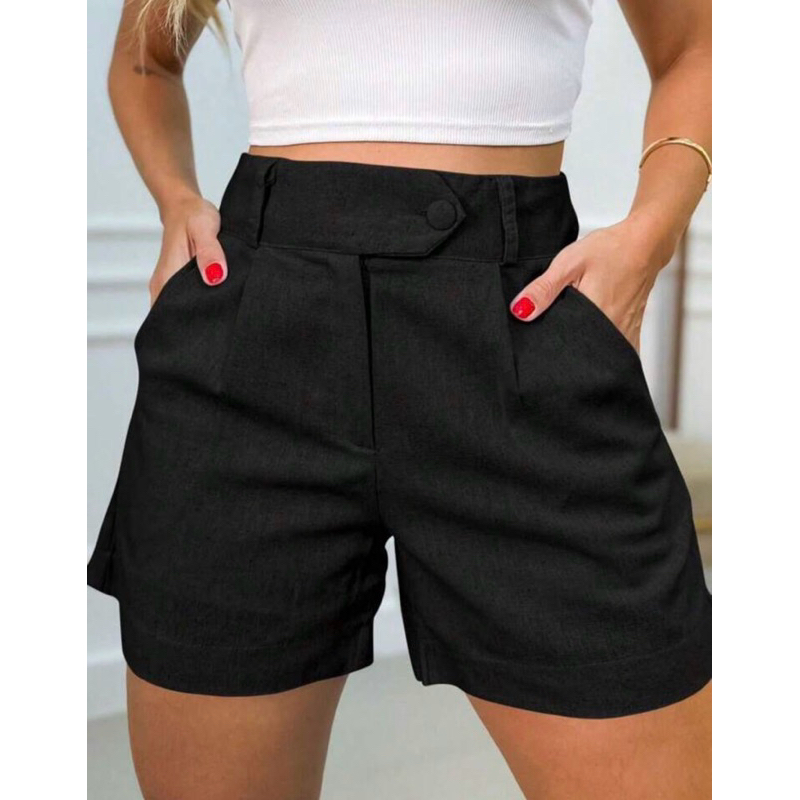 Short Feminino Linho Com Forro Casual Bermuda Shortinho