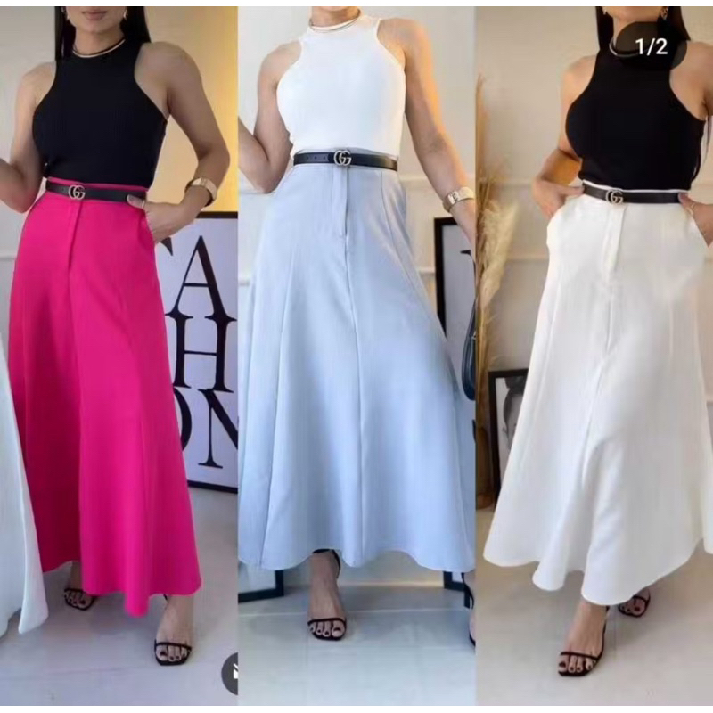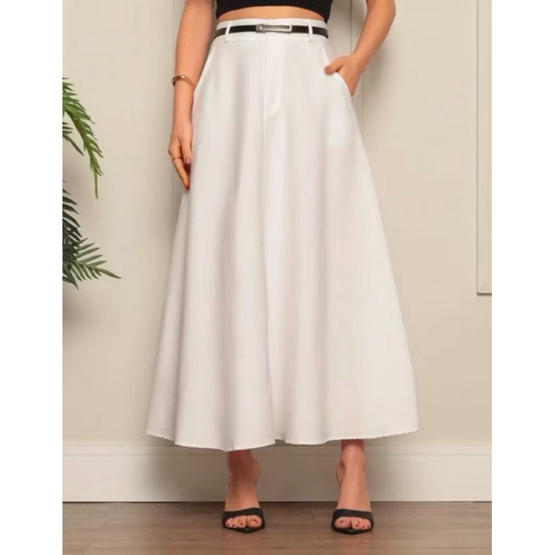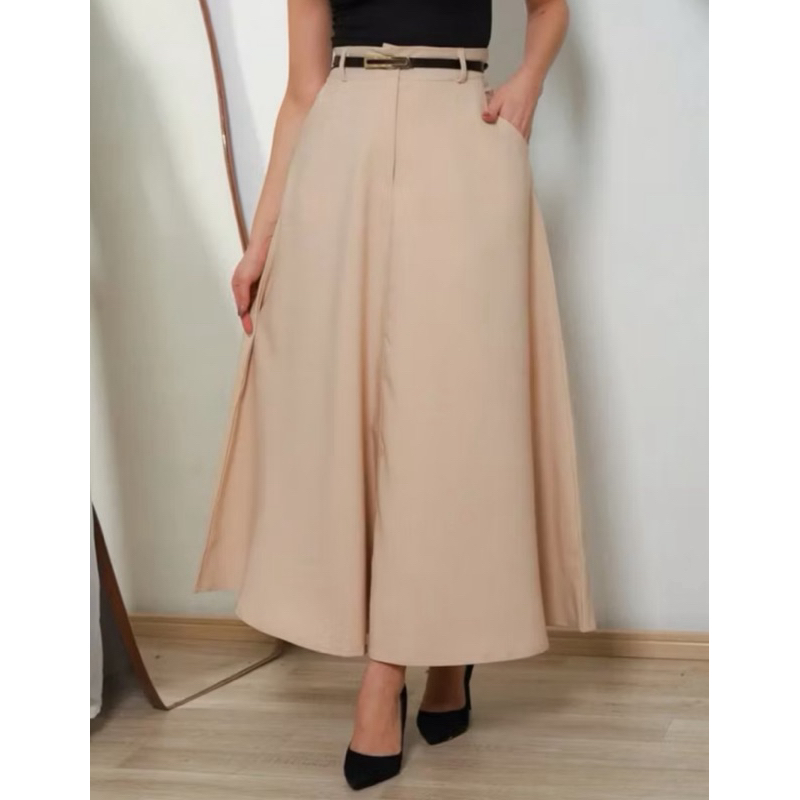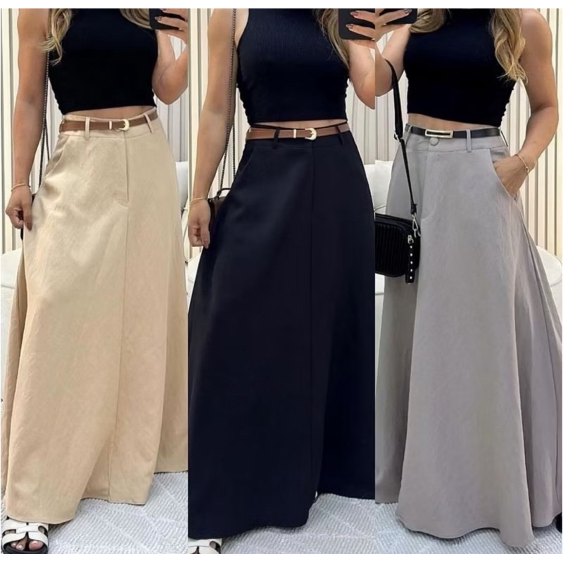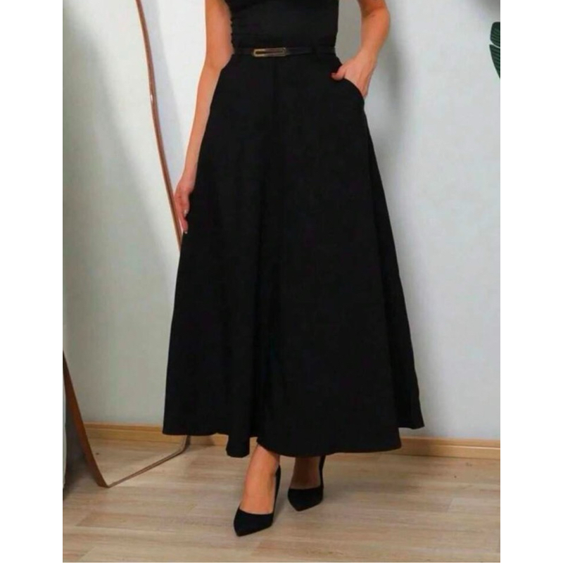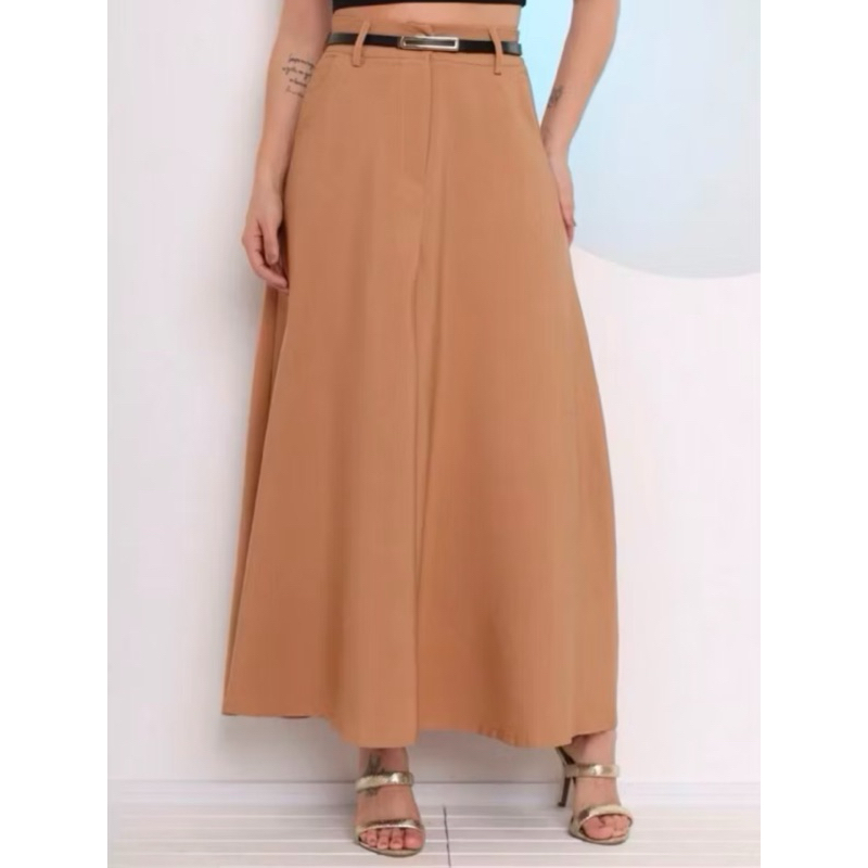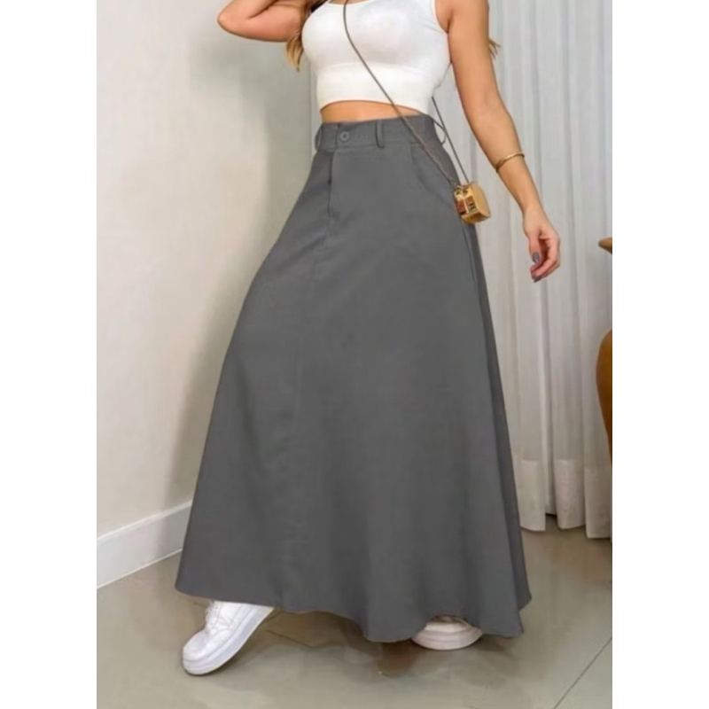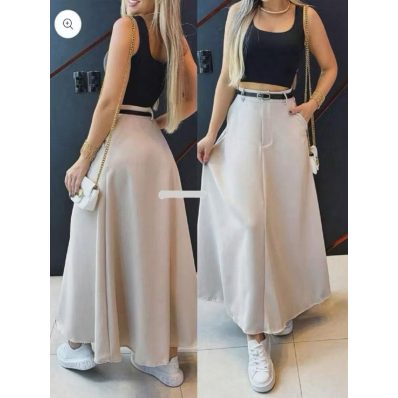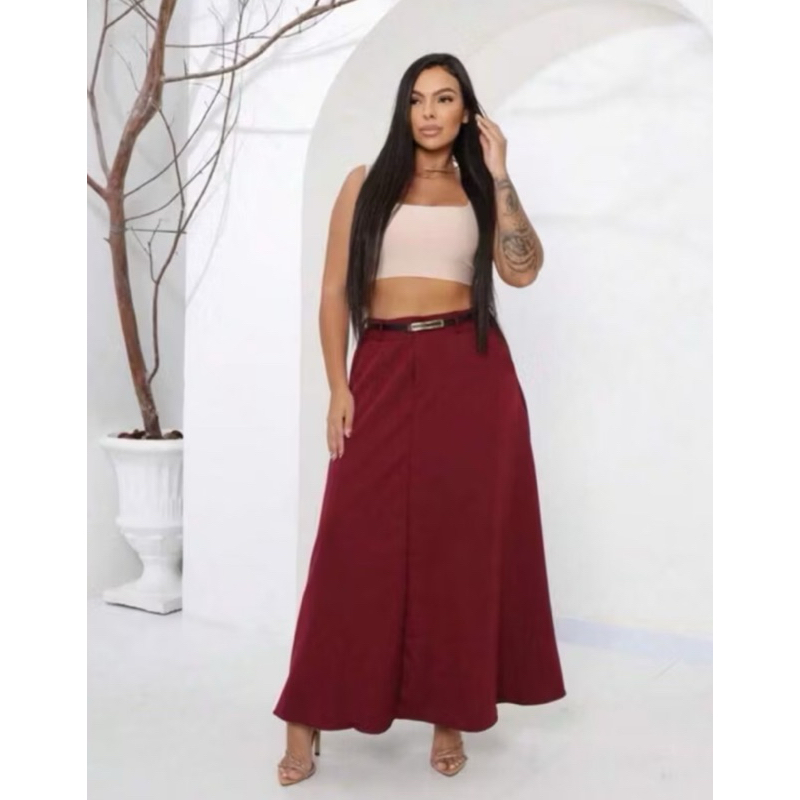 Saia Longa Rodada Feminina Alfaiataria Moda Evangélica Casual Básica Inverno Cintura Alta Elegante Tendência