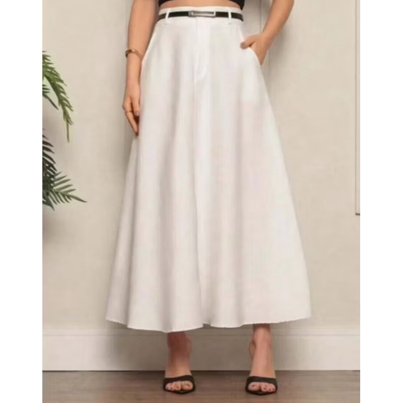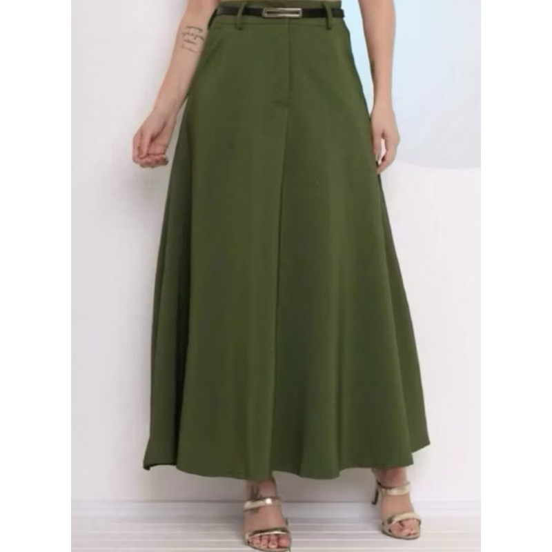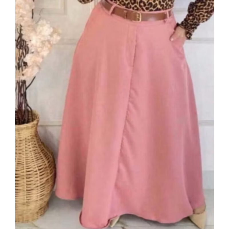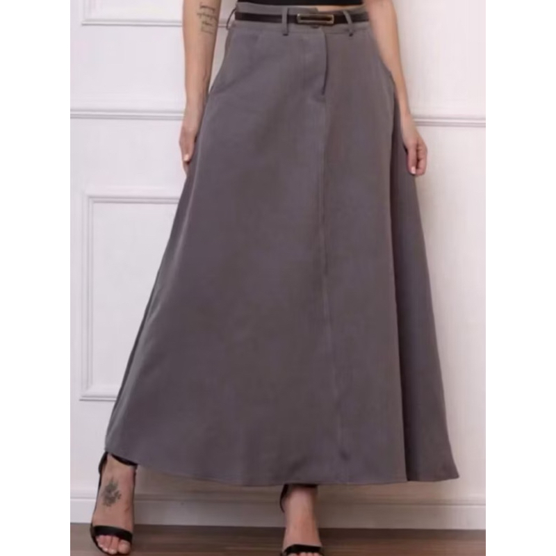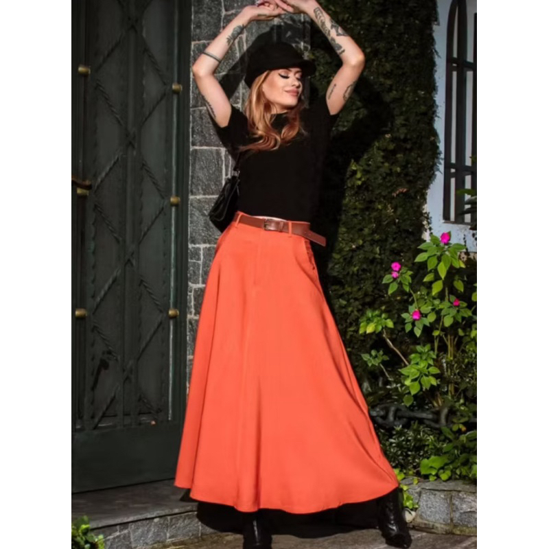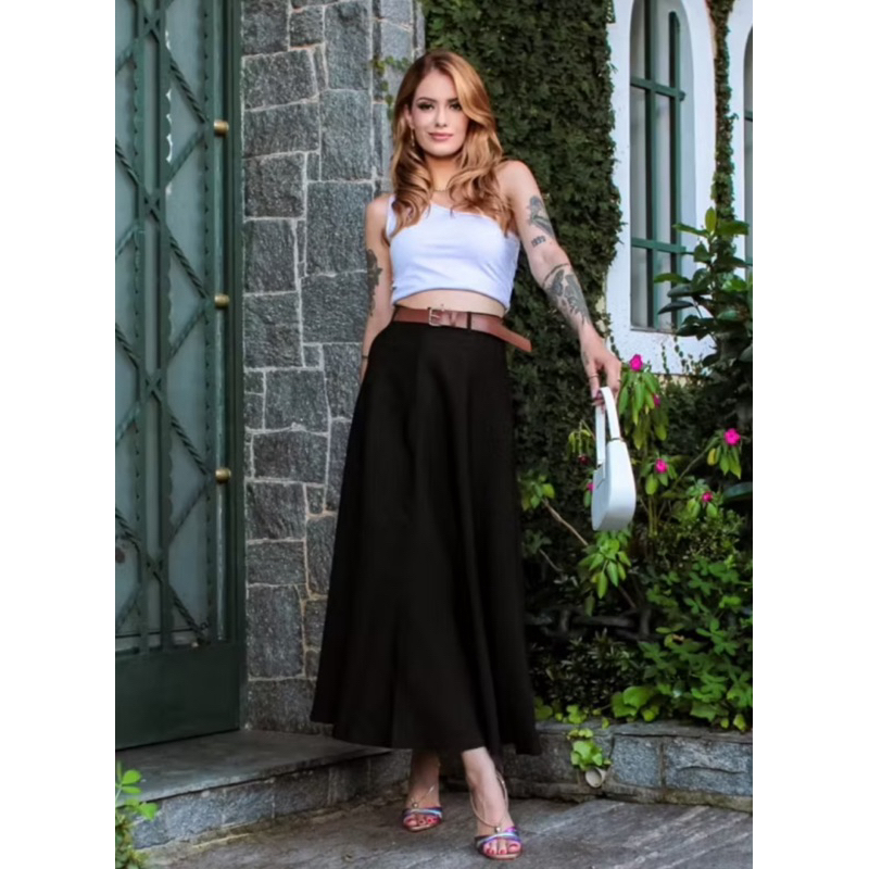 Saia Longa Rodada Feminina Alfaiataria Moda Evangélica Casual Básica Inverno Cintura Alta Elegante Tendência
